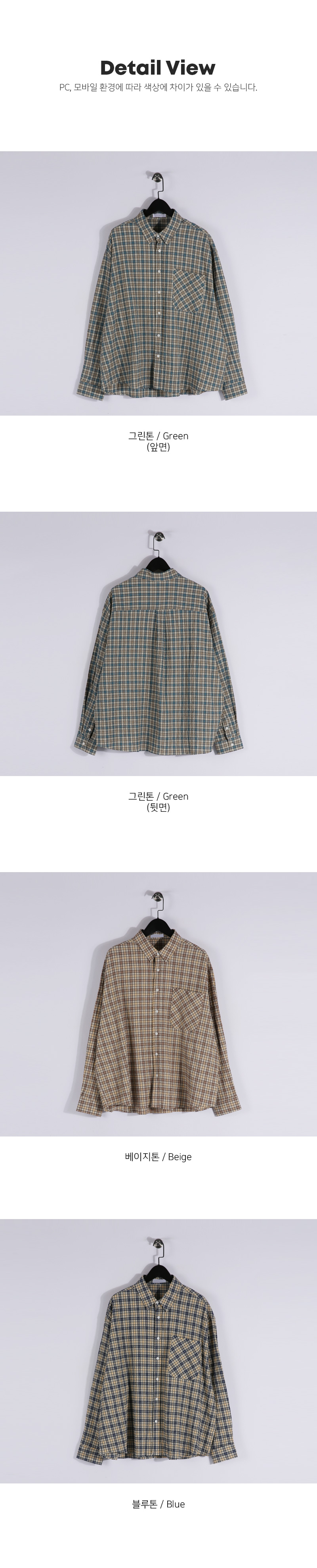 배색으로 포인트 준 체크 셔츠입니다. 여름까지도 활용하기 좋은 두께감은 물론 예쁜 배색감으로 포인트를 주어 면 팬츠,데님 팬츠 등 매치해 다양한 코디 연출이 가능하며 핏 또한 오버핏으로 좀 더 여유 있는 피팅감을 느끼실 수 있습니다. SIZE FREE 모델착용 [JUNBEOM]색상 : 그린톤 / 사이즈 : FREE ![]() ![]() ![]() ![]() ![]() ![]() ![]() ![]()