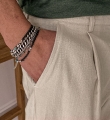 활용도가 좋은 린넨 팬츠입니다. 여름 내내 착용하기 좋은 두께감은 물론 앞면 핀턱과 뒷밴딩으로 제작되어 활동성이 좋고 베이직한 컬러로 두고두고 활용하기 좋아 고객님들께 추천드리는 아이템으로 셔츠, 니트, 반팔티등 다양한 상의와 매치하여 데일리룩, 댄디룩, 출근룩 등 여러 연출이 가능하고 핏 또한 세미와이드핏으로 여유있는 착용감을 느끼실 수 있습니다. SIZE L-XL,2XL,3XL,4XL-5XL 모델착용 [KIHOON]색상 : 크림 / 사이즈 : L-XL