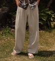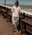 발비스 Semi-wide fit Back banding linen slacks