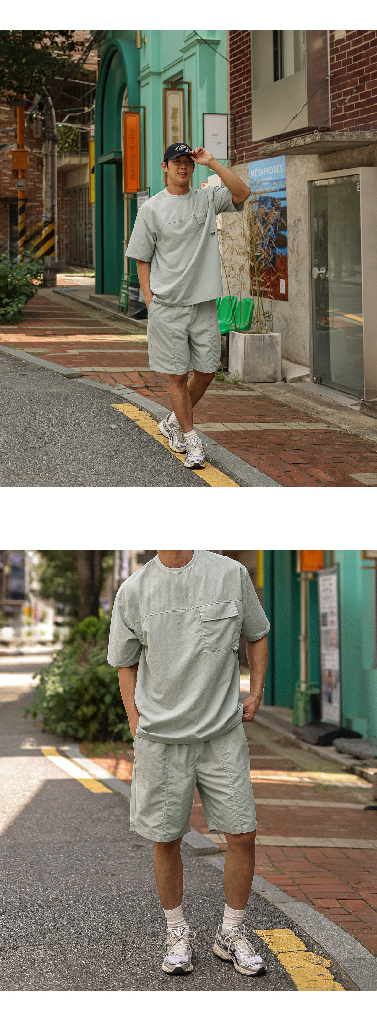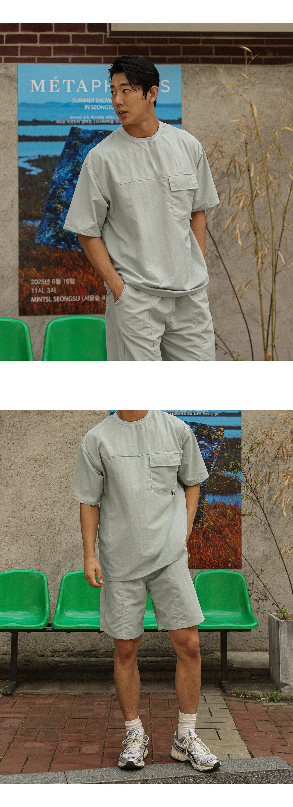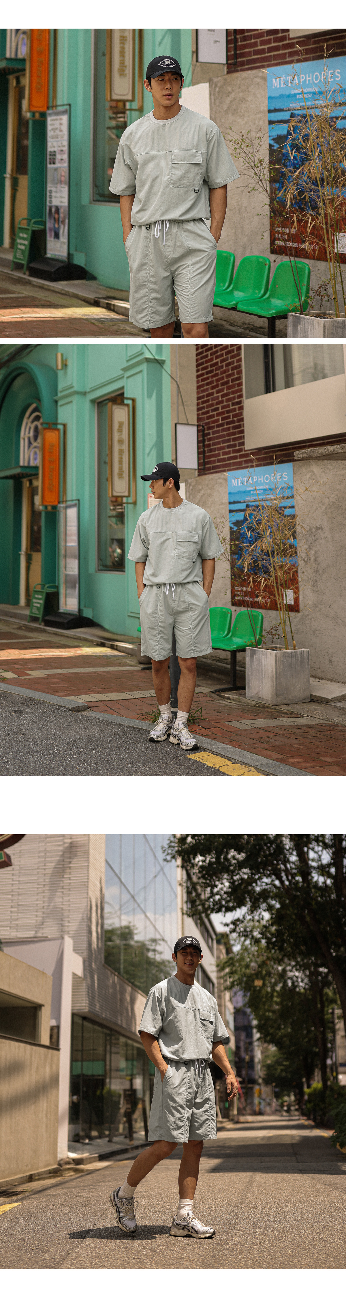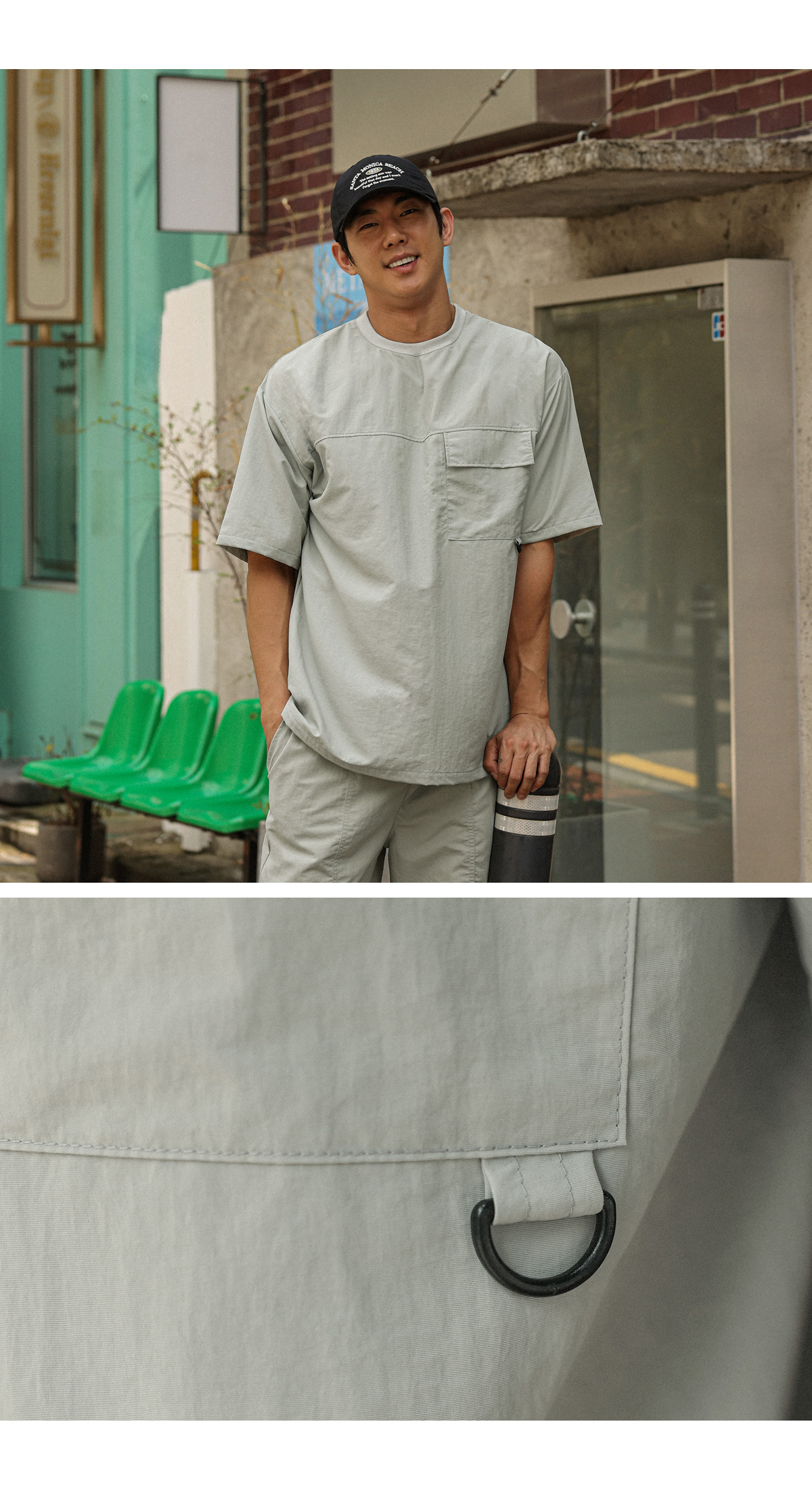 나일론 소재의 반팔 티입니다. 여름 내내 착용하기 좋은 두께감은 물론 포켓 D 링 고리가 포인트를 주며 같이 나온 하의 셋업인 팬츠와 혹은 단독으로 데님 팬츠, 트레이닝팬츠 등 매치해 캐주얼룩, 스트릿룩, 애슬레져룩 등 다양하게 코디가 가능하며 핏 또한 루즈한 핏으로 좀 더 여유 있는 피팅감을 느끼실 수 있습니다. SIZE L-XL(2번),2XL(3번),3XL-4XL(4번) 모델착용 [JUNBEOM]색상 : 그레이 / 사이즈 : L-XL(2번) ![]() ![]() ![]() ![]() ![]() ![]() ![]() ![]()