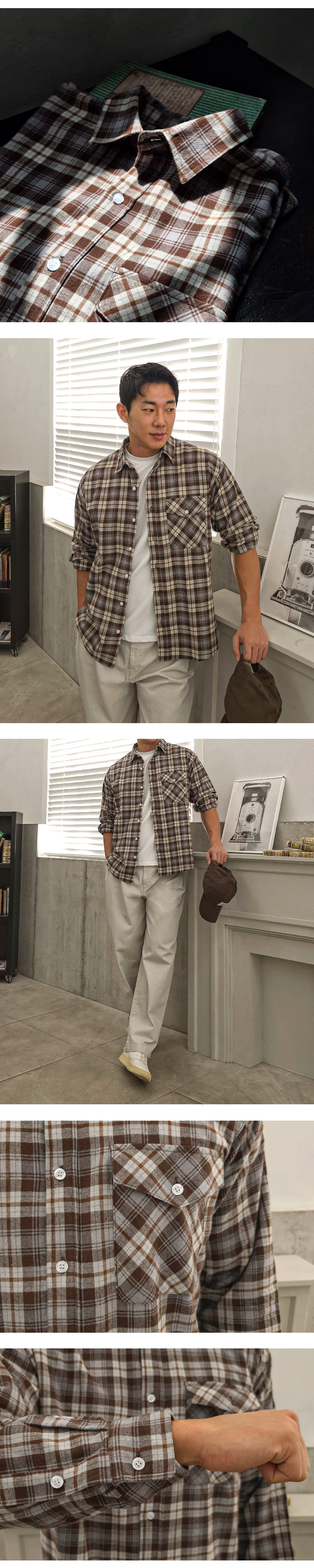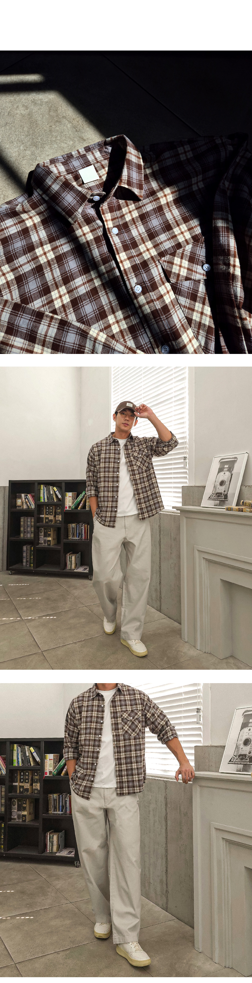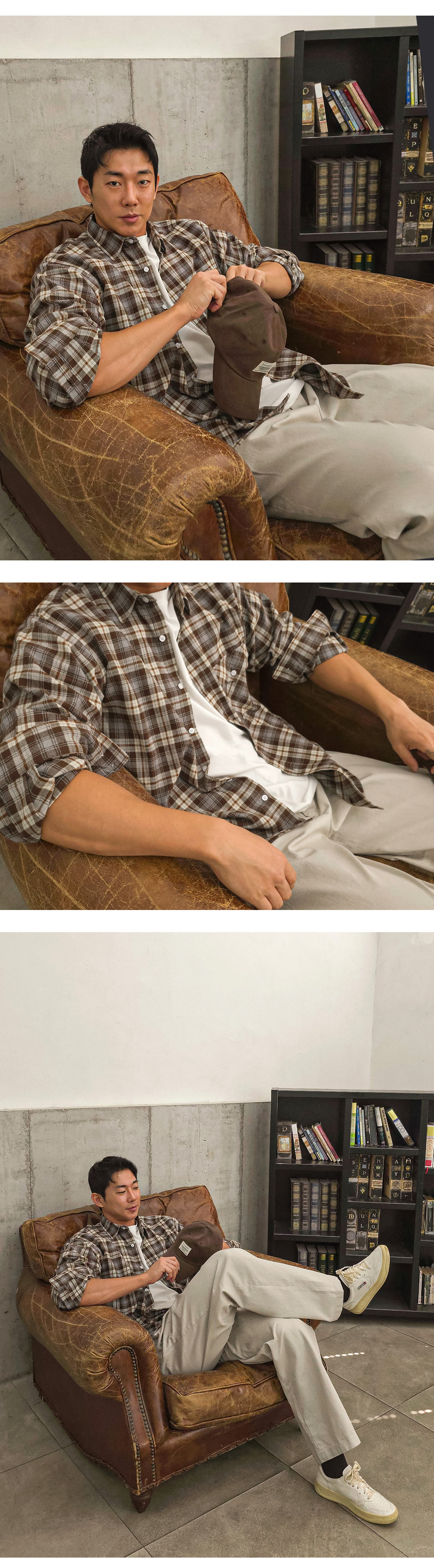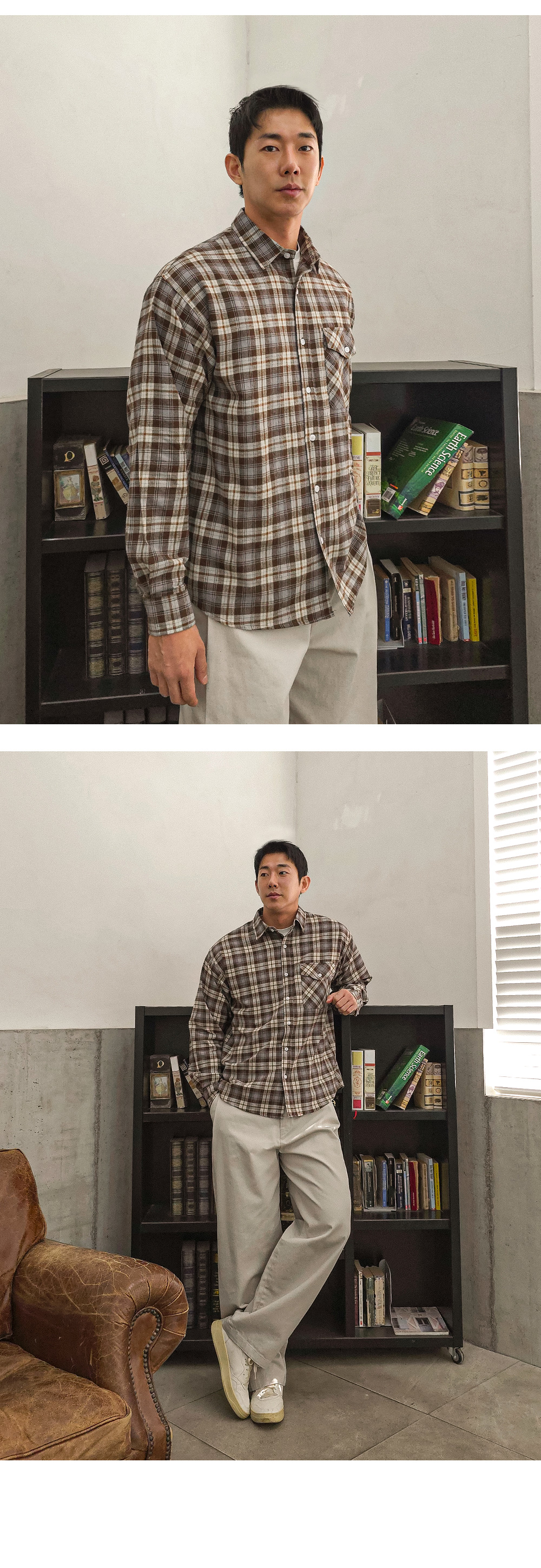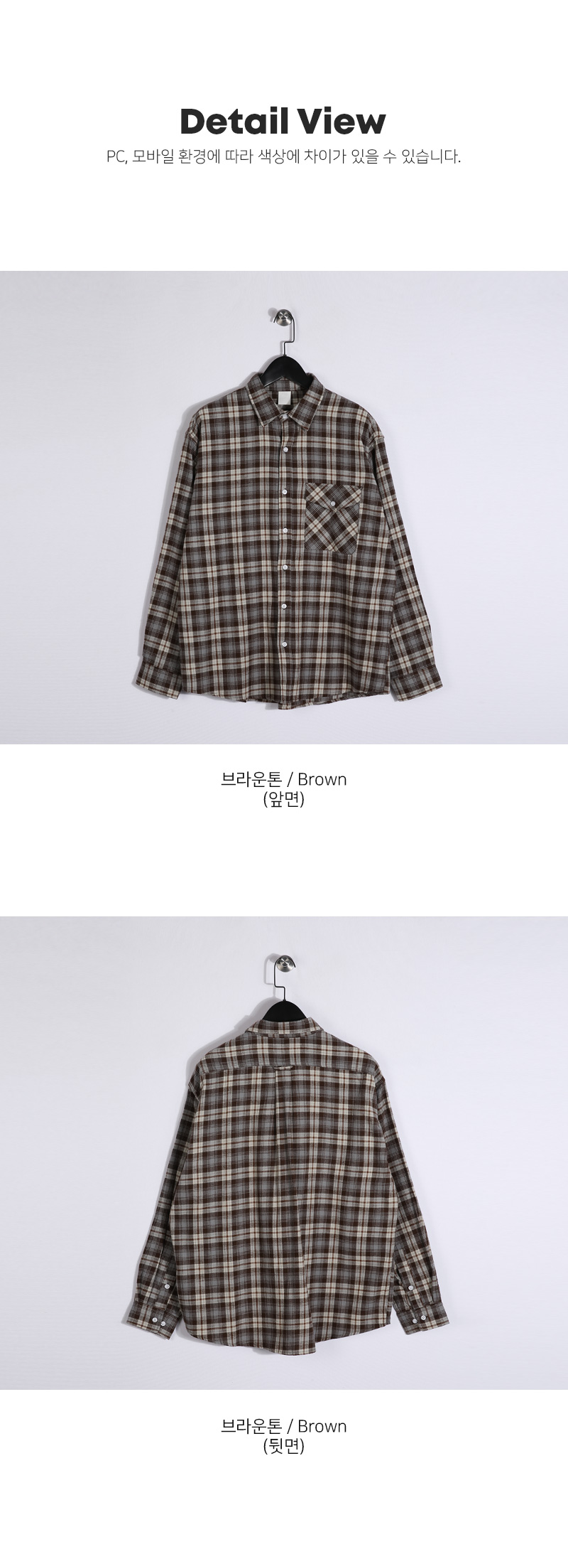 체크패턴으로 제작된 셔츠 입니다. 가을내내 활용하기 좋은 두께감은 물론 컬러감 또한 가을무드에 맞는 컬러감으로 제작되어 니트안에 혹은 단독으로 셔츠자켓 느낌으로도 활용하기 좋아 고객님들께 추천드리며 핏 또한 루즈한 핏으로 좀 더 여유있는 피팅감을 느끼실 수 있습니다. SIZE L-XL 모델착용 [JUNBEOM]색상 : 브라운톤 / 사이즈 : L-XL ![]() ![]() ![]() ![]() ![]() ![]() ![]() ![]()