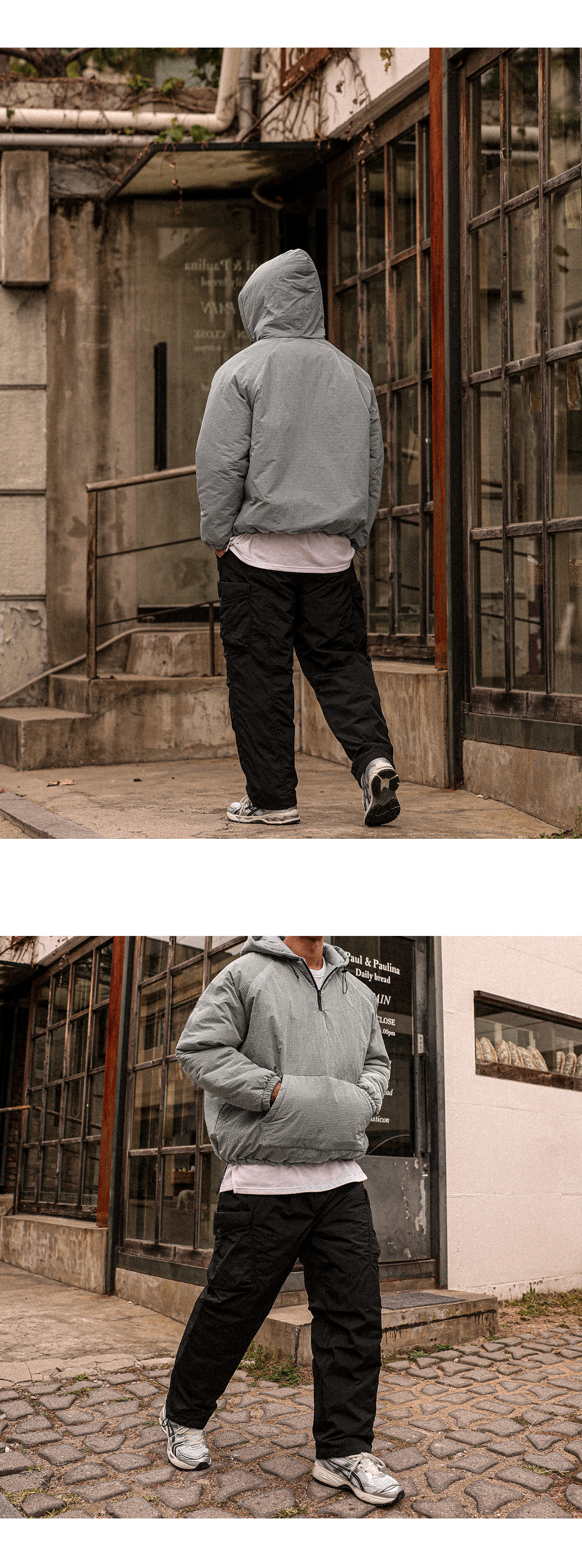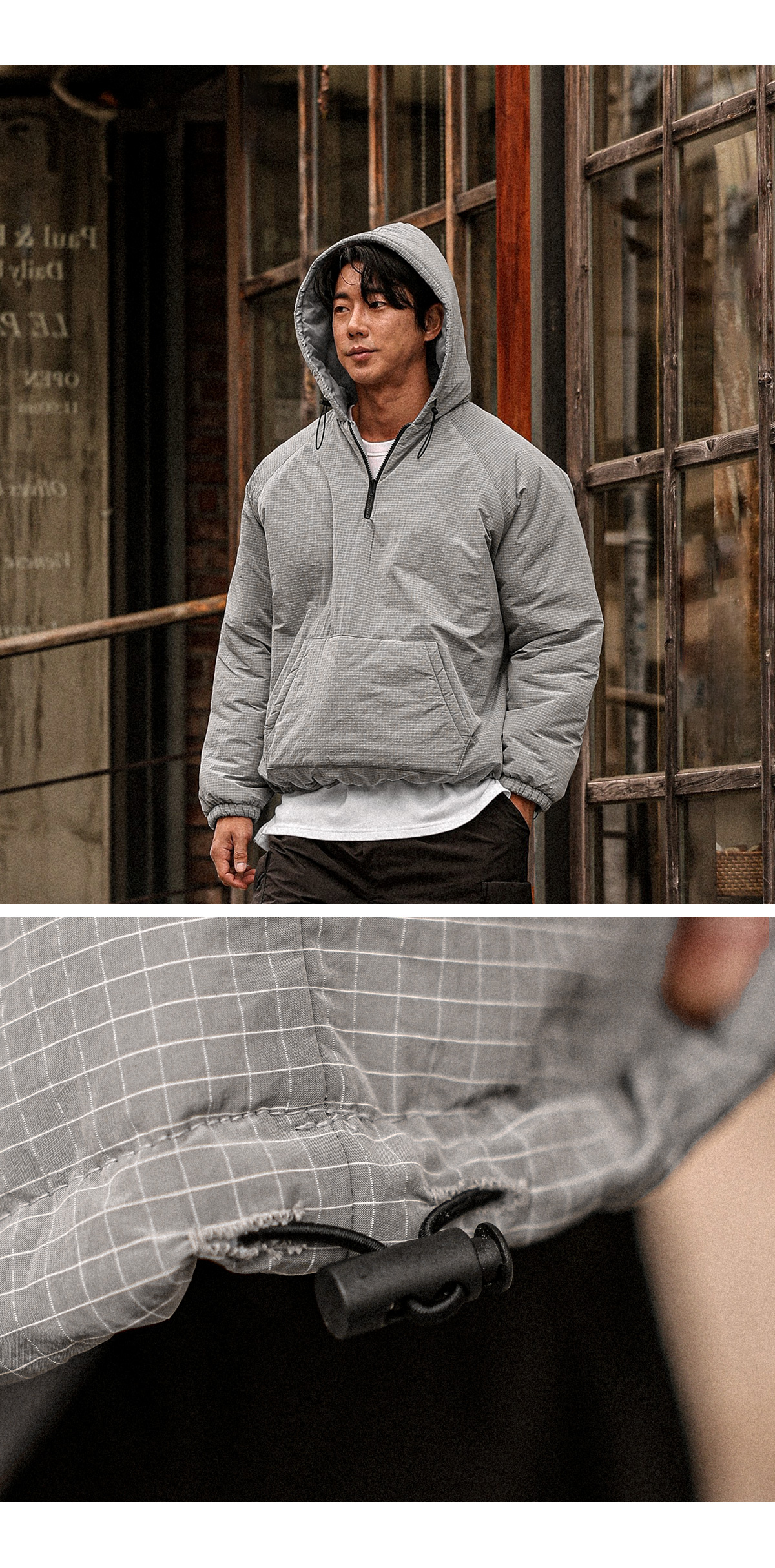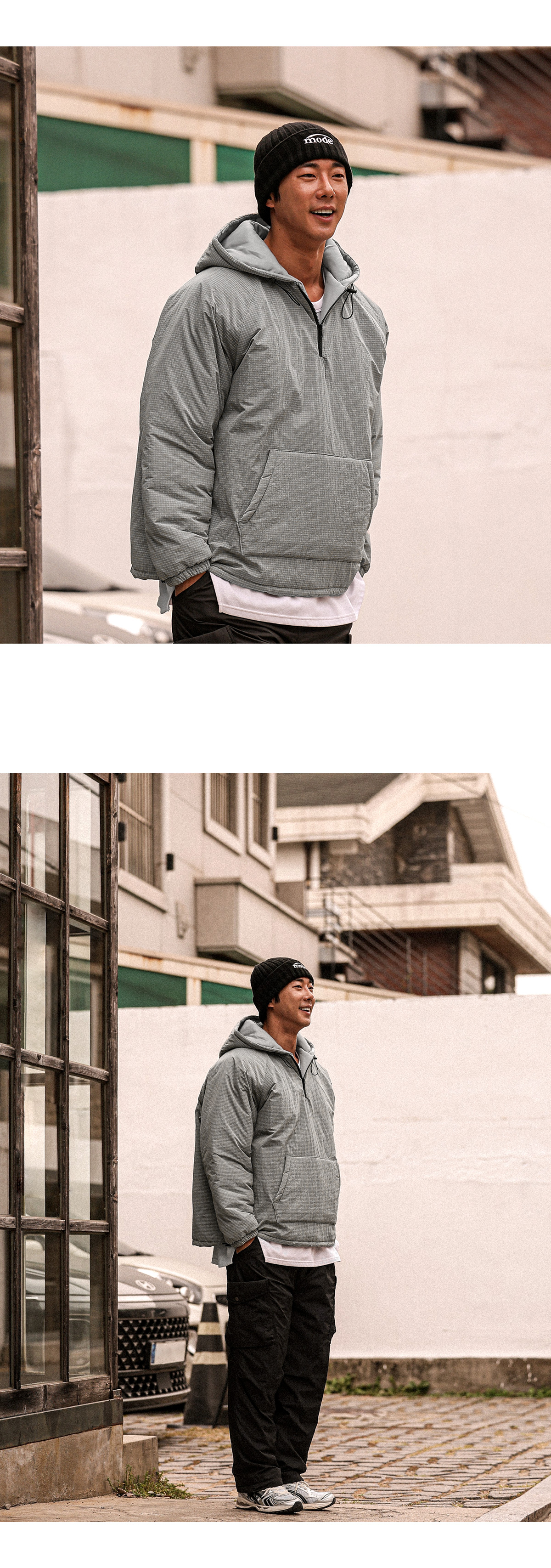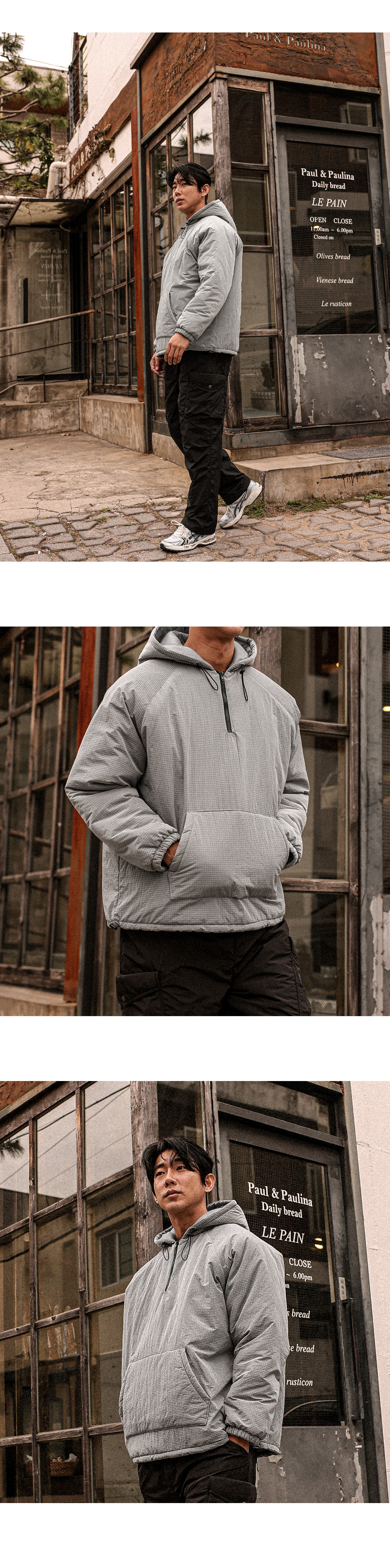 아노락 형태의 후드 패딩 입니다. 겨울내내 활용하기 좋은 4온스 충전재로 보온성이 좋고 안에 기모 반팔,기모 맨투맨등 레이어드해 캐주얼하면서 스트릿한 느낌을 주는 아이템이며 핏 또한 오버핏으로 좀더 여유있는 피팅감을 느끼실수 있습니다. SIZE FREE 모델착용 [JUNBEOM]색상 : 메탈톤 / 사이즈 : FREE ![]() ![]() ![]() ![]() ![]() ![]() ![]() ![]()