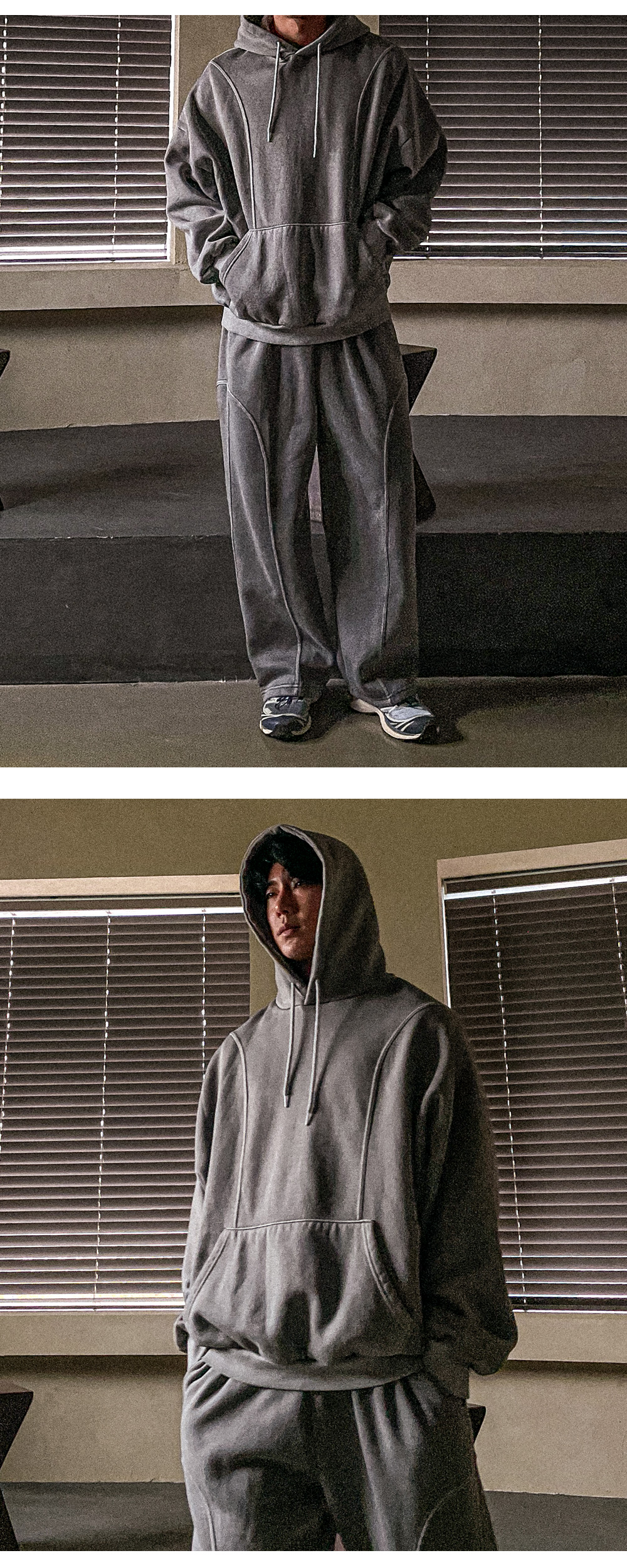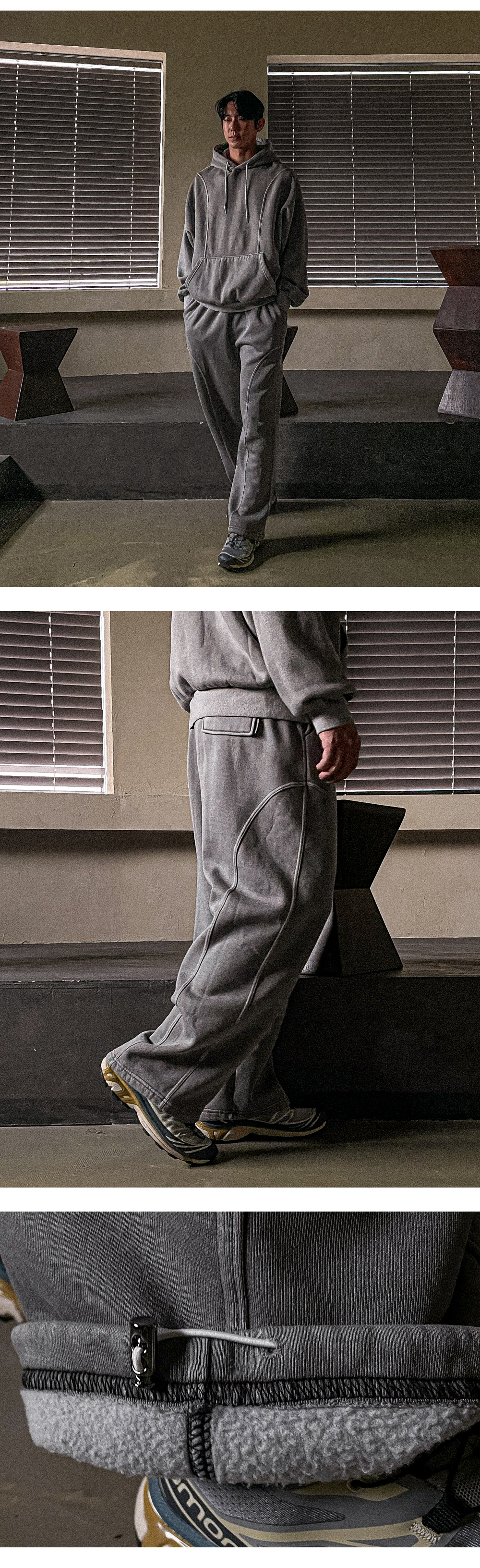 절개로 포인트 준 밴딩 팬츠입니다. 겨울내내 활용하기 좋은 안감 기모는 물론 절개 포인트와 전체적인 피그먼트 워싱으로 제작되었으며 밑단 스트링으로 조절이 가능해 셋업인 후드와 혹은 단독으로 패딩점퍼,셔츠자켓,코트등등 매치해 캐주얼룩, 스트릿룩, 홈웨어룩 등 활용하기 좋은 아이템이며 핏 또한 세미 와이드 핏으로 좀 더 여유 있는 피팅감을 느끼실수 있습니다. SIZE XL-3XL,4XL-6XL 모델착용 [JUNBEOM]색상 : 그레이 / 사이즈 : XL-3XL ![]()