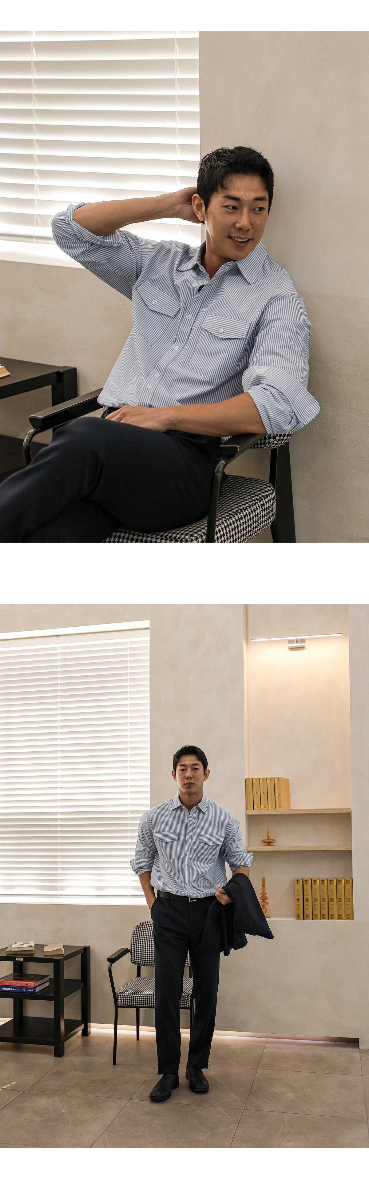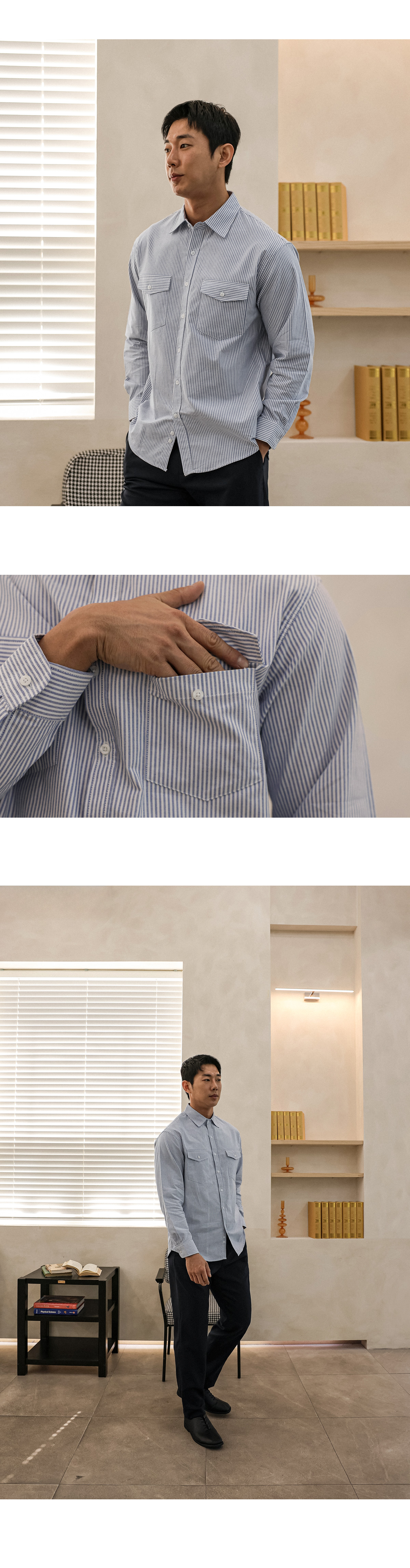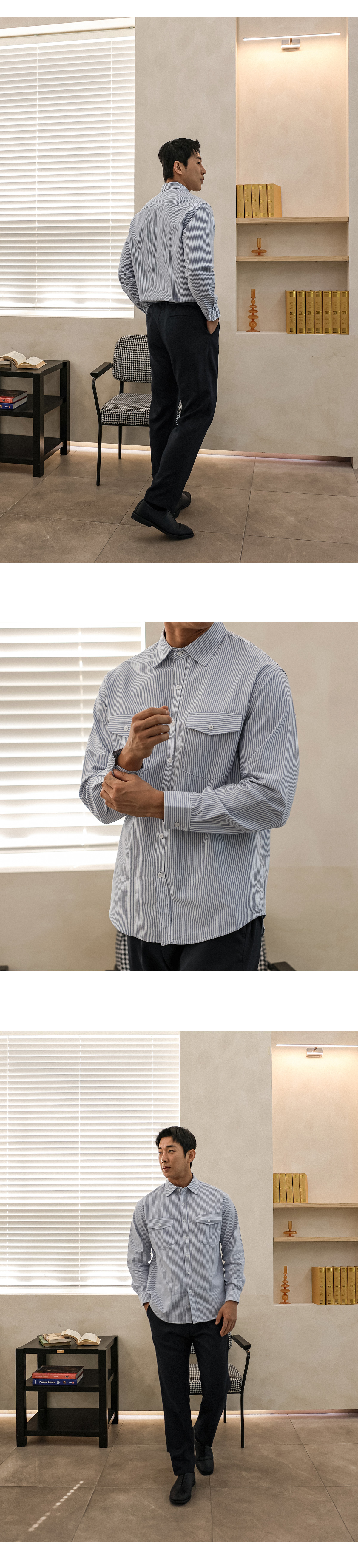 스트라이프 패턴으로 제작된 셔츠입니다.