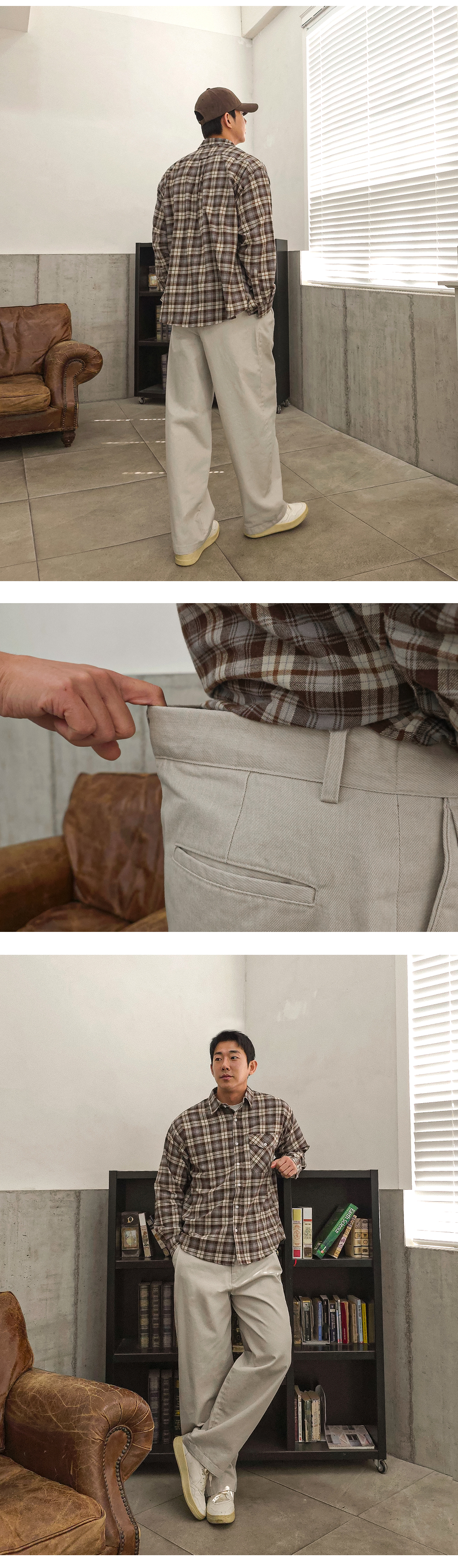 매력이 있는 뒷밴딩 면팬츠 입니다. 가을내내 활용하기 좋은 두께감은 물론 뒷 밴딩으로 활동성이 좋고 은은한 워싱감으로 일반 면 팬츠와는 느낌이 살짝 달라 맨투맨,후드,점퍼,셔츠 등 다양하게 매치하기 좋은 아이템이며 핏 또한 세미 와이드핏으로 좀 더 여유있는 피팅감을 느끼실 수 있습니다. SIZE M,L-XL 모델착용 [JUNBEOM]색상 : 그레이베이지 / 사이즈 : L-XL
