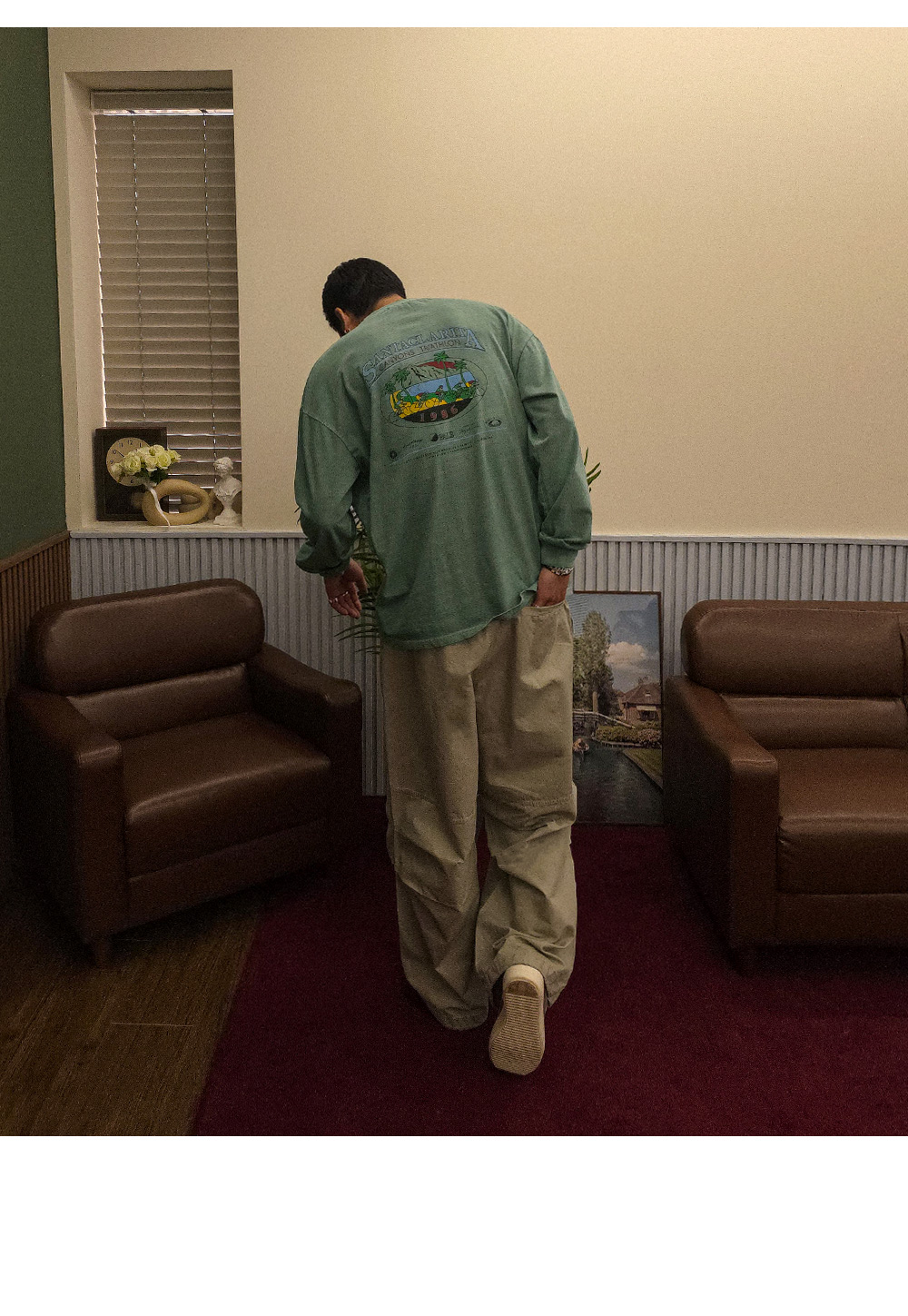 매력적인 색감의 피그먼트 긴팔 티셔츠 입니다. 가을,봄에 활용하기 좋은 두께감은 물론 나염과 워싱으로 포인트를 주어 카고팬츠,트레이닝팬츠 등 매치해 데일리룩,스트릿웨어룩 등 다양한 코디에 활용하기 좋고 핏 또한 오버핏으로 여유로운 피팅감을 느끼실 수 있습니다. SIZE FREE 모델착용 [KIHOON]색상 : 라이트그린 / 사이즈 : FREE ![]() ![]() ![]() ![]() ![]() ![]() ![]() ![]() ![]()