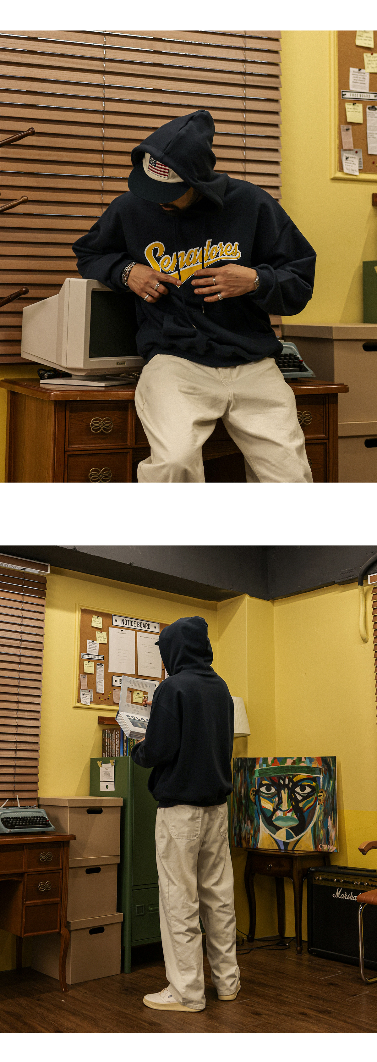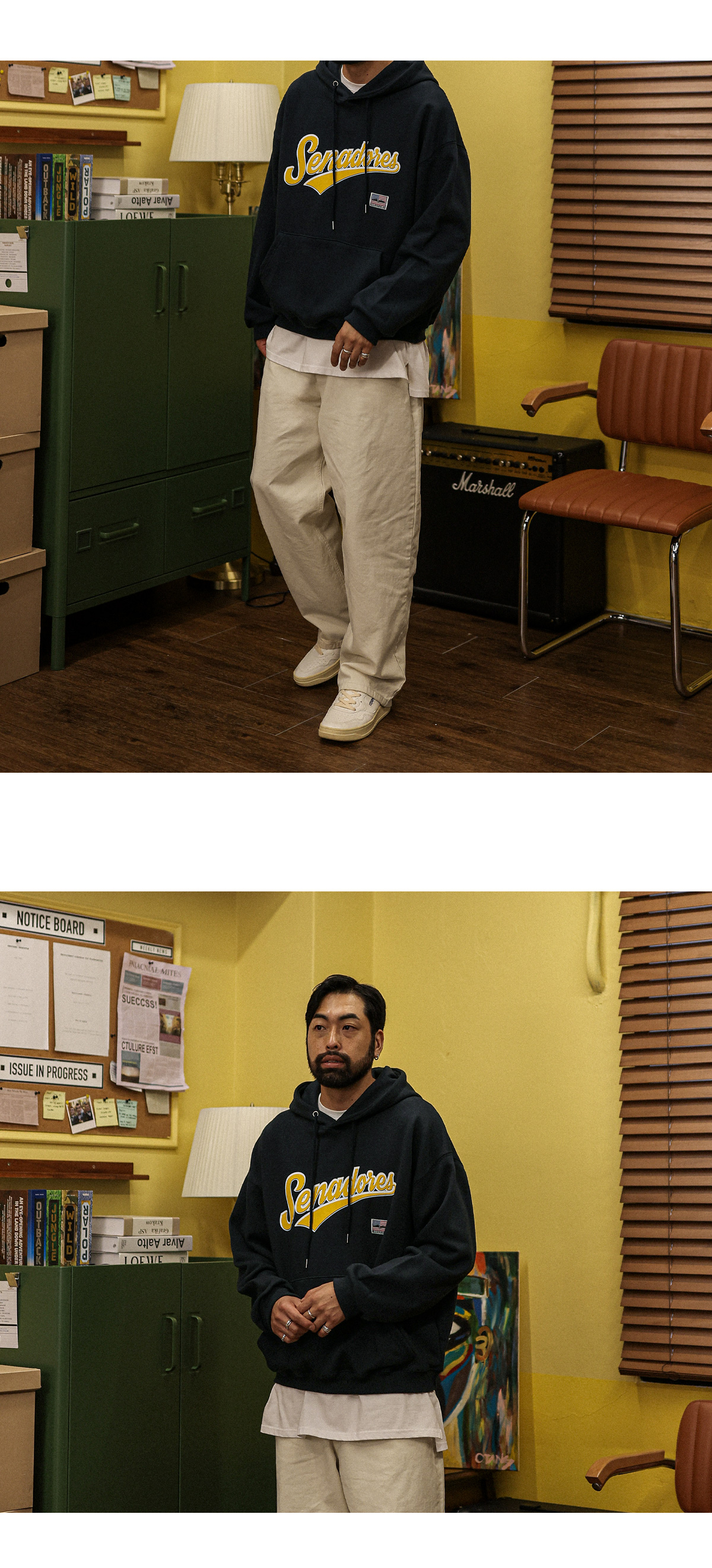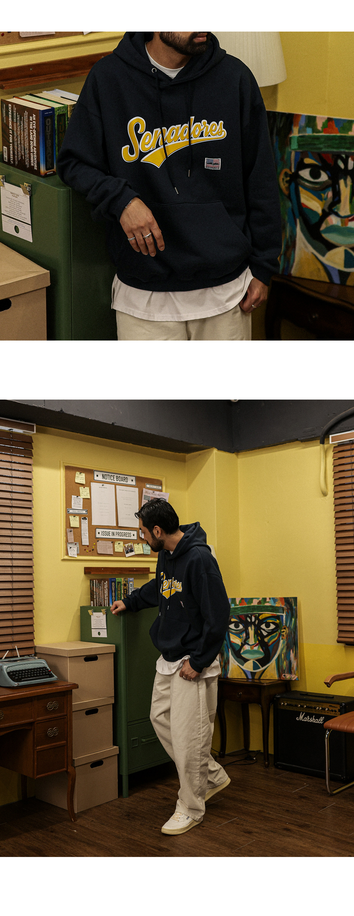 데일리로 착용하기 좋은 후드티입니다. 가을,봄에 착용하기 좋은 두께감은 물론 베이직한 디자인에 레터링 포인트로 제작되어 면팬츠,트레이닝팬츠등 매치해 캐주얼룩,데일리룩등 다양한 코디에 활용하기 좋고 핏 또한 세미 오버핏으로 좀 더 여유로운 피팅감을 느끼실수 있습니다. SIZE FREE 모델착용 [KIHOON]색상 : 네이비 / 사이즈 : FREE ![]() ![]() ![]() ![]() ![]() ![]() ![]() ![]()