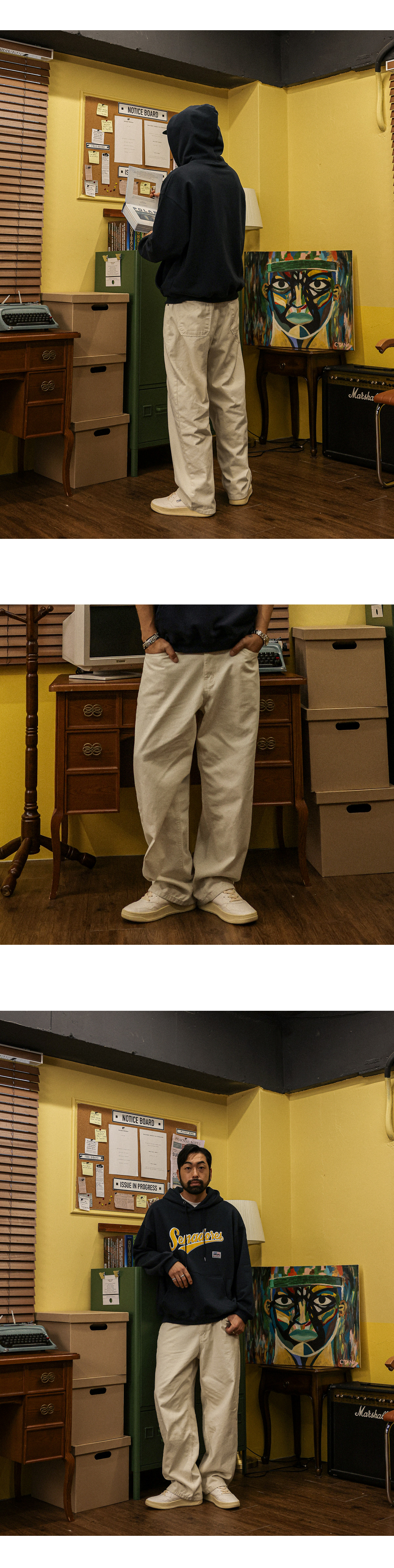 기본 아이템으로 추천드리는 팬츠입니다 가을,봄에 활용하기 좋은 두께감은 물론 베이직한 디자인으로 활용도가 높아 기본 아이템으로 추천드리며 셔츠,니트등 매치해 캐주얼룩,포멀룩등 다양한 코디에 활용하기 좋고 핏 또한 세미 와이드핏으로 좀 더 여유로운 피팅감을 느끼실수 있습니다. SIZE M,L 모델착용 [KIHOON]색상 : 아이보리 / 사이즈 : L