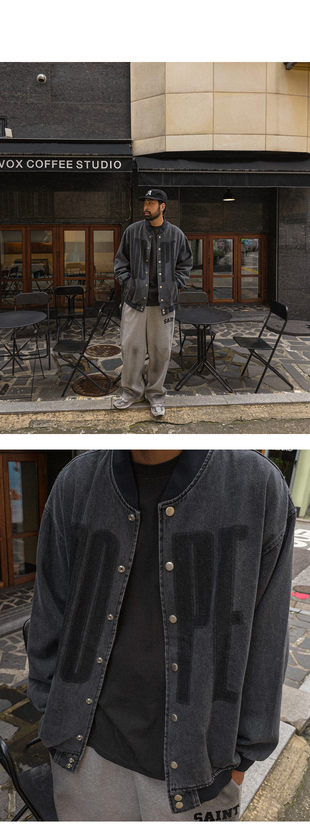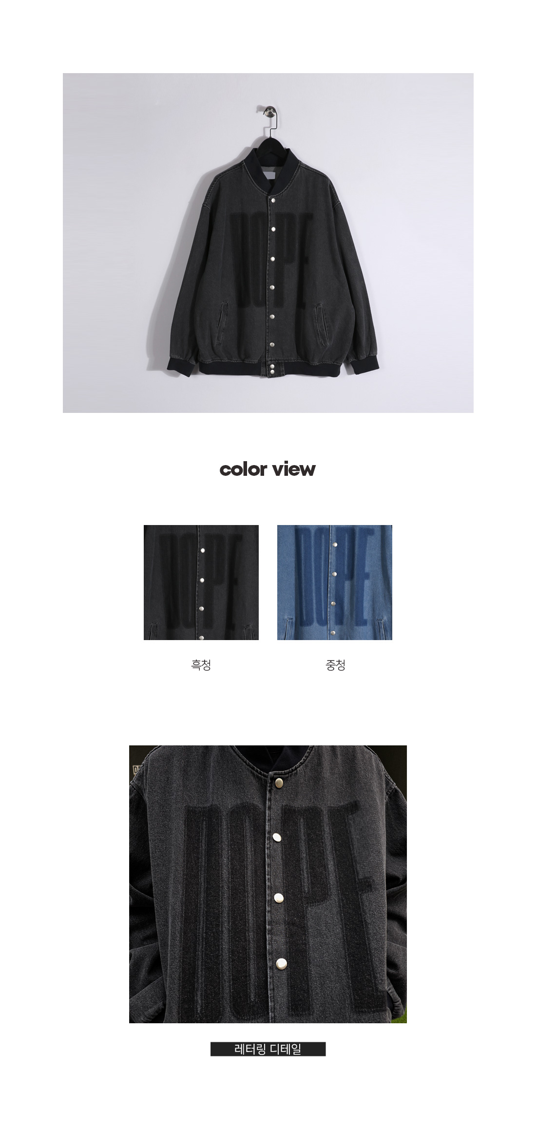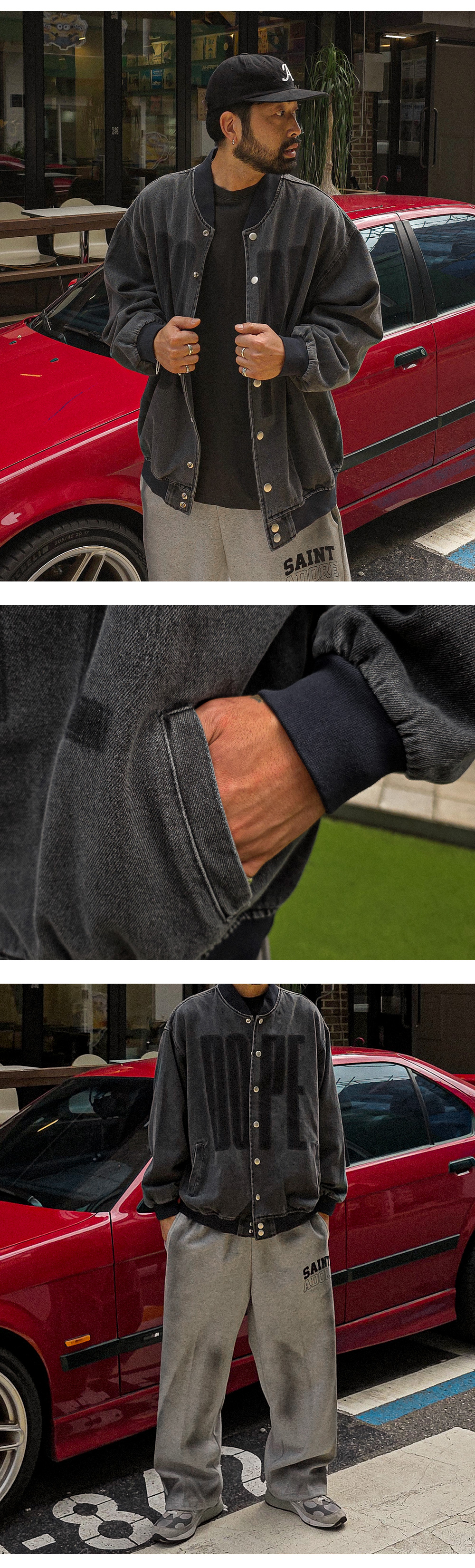데일리로 착용하기 좋은 데님 바시티 자켓입니다. 가을, 봄에 활용하기 좋은 두께감은 물론 레터링 포인트로 제작되어 맨투맨, 후드티 등과 매치해 캐주얼룩, 데일리룩 등 다양한 코디에 활용하기 좋고 핏 또한 오버핏으로 여유로운 피팅감을 느끼실 수 있습니다. SIZE FREE 모델착용 [KIHOON]색상 : 흑청 / 사이즈 : FREE ![]() ![]() ![]() ![]() ![]() ![]() ![]() ![]()