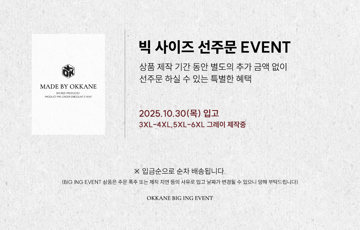 You must submit an exchange request within 7 days of receiving the product via 1:1 Inquiry or [okkanegb@naver.com]. The round-trip shipping fee must be covered by the customer. (When submitting, please provide your order number, name, email, product name, and the product you wish to exchange.) |
