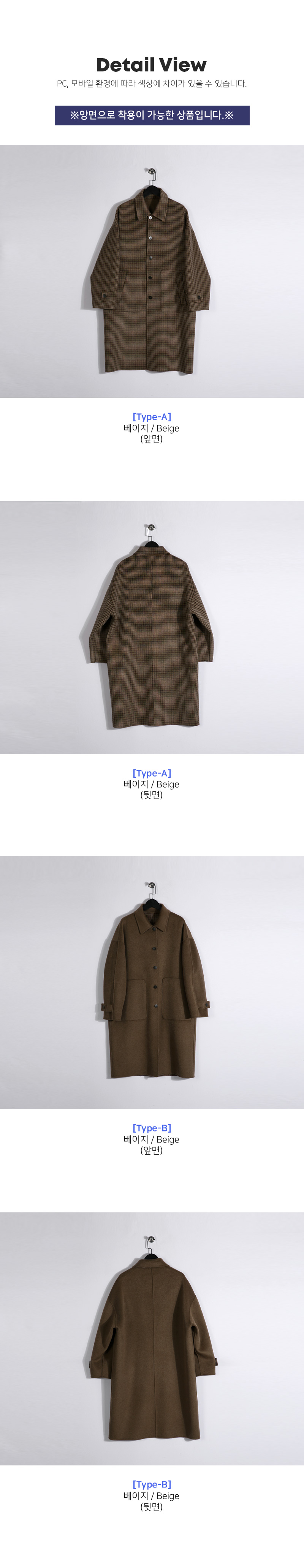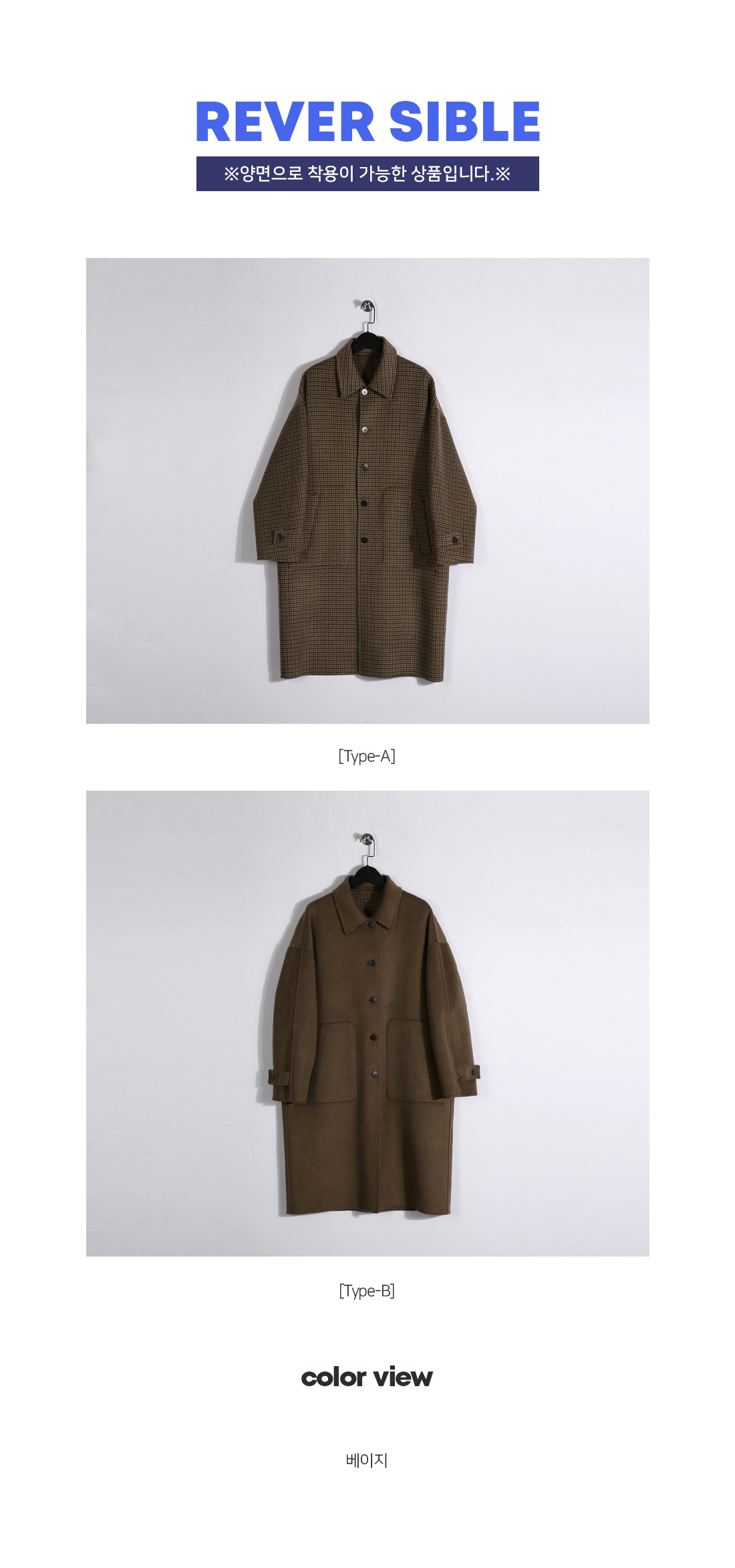 오까네에서 선보이는 두가지 무드로 즐길 수 있는 리버시블 코트입니다. 한쪽은 깔끔한 무지 디자인으로 다른 한쪽은 체크 패턴으로 제작되어 그날의 스타일이나 분위기에 따라 다양하게 연출할 수 있습니다. 핸드메이드 제작으로 재봉 흔적이 없으며 보온성이 뛰어나고 가벼운 착용감을 느낄수 있는 특징이 있으며 또한 울 함유량이 높아 부드러운 터치감과 고급스러운 텍스처로 자연스러운 광택이 있어 타사 코트보다 고급스러운 느낌을 받으실수 있습니다. 셔츠나 니트등과 매치해 캐주얼룩부터 세미 포멀룩까지 폭넓은 스타일링이 가능하고 세미 오버핏으로 여유로운 실루엣을 느끼실수 있으며 하나의 코트로 다양한 분위기를 낼 수 있어 고객님들께 추천드립니다. SIZE L-XL,2XL-3XL 모델착용 [KIHOON]색상 : 베이지 / 사이즈 : 2XL-3XL ![]() ![]() ![]() ![]() ![]() ![]() ![]() ![]()