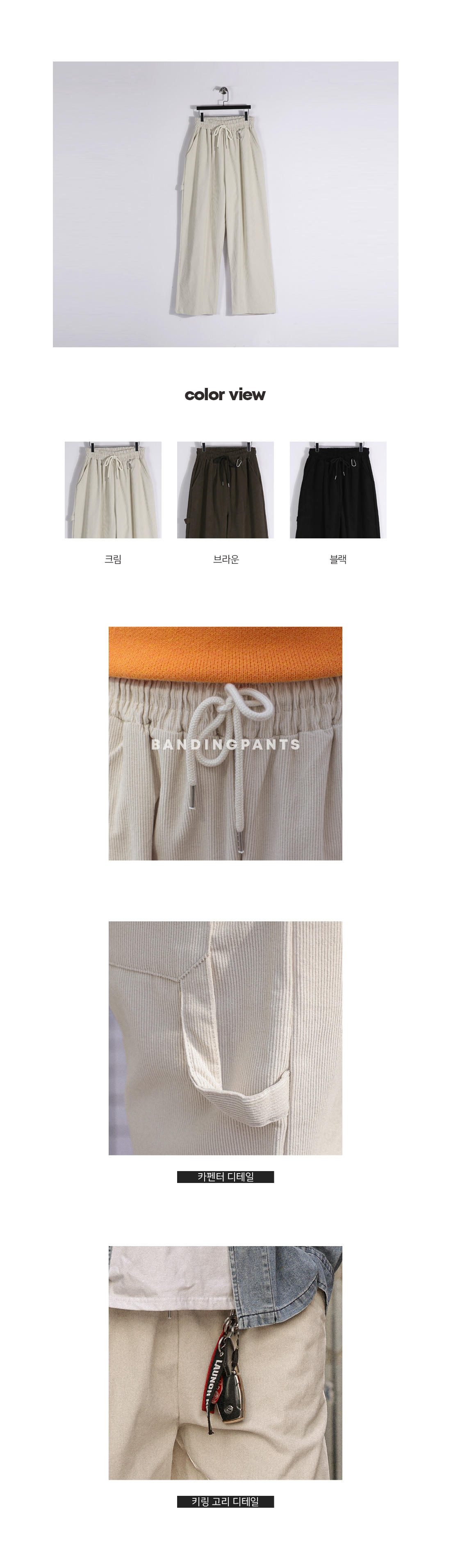 트렌디한 디자인의 골덴 팬츠입니다. 봄,가을 내내 착용하기 좋은 두께감은 물론 카펜터 디자인과 앞면 키링 고리가 있어 트렌디한 연출이 가능하고 니트, 맨투맨, 후드티 등 다양한 상의와 매치하여 데일리룩, 캐주얼룩, 꾸안꾸룩 등 여러 연출이 가능하고 핏 또한 세미 와이드핏으로 여유 있는 착용감을 느끼실 수 있습니다. SIZE FREE 모델착용 [JUNBEOM]색상 : 크림 / 사이즈 : FREE