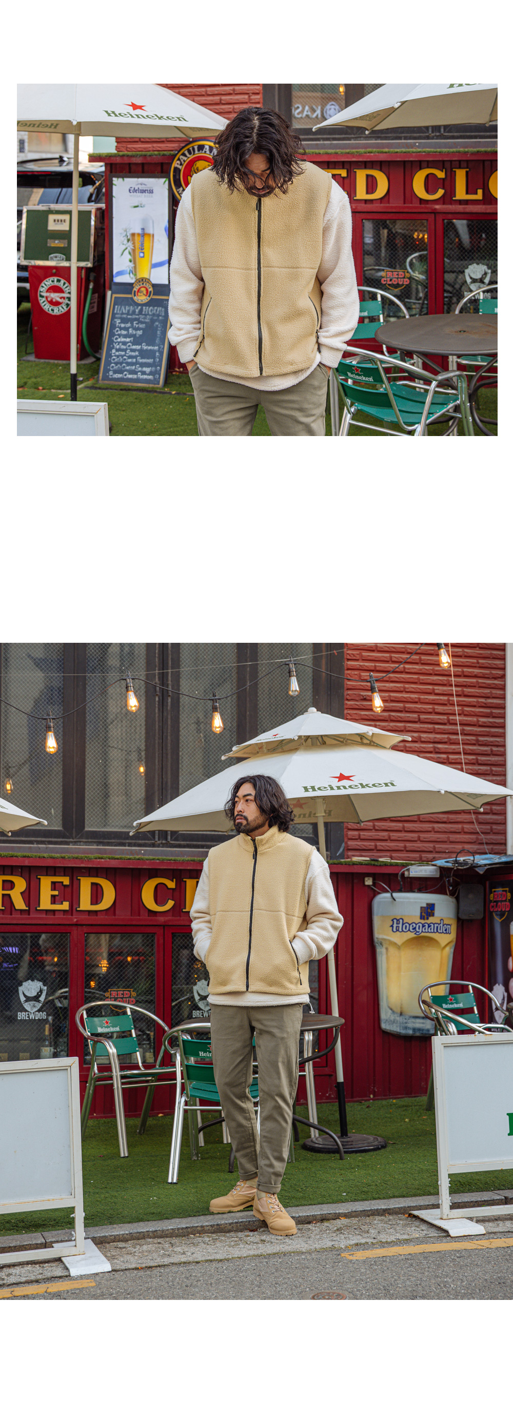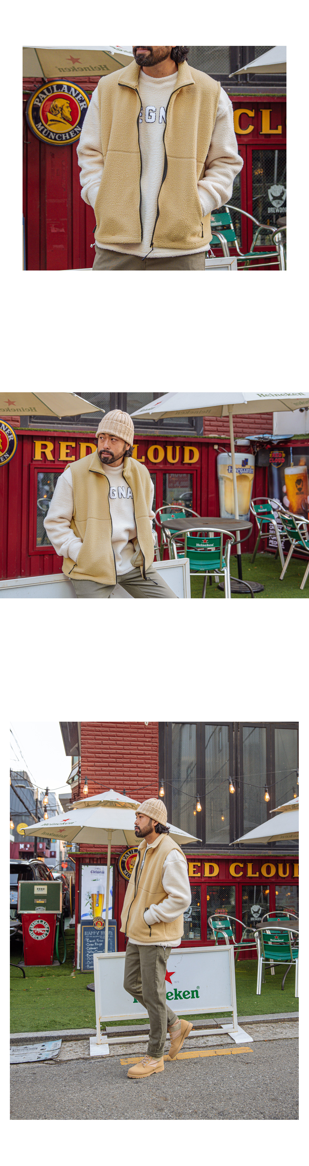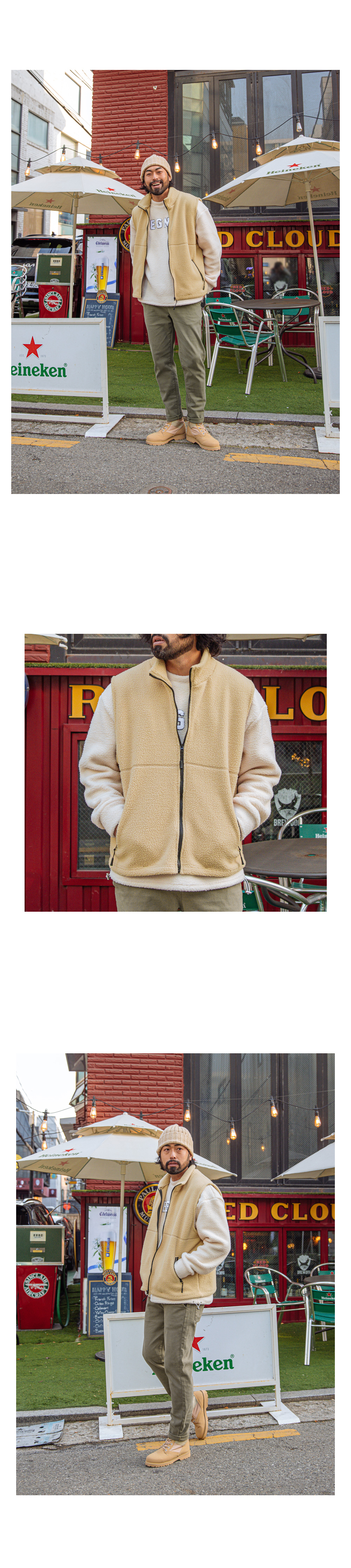 가볍게 착용하기 좋은 양털 베스트입니다. 보온성을 높여주는 양털로 제작되어 패딩,야상 점퍼등 안에 이너로도 활용하기 좋고 맨투맨,후드등 위에 자켓 형식으로도 착용하기 좋은 아이템이며 핏 또한 루즈한 핏이지만 살짝 텐션감이 있어 좀 더 여유 있는 피팅감을 느끼실 수 있습니다. SIZE L-XL(1번),2XL(2번),3XL-4XL(3번) 모델착용 색상 : 베이지 / 사이즈 : 2XL(2번) ![]() ![]() ![]() ![]() ![]() ![]() ![]() ![]() ![]()