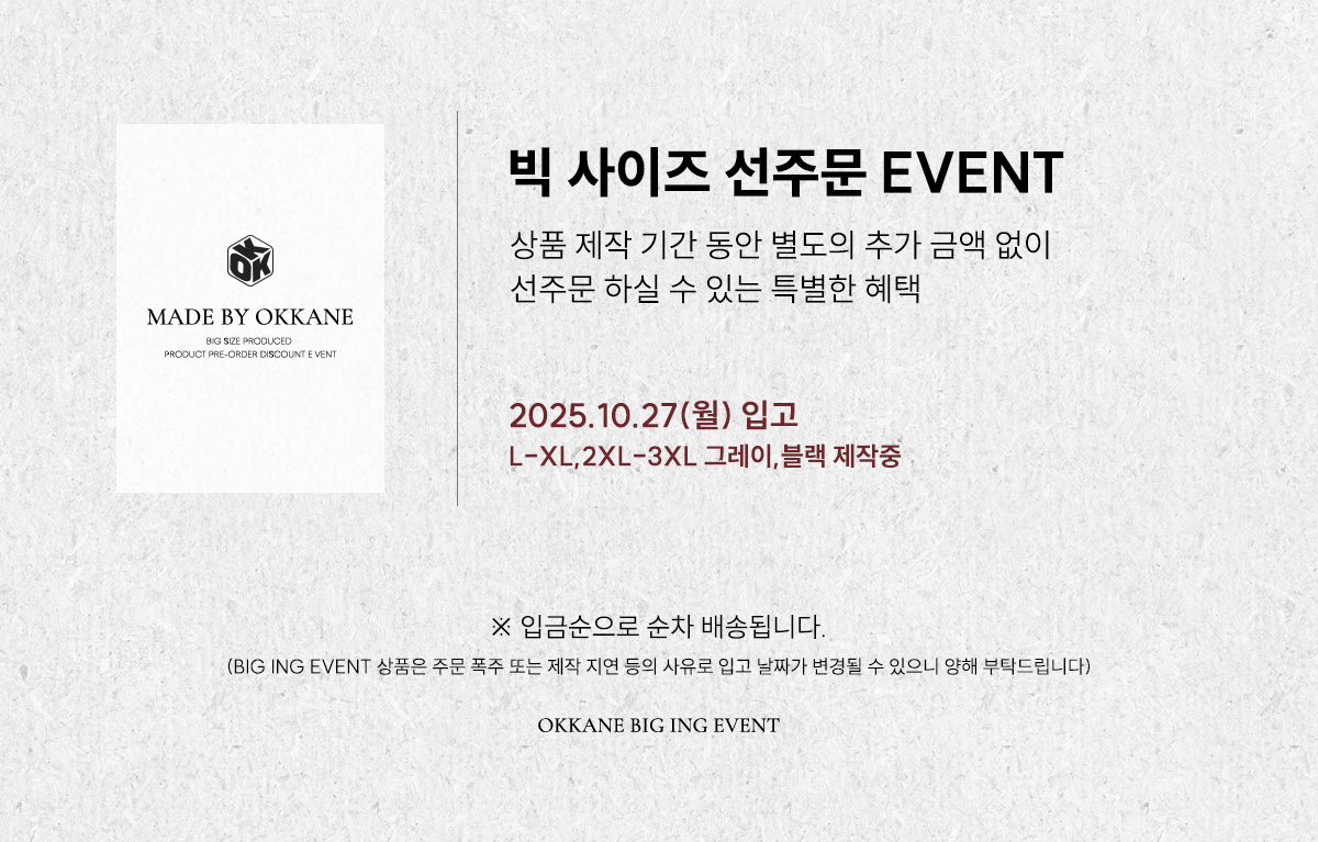 You must submit an exchange request within 7 days of receiving the product via 1:1 Inquiry or [okkanegb@naver.com]. The round-trip shipping fee must be covered by the customer. (When submitting, please provide your order number, name, email, product name, and the product you wish to exchange.) |