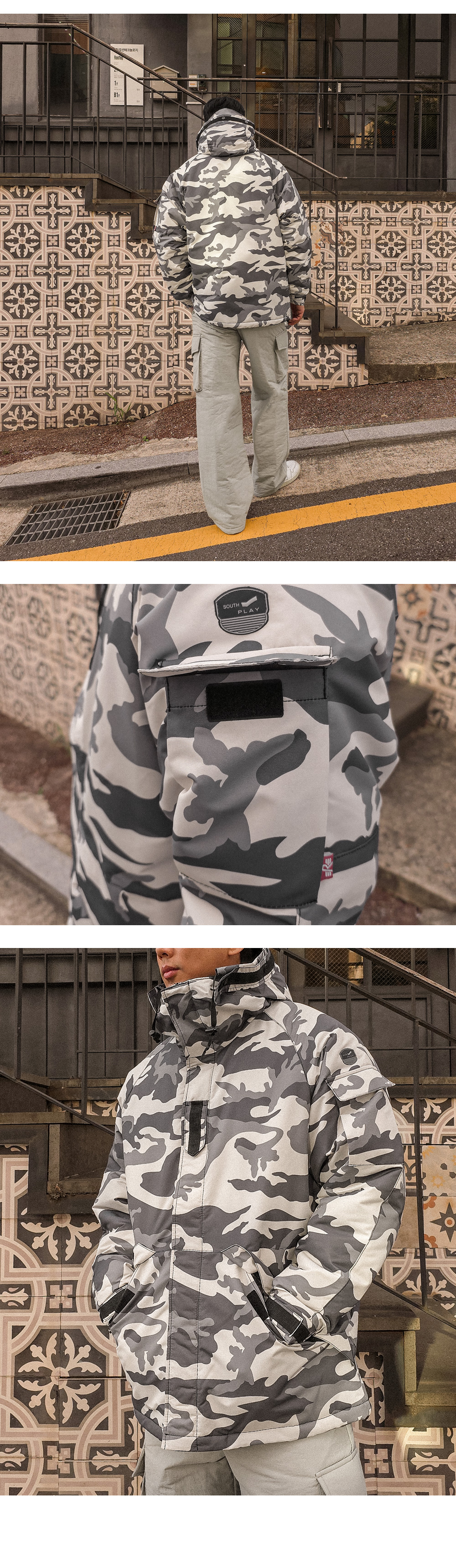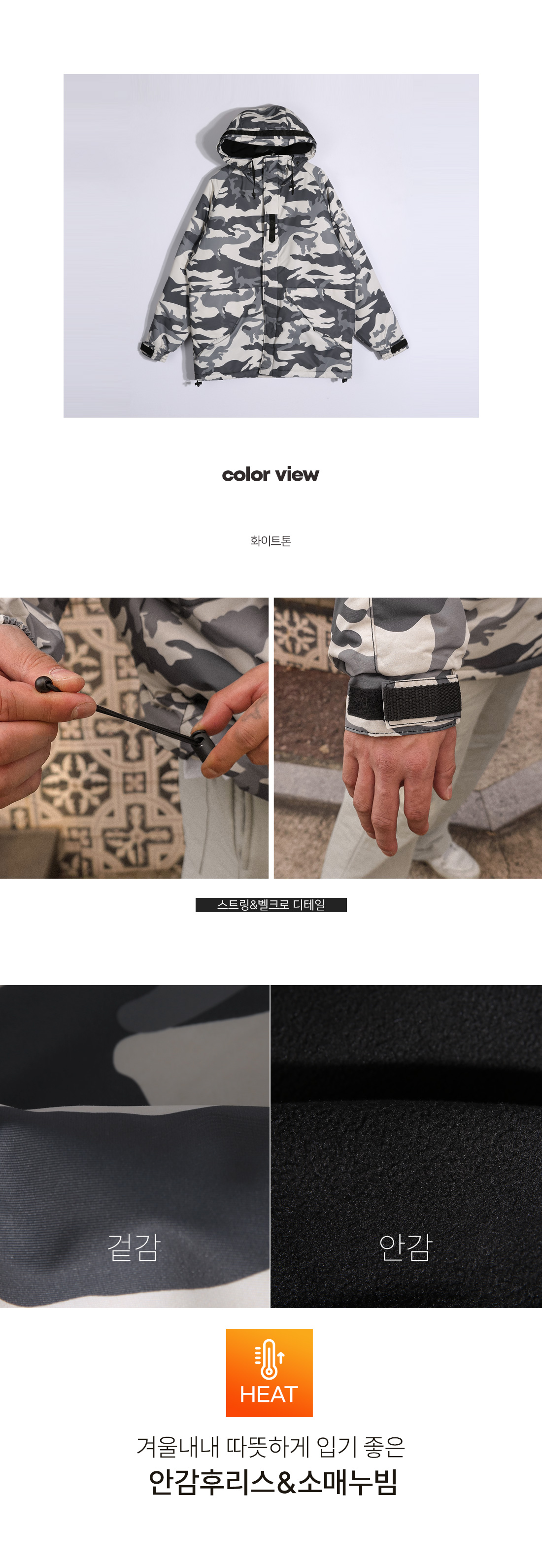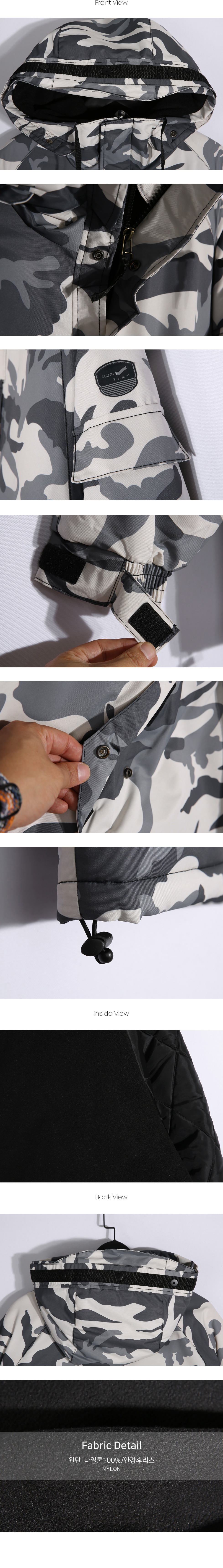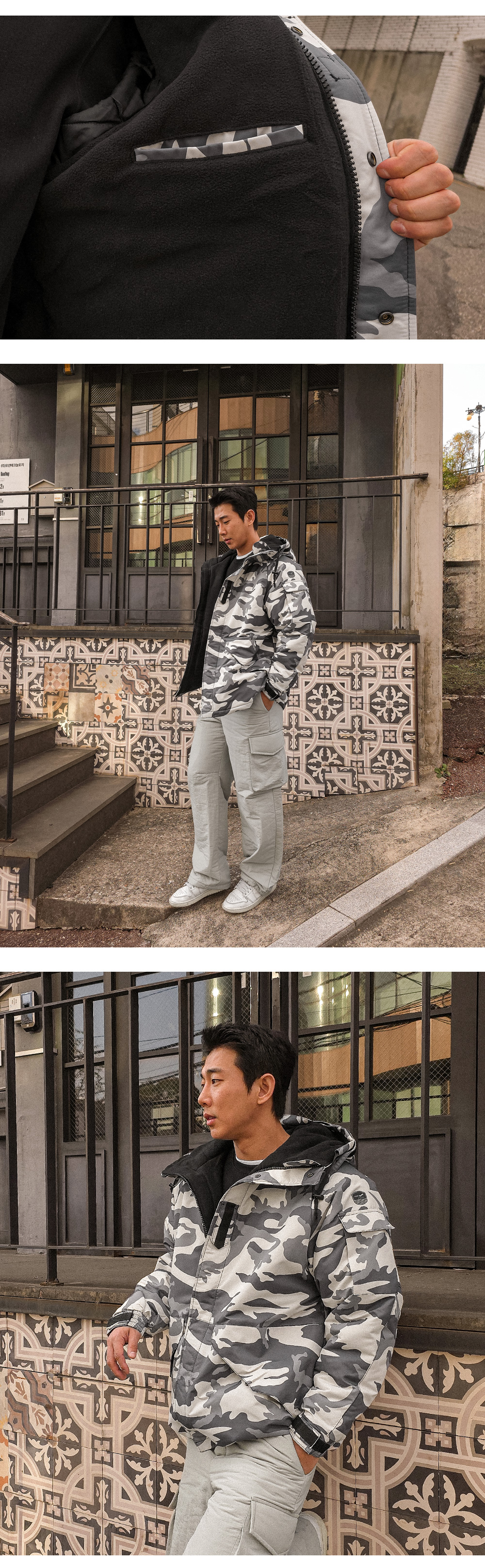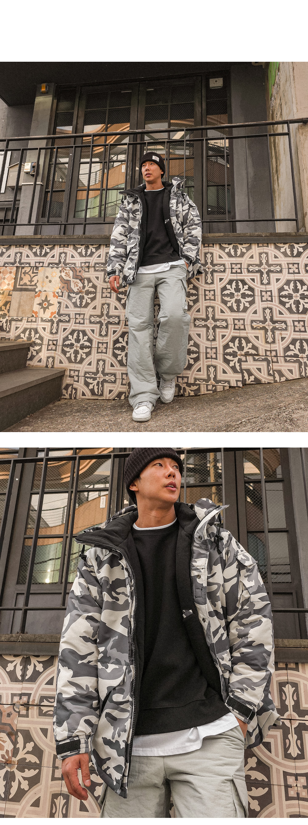보온성이 뛰어난 카모 패턴 점퍼입니다. 안감 후리스로 한층 더 따뜻하게 착용할 수 있으며, 전체적인 카모 패턴 디자인으로 스타일리시한 포인트를 줍니다. 안감 포켓으로 실용적인 수납이 가능하며, 캐주얼룩, 스트릿룩은 물론 스키복으로도 활용할 수 있어 고객님들께 적극 추천드리는 상품 입니다. SIZE S,M,L,XL,2XL,3XL,4XL 모델착용 [JUNBEOM]색상 : 화이트톤 / 사이즈 : 2XL ![]() ![]() ![]() ![]() ![]() ![]() ![]() ![]()
