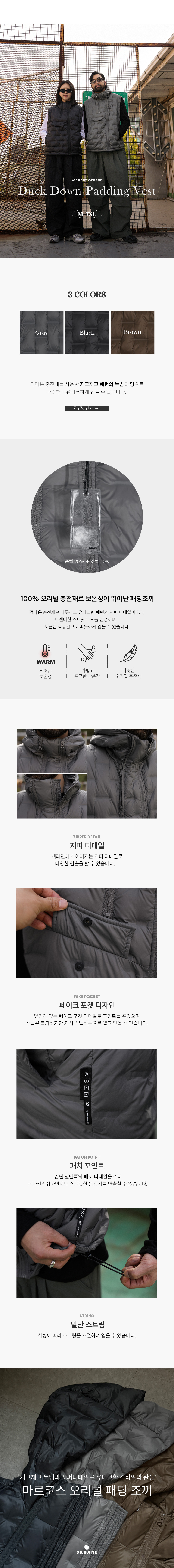 가볍지만 뛰어난 보온성을 자랑하는 덕다운 패딩 베스트입니다. 은은한 광택감이 도는 소재로 트렌디한 스트릿 무드를 더했으며, 밑단 스트링으로 핏 조절하여 다양한 실루엣을 완성합니다. 고급 덕다운 충전재를 사용해 가볍고 따뜻한 착용감을 제공하며, 후드 디자인으로 캐주얼하면서도 보온성을 한층 높였습니다. SIZE M-L,XL-2XL,3XL-4XL,5XL-6XL,7XL 모델착용 [남자모델]색상 : 그레이 / 사이즈 : XL-2XL [여자모델]색상 : 블랙 / 사이즈 : M-L ![]() ![]() ![]() ![]() ![]() ![]() ![]() ![]()