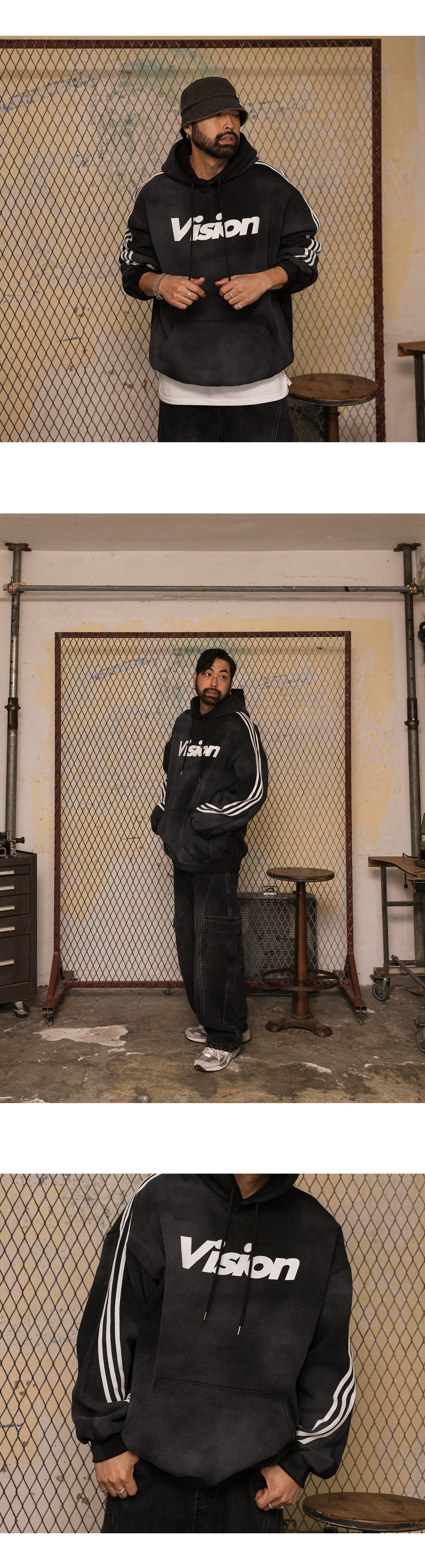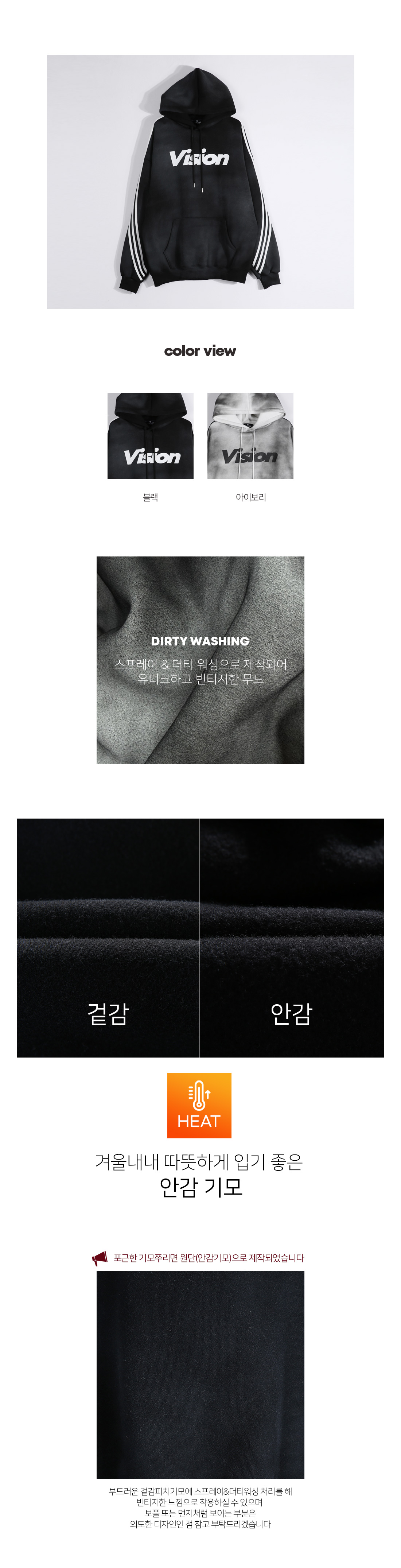 더티 워싱으로 스트릿한 무드를 연출해주는 기모 후드티입니다. 프론트 레터링과 사이드 배색 디테일이 포인트가되어 감각적인 스트릿 스타일 연출이 가능합니다. 탄탄한 소재감과 밑단, 소매 시보리처리로 깔끔하고 이상적인 실루엣을 완성하며, 기모 안감으로 제작되어 포근하고, 따뜻한 착용감을 제공합니다, 넉넉한 오버핏 사이즈로 다양한 하의와 매치할 수 있습니다. SIZE FREE 모델착용 [남자모델]색상 : 블랙 / 사이즈 : FREE [여자모델]색상 : 아이보리 / 사이즈 : FREE ![]() ![]() ![]() ![]() ![]() ![]() ![]() ![]() ![]()