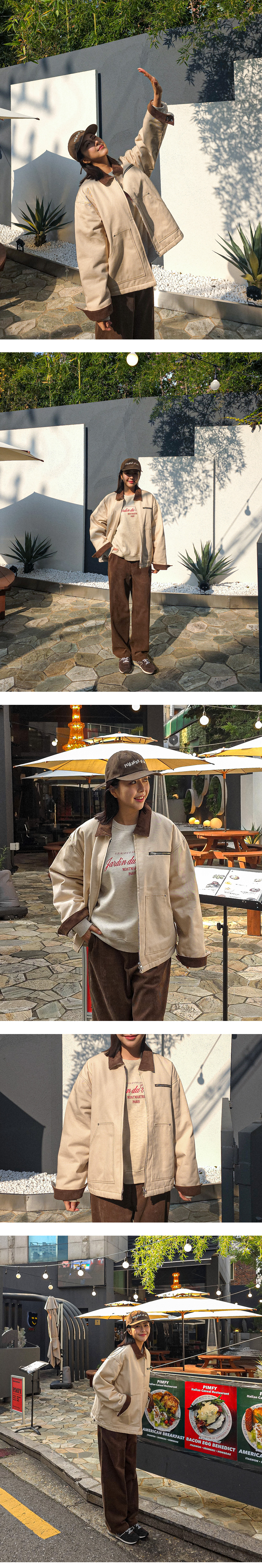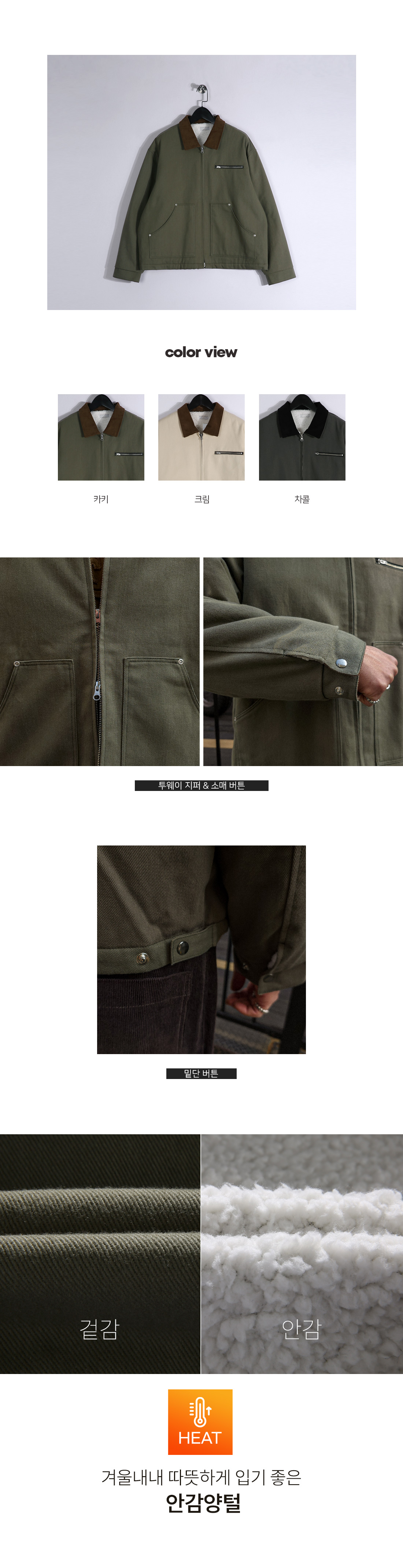 클래식한 무드가 느껴지는 양털 워크 자켓입니다. 크롭한 기장감에 후면 절개 디테일을 더해 트렌디하면서도 유니크한 실루엣을 완성했습니다. 소매와 밑단의 버튼 디테일로 취향에 맞게 핏 조절이 가능하며, 프론트와 양 사이드 포켓을 더해 실용성을 높였습니다. 카라와 소매 안쪽에 코듀로이 배색 원단을 사용해 감각적인 포인트를 더했고, 전체 양털 안감으로 보온성을 강화해 겨울 내내 따뜻하게 착용할 수 있습니다. SIZE FREE 모델착용 [남자모델]색상 : 카키 / 사이즈 : FREE [여자모델]색상 : 크림 / 사이즈 : FREE ![]() ![]() ![]() ![]() ![]() ![]() ![]() ![]() ![]()