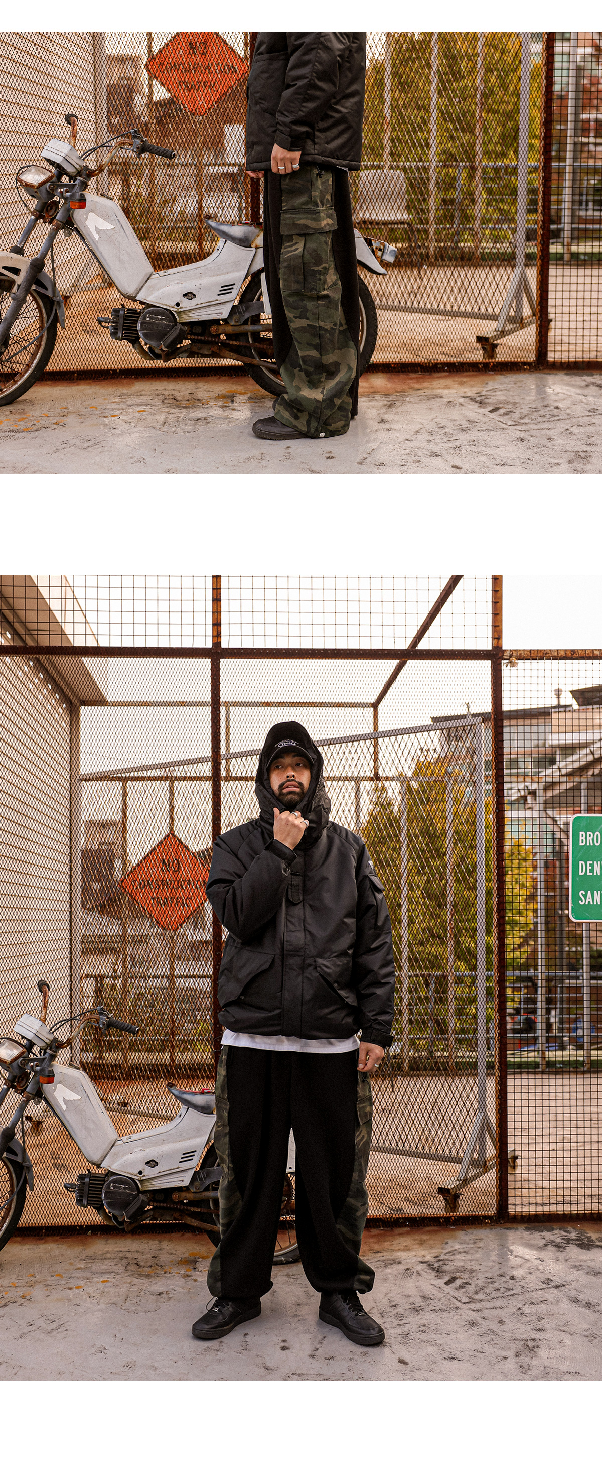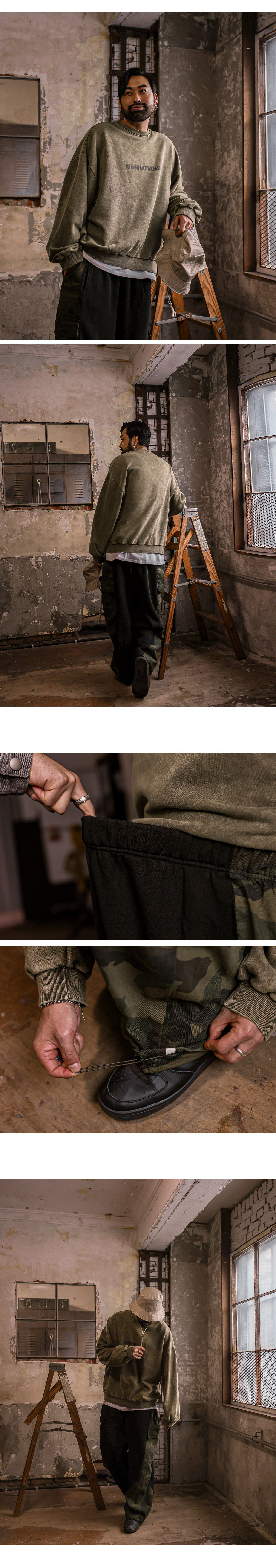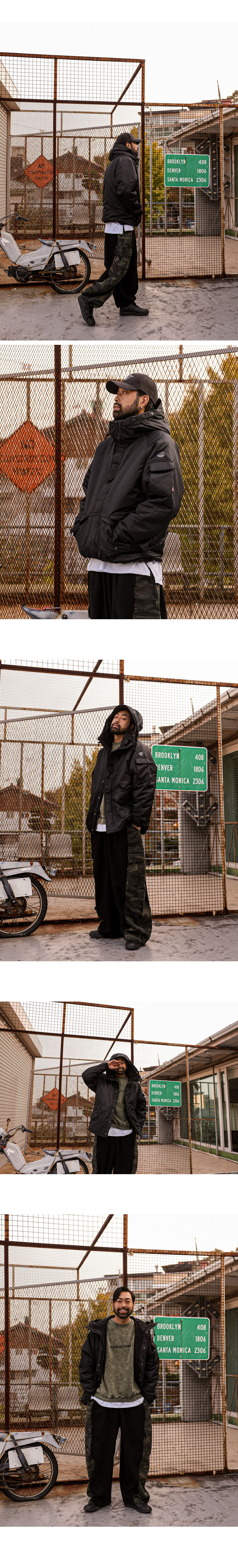 빈티지한 무드가 돋보이는 카모 배색 벌룬 팬츠입니다. 자연스럽게 퍼지는 벌룬 실루엣에 빈티지한 카모 패턴을 더해 스트릿하고 감각적인 분위기를 연출합니다. 허리 전체 밴딩과 내부 스트링 디테일로 사이즈 조절이 용이하며, 밑단 스트링으로 취향에 따라 실루엣 변형이 가능합니다. 두 가지 원단의 배색 구성으로 유니크한 포인트를 더했으며, 양 사이드 포켓과 카고 포켓 디테일로 실용성까지 갖춘 아이템입니다. SIZE FREE 모델착용 [KIHOON]색상 : 블랙 / 사이즈 : FREE