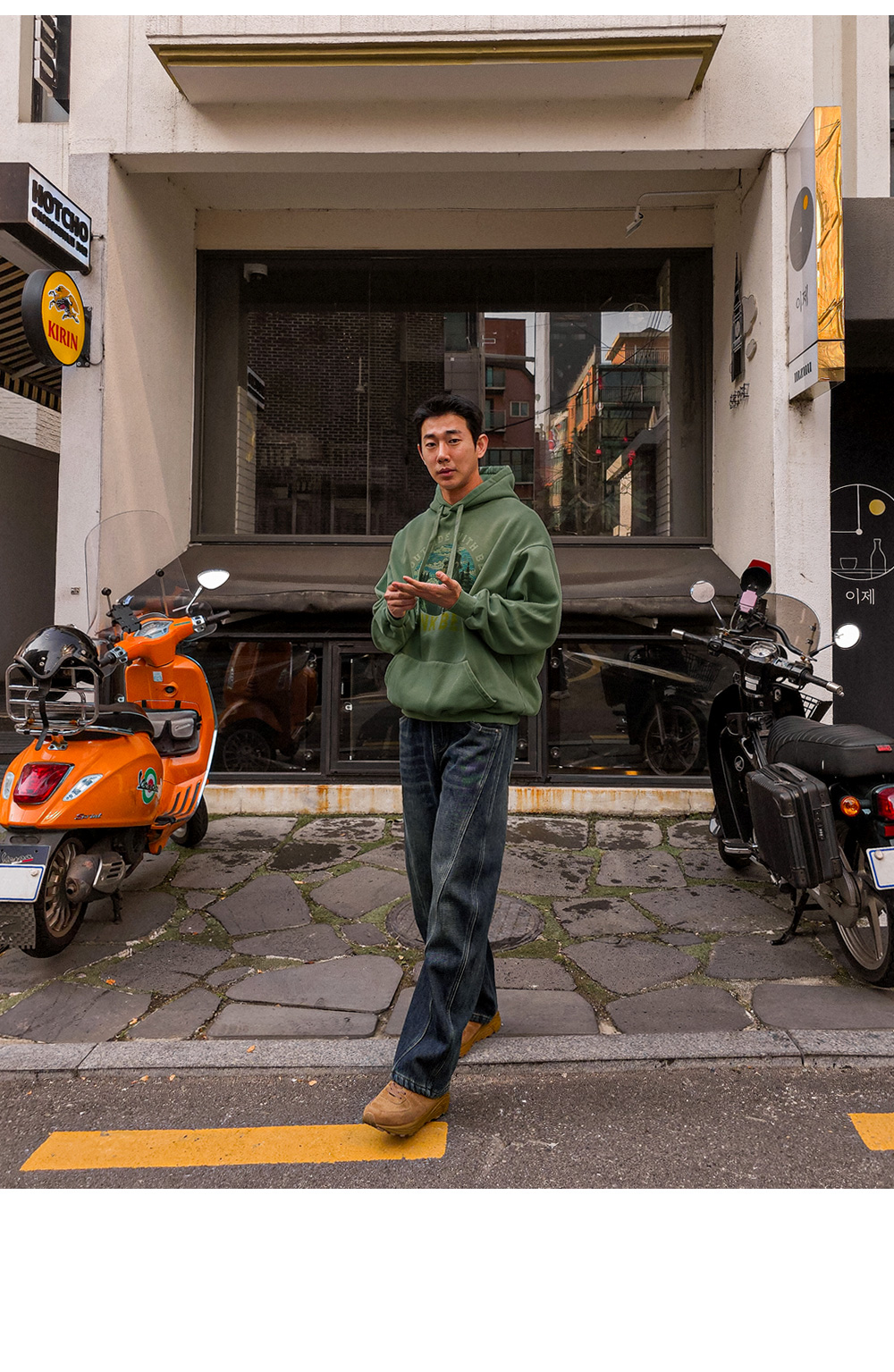 트렌디한 무드가 돋보이는 기모 후드티입니다.