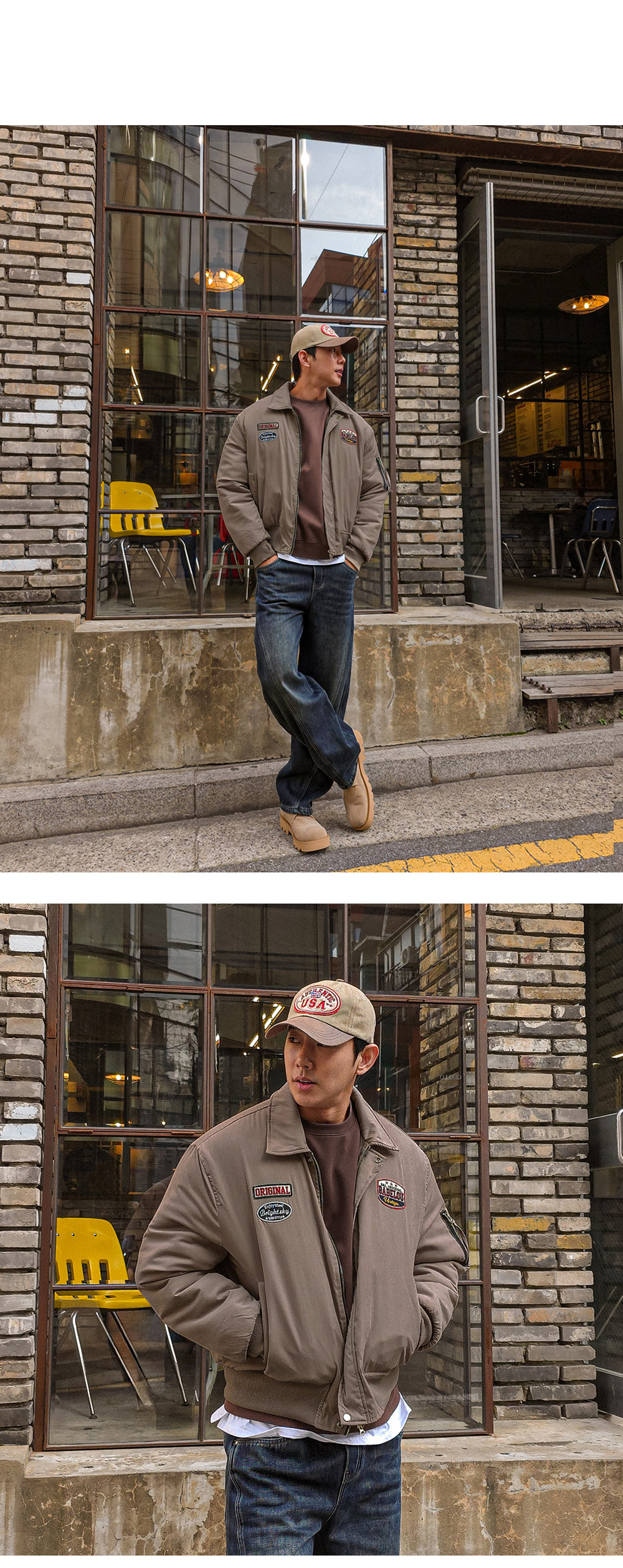 배색 디자인에 전면 자수 패치 디테일이 추가되어