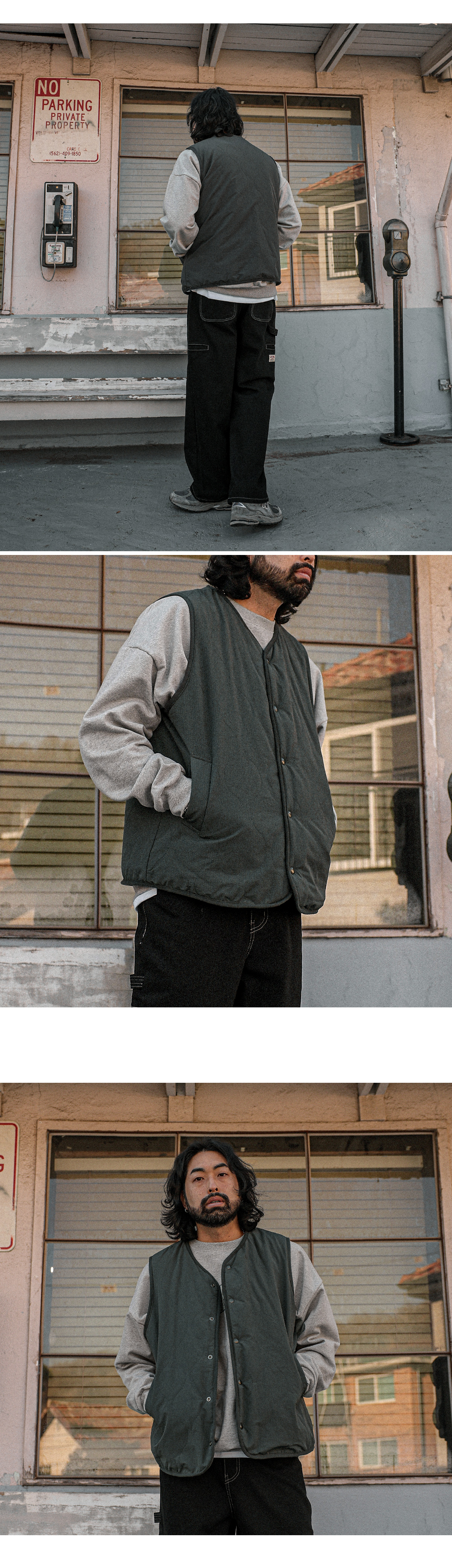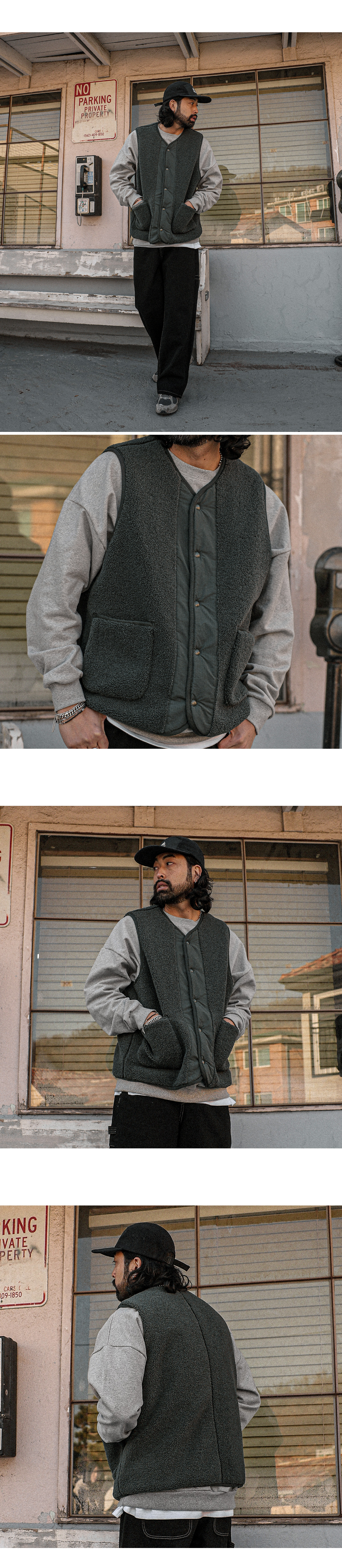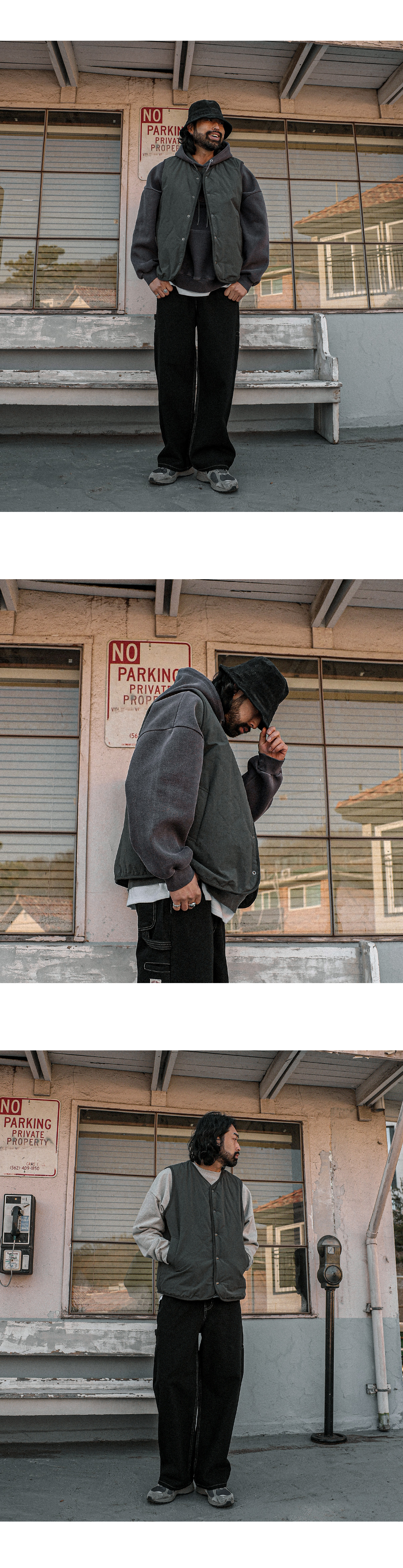 MD COMMENT 활용도가 좋은 리버시블 조끼입니다. 여름을 제외한 나머지 계절 내내 착용하기 좋은 두께감은 물론 리버시블 디자인으로 제작되어 하나쯤 소장하여 아우터 혹은 이너 아이템으로 활용하기 좋아 고객님들께 추천드리며 맨투맨, 후드티, 니트 등 다양한 상의 위에 매치하여 데일리룩, 캐주얼룩, 꾸안꾸룩 등 여러 연출이 가능하고 핏 또한 루즈핏으로 여유있는 착용감을 느끼실 수 있습니다. SIZE XL-2XL 모델착용 [KIHOON]색상 : 차콜 / 사이즈 : XL-2XL