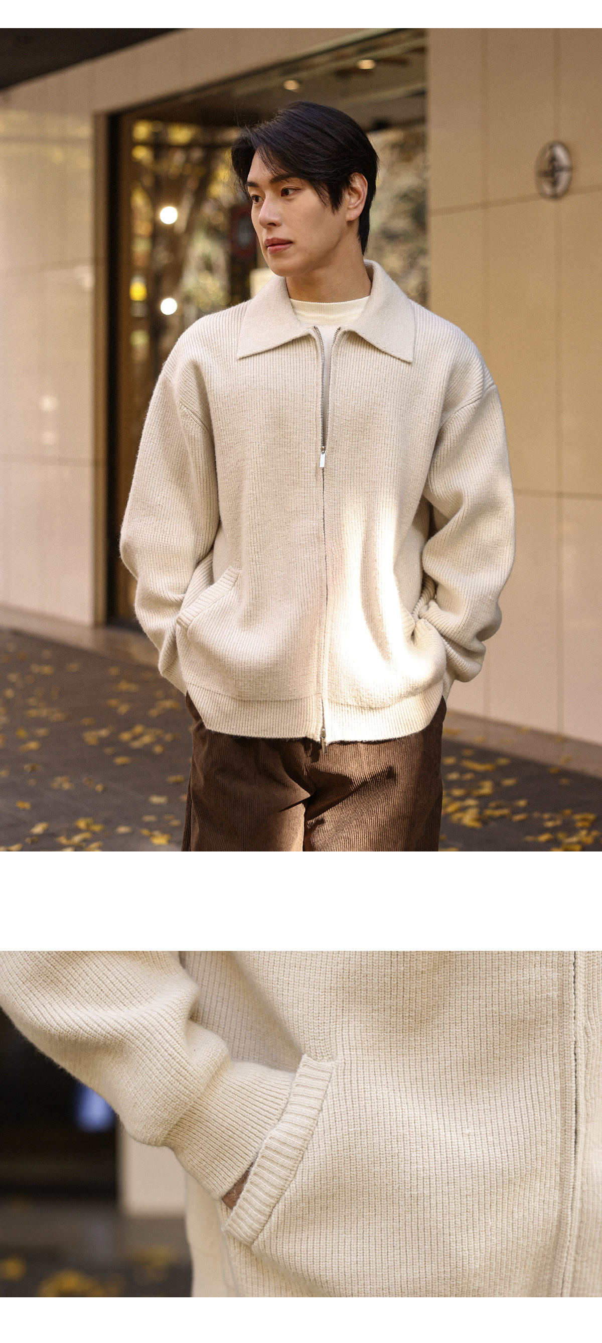 한겨울에는 이너로 착용 가능한 니트 집업입니다.