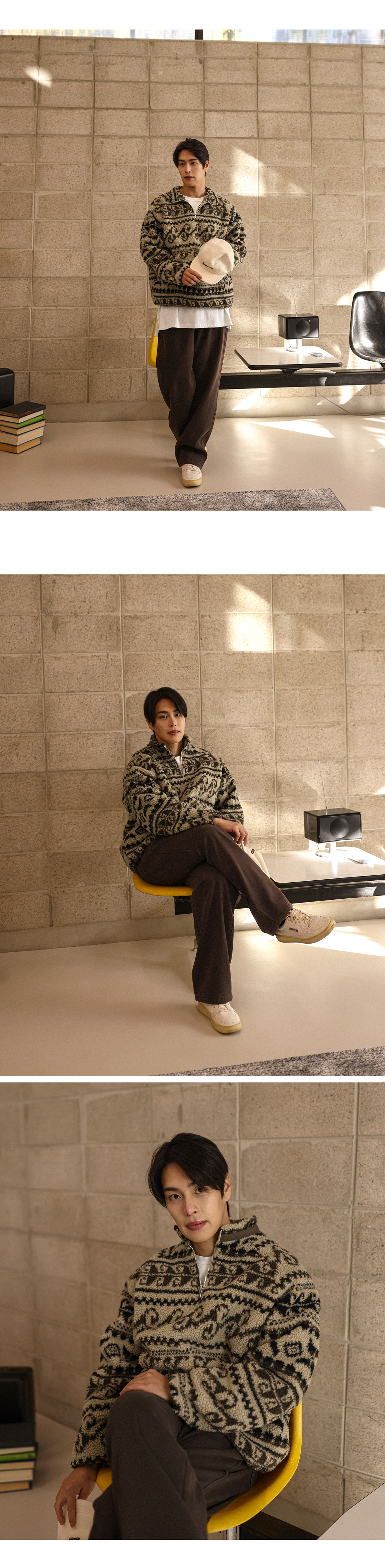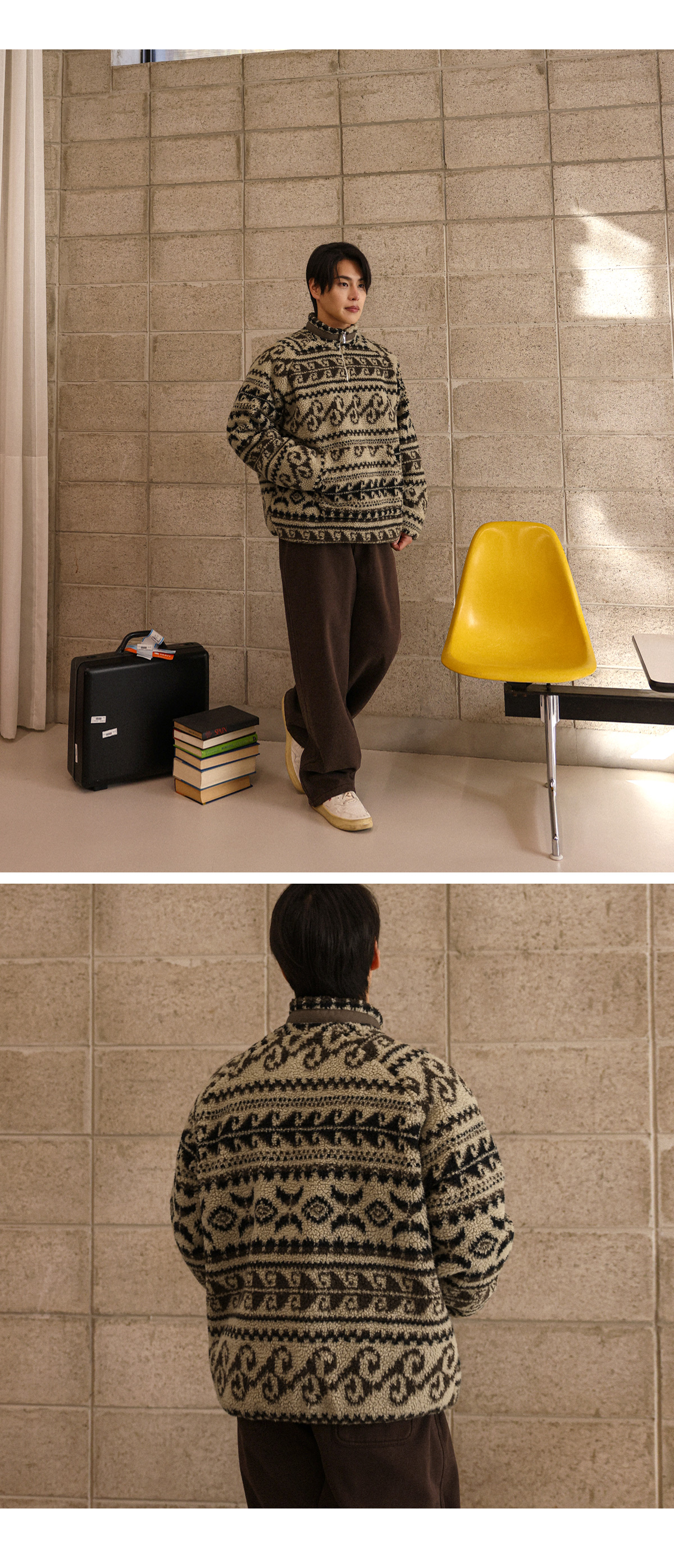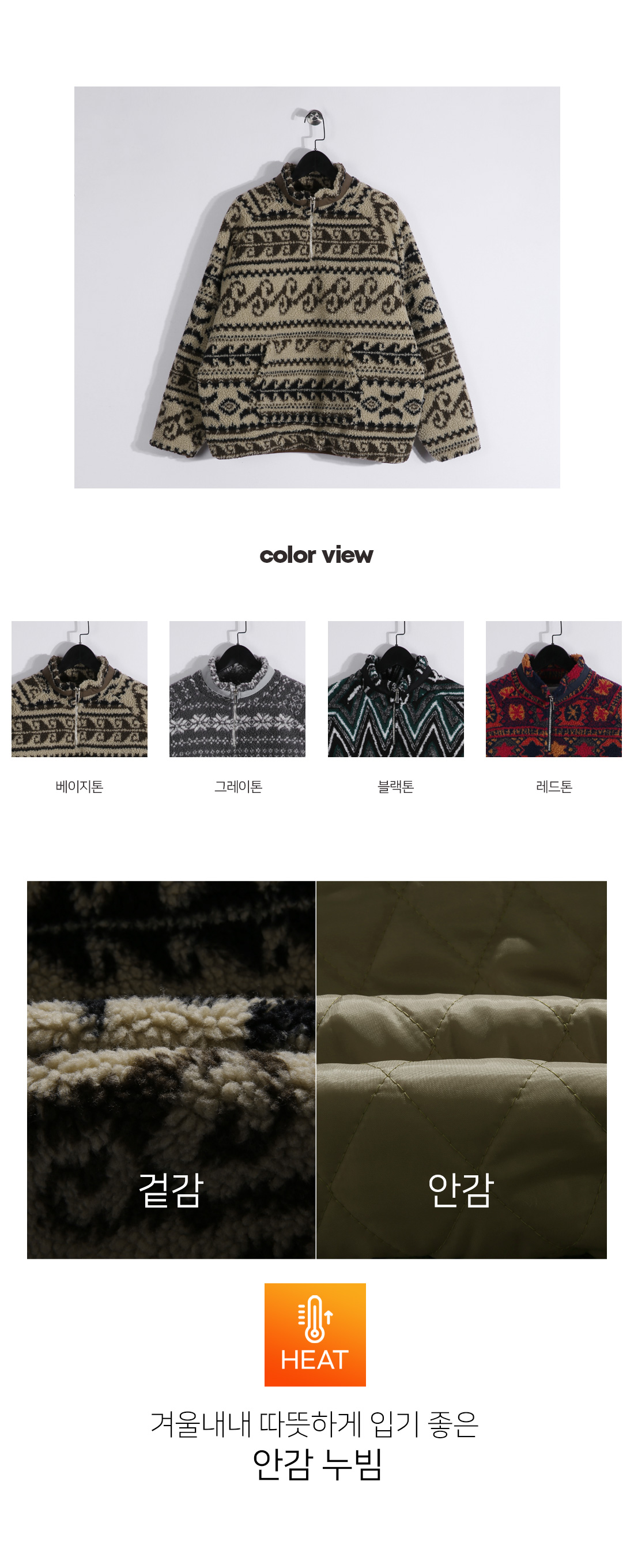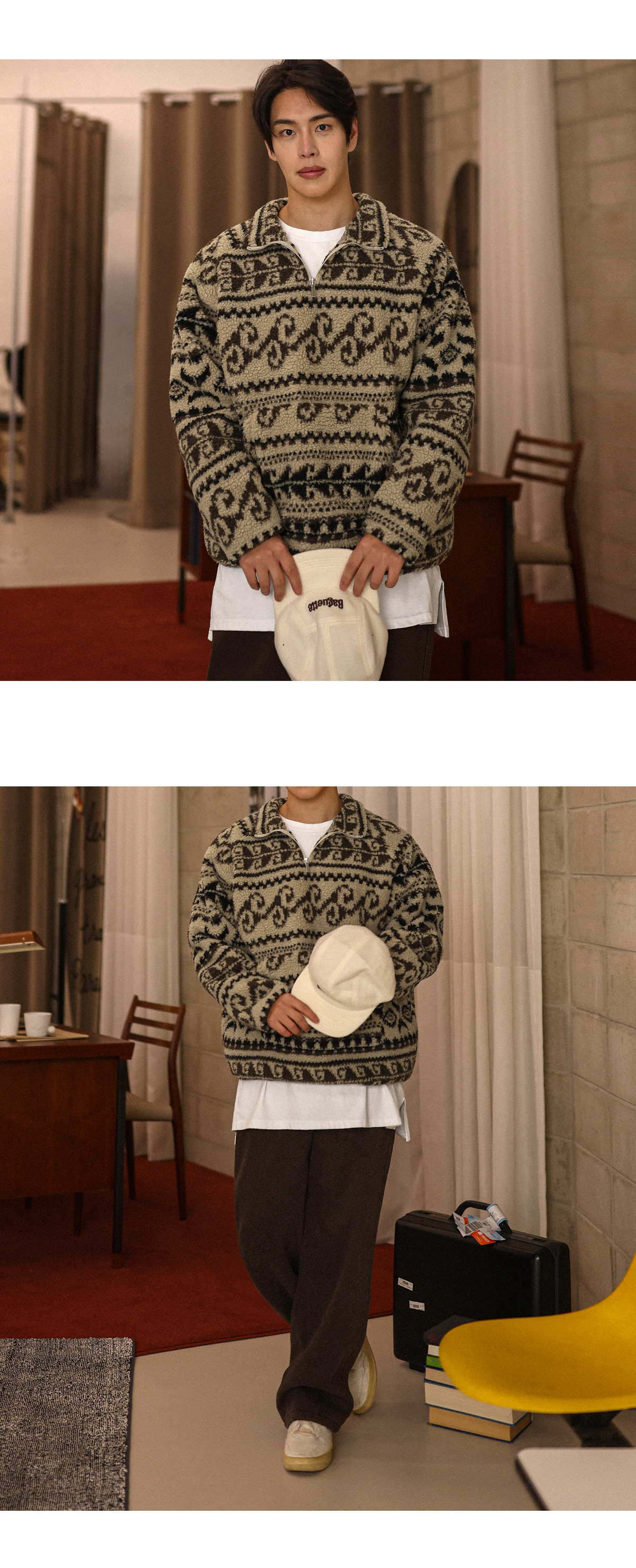 유니크한 레트로 무드를 완성해줄 반집업 아노락입니다. 보온성이 뛰어난 뽀글이 원사와 3온스 충전재를 사용해 겨울 시즌에도 따뜻하게 착용할 수 있습니다. 노르딕 패턴을 재해석한 트렌디한 그래픽으로 멋을 더했으며 프론트 지퍼 디테일로 취향에 따라 다양한 스타일 연출이 가능합니다. 캐주얼, 스트릿 등 다양한 무드에 자연스럽게 매치되어 소장 가치 높은 아이템으로 추천드립니다. SIZE FREE 모델착용 [YOOJUN]색상 : 베이지톤 / 사이즈 : FREE ![]() ![]() ![]() ![]() ![]() ![]() ![]() ![]() ![]()