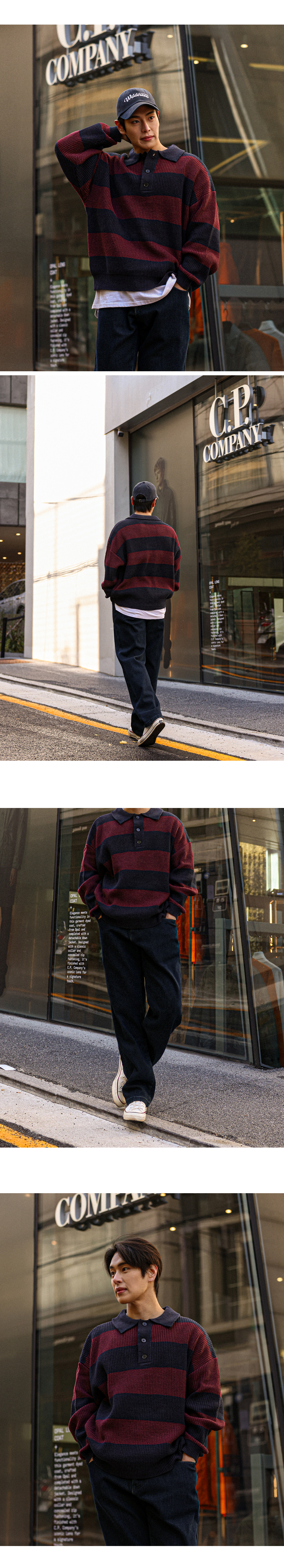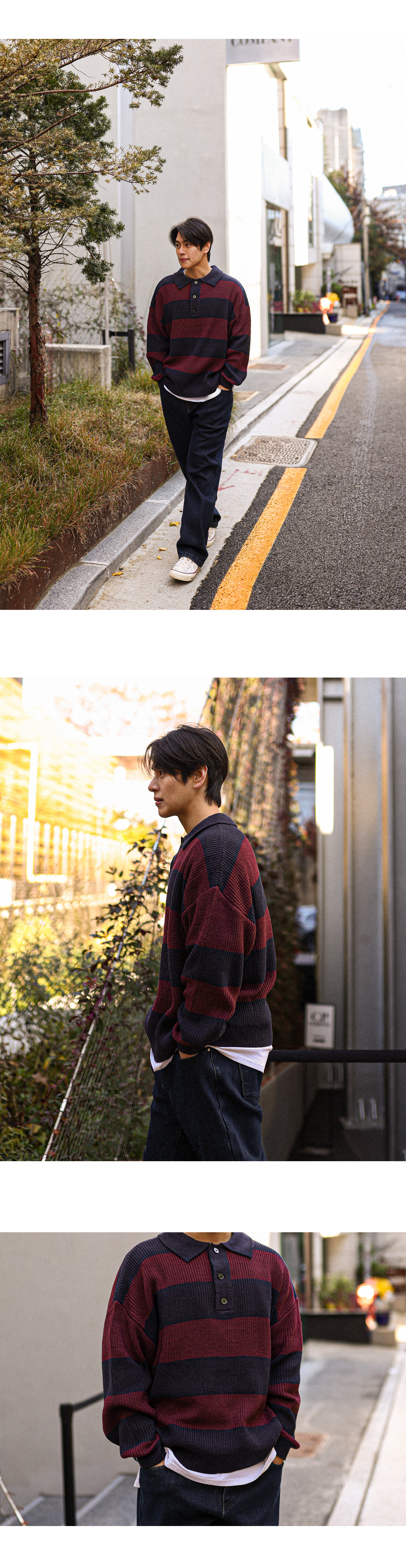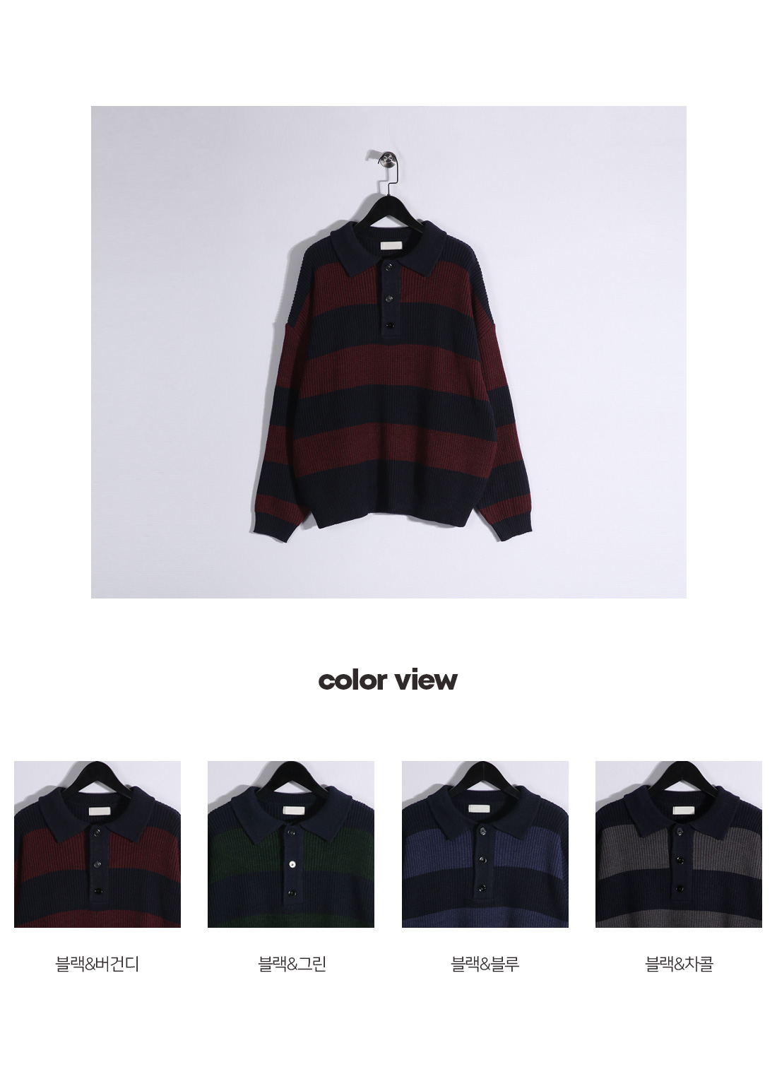 캐주얼하면서도 세련된 스트라이프 패턴의 카라넥 니트입니다. 단정한 카라와 버튼디테일을 추가해 데일리는 물론, 트렌디한 스타일링까지 활용하기 좋습니다. 세미 오버핏으로 다양한 체형에 부담 없이 착용 가능하며, 베이직한 컬러 조합으로 여러 하의와 손쉽게 매치할 수 있습니다. SIZE FREE 모델착용 [YOOJUN]색상 : 블랙&버건디 / 사이즈 : FREE ![]() ![]() ![]() ![]() ![]() ![]() ![]() ![]()