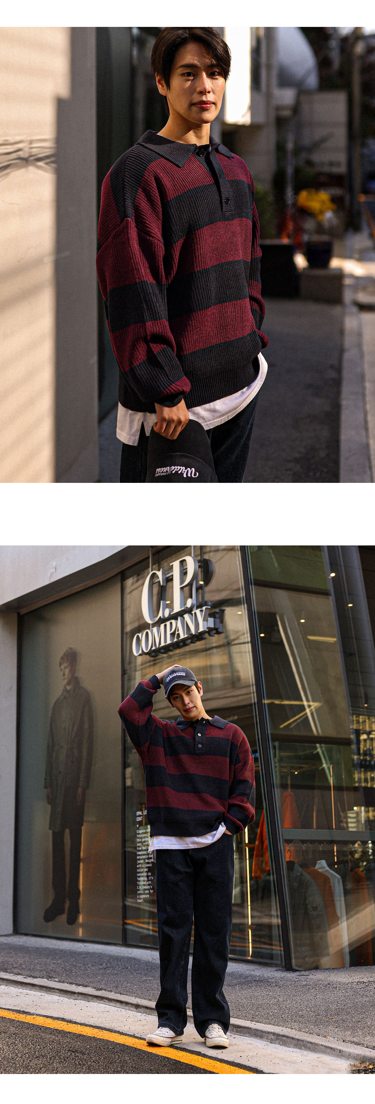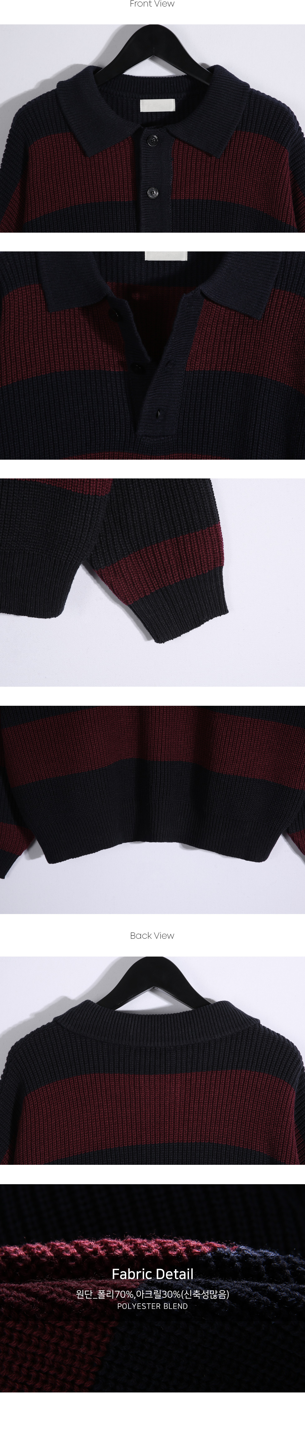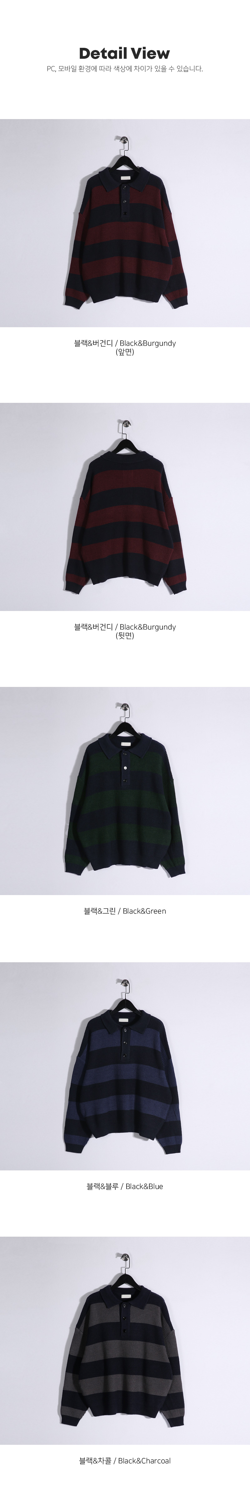 캐주얼하면서도 세련된 스트라이프 패턴의 카라넥 니트입니다. 단정한 카라와 버튼디테일을 추가해 데일리는 물론, 트렌디한 스타일링까지 활용하기 좋습니다. 세미 오버핏으로 다양한 체형에 부담 없이 착용 가능하며, 베이직한 컬러 조합으로 여러 하의와 손쉽게 매치할 수 있습니다. SIZE FREE 모델착용 [YOOJUN]색상 : 블랙&버건디 / 사이즈 : FREE ![]() ![]() ![]() ![]() ![]() ![]() ![]() ![]()