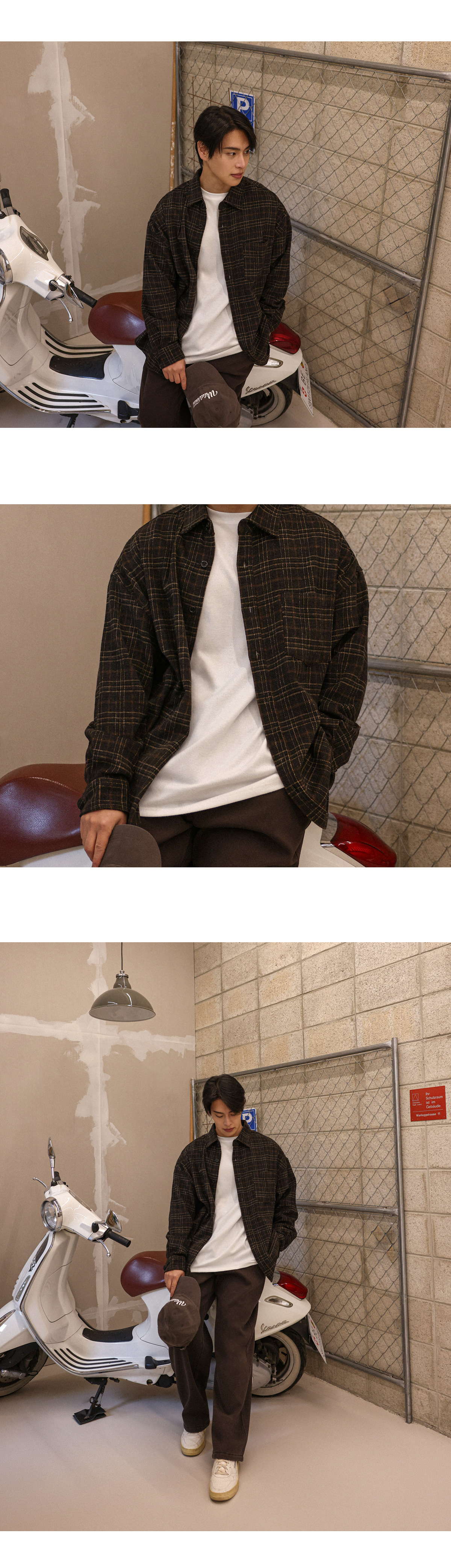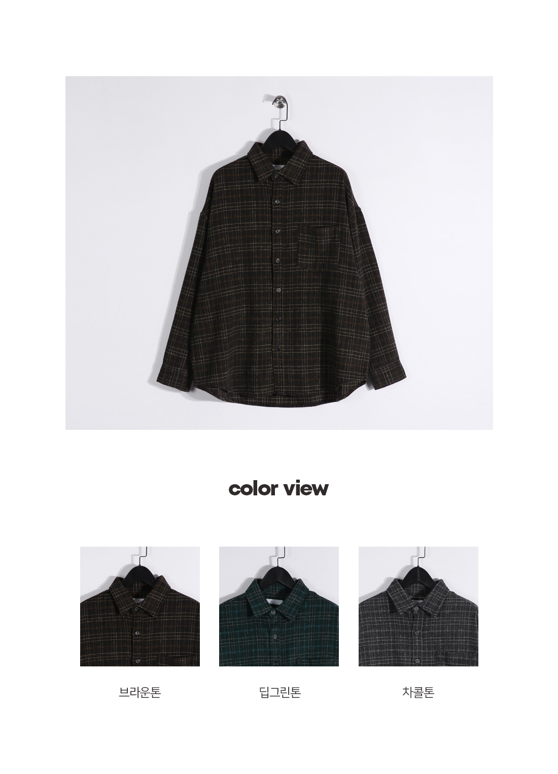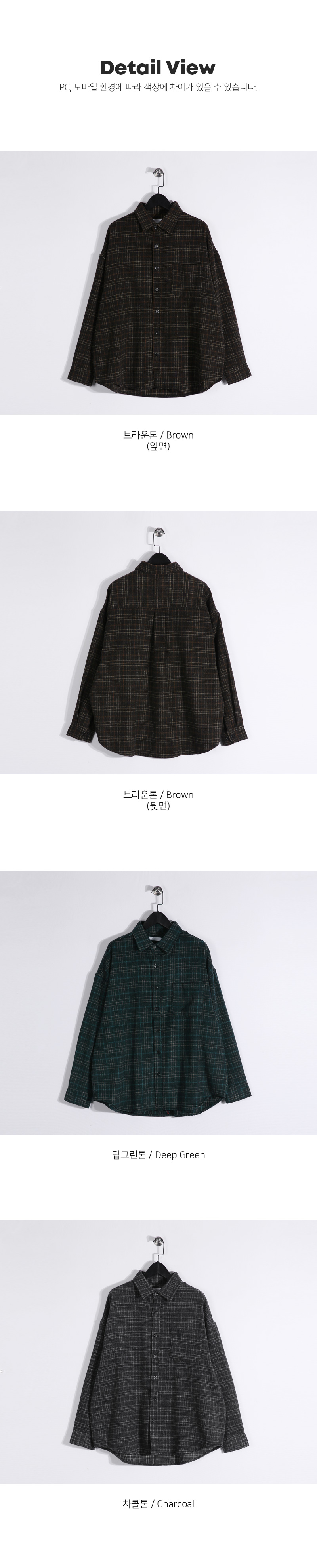 빈티지한 무드를 가득 담아낸 울 체크 셔츠입니다. 감각적인 체크 패턴에 울 혼방 소재의 조합으로 따뜻하면서도 부드러운 터치감을 느끼실 수 있습니다. 여유로운 실루엣과 자연스럽게 떨어지는 드롭 숄더 라인으로 편안한 활동성을 자랑하며, 프론트 포켓 디테일을 더해 수납력을 높여주었습니다. 단독으로는 물론, 아우터, 이너 등 다양한 룩에 부담 없이 착용 가능한 셔츠를 경험해보시길 바랍니다. SIZE FREE 모델착용 [YOOJUN]색상 : 브라운톤 / 사이즈 : FREE ![]() ![]() ![]() ![]() ![]() ![]() ![]() ![]()