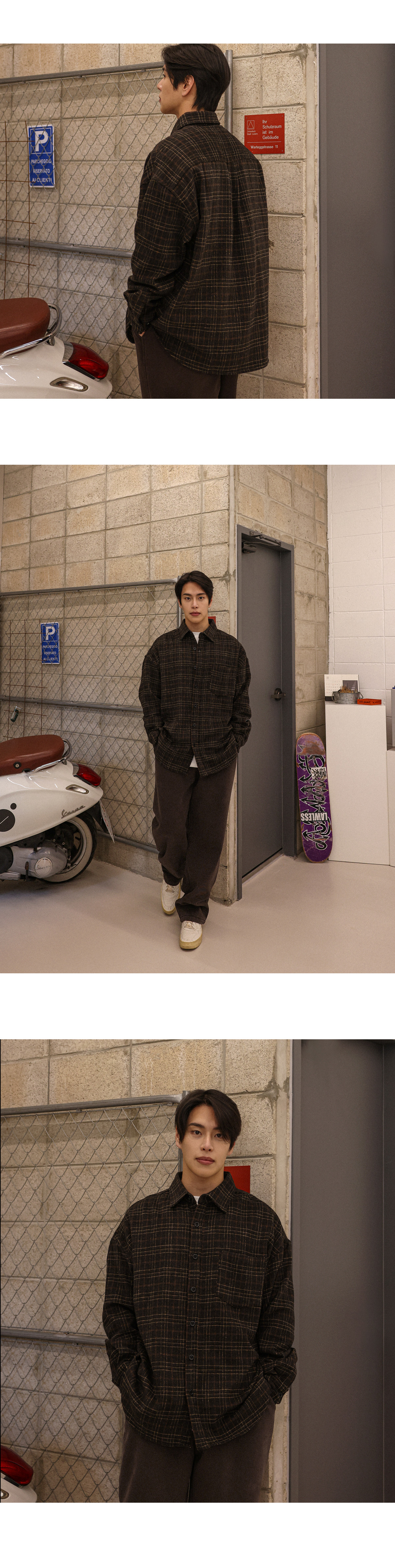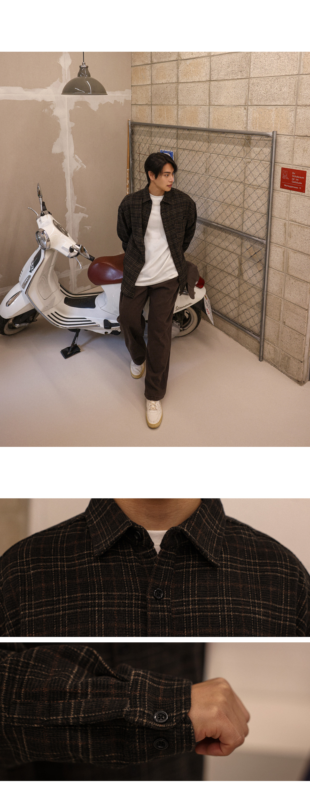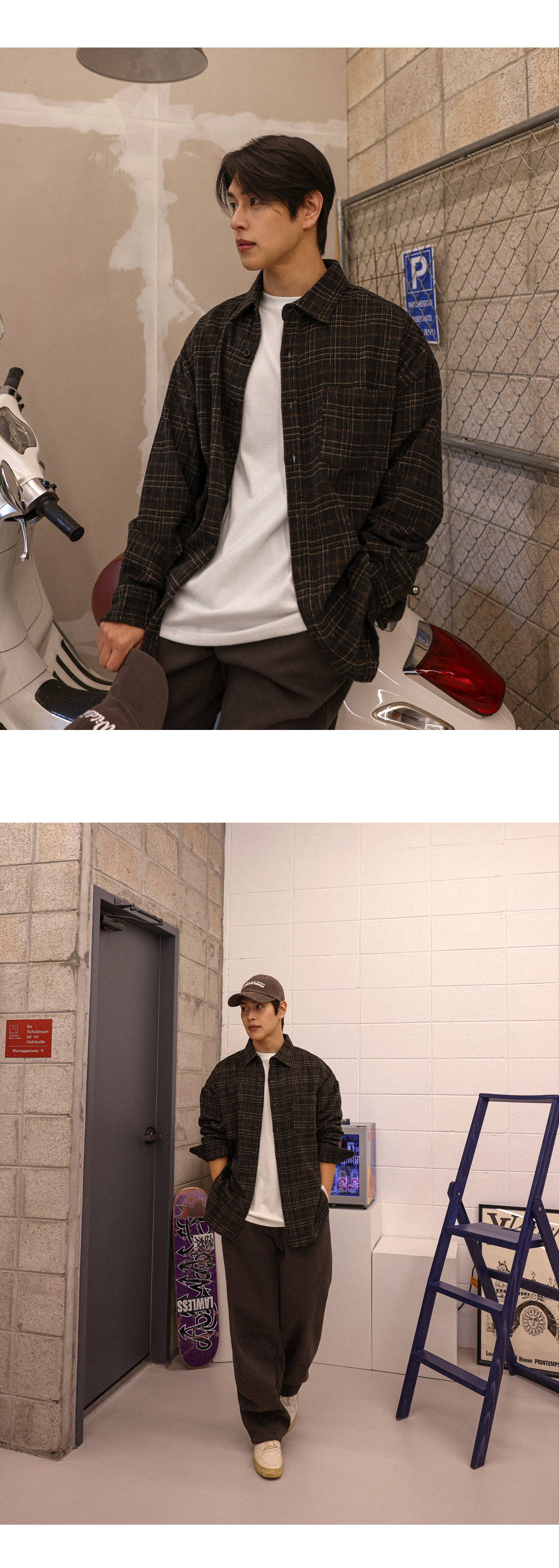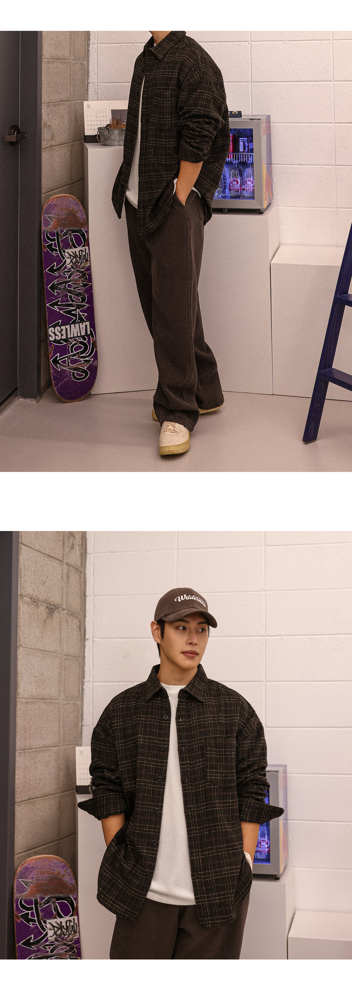 빈티지한 무드를 가득 담아낸 울 체크 셔츠입니다. 감각적인 체크 패턴에 울 혼방 소재의 조합으로 따뜻하면서도 부드러운 터치감을 느끼실 수 있습니다. 여유로운 실루엣과 자연스럽게 떨어지는 드롭 숄더 라인으로 편안한 활동성을 자랑하며, 프론트 포켓 디테일을 더해 수납력을 높여주었습니다. 단독으로는 물론, 아우터, 이너 등 다양한 룩에 부담 없이 착용 가능한 셔츠를 경험해보시길 바랍니다. SIZE FREE 모델착용 [YOOJUN]색상 : 브라운톤 / 사이즈 : FREE ![]() ![]() ![]() ![]() ![]() ![]() ![]() ![]()