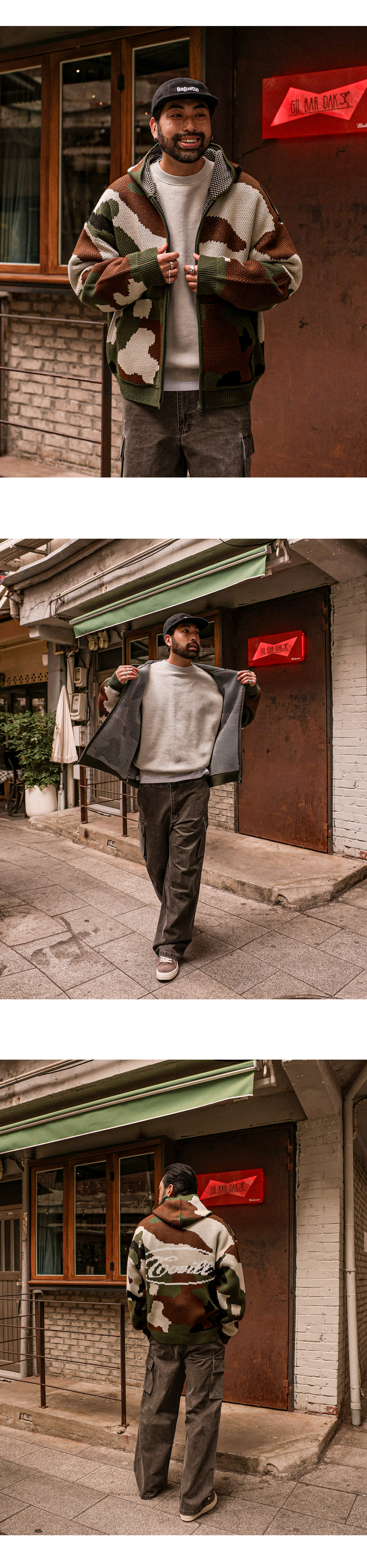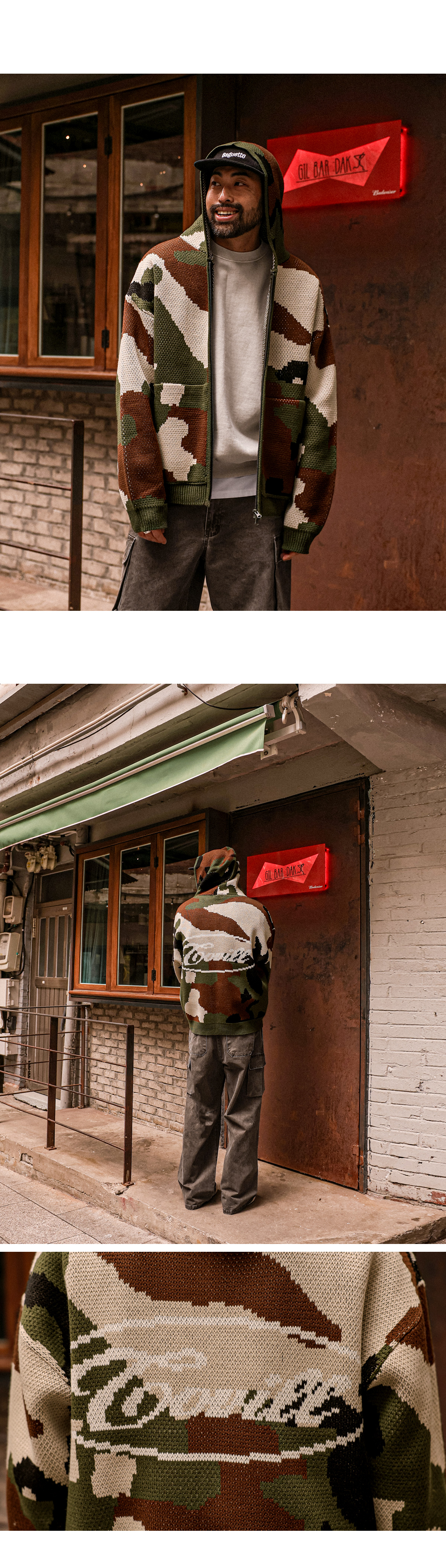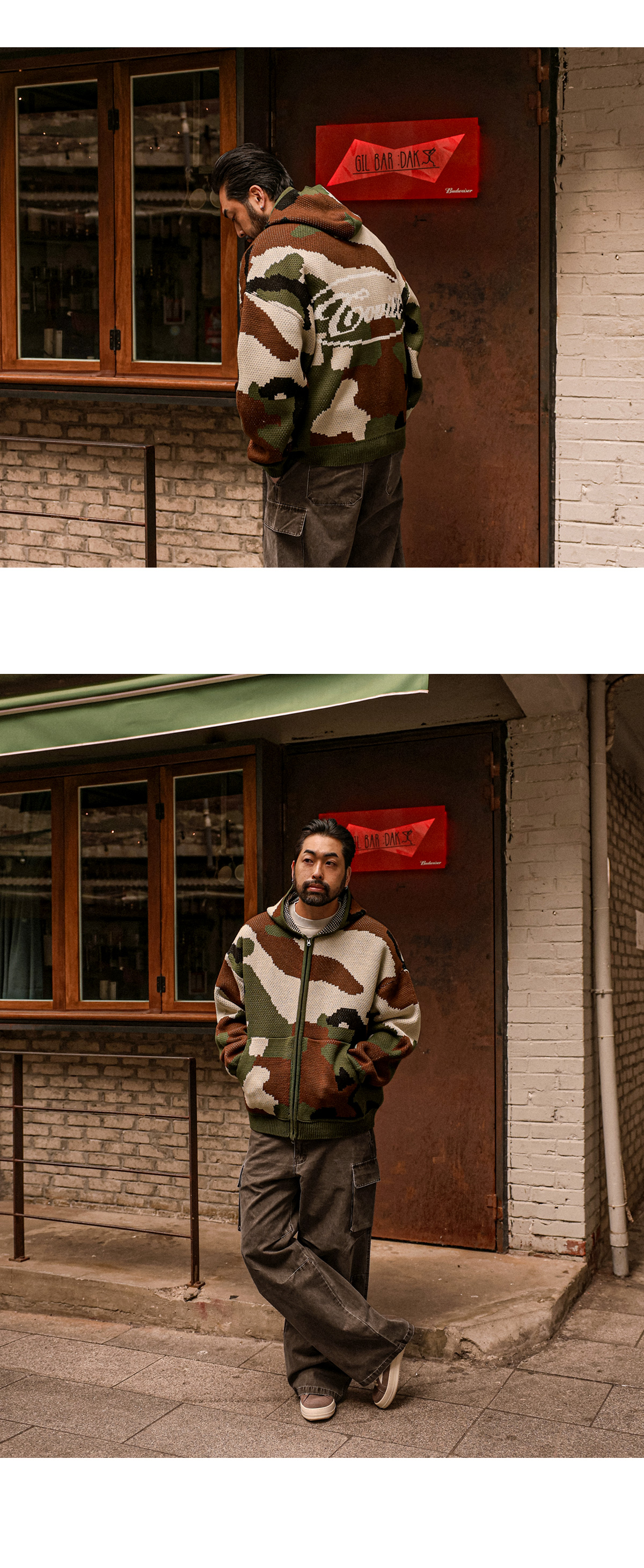 빈티지한 카모 패턴의 니트 원단으로 제작되었으며,