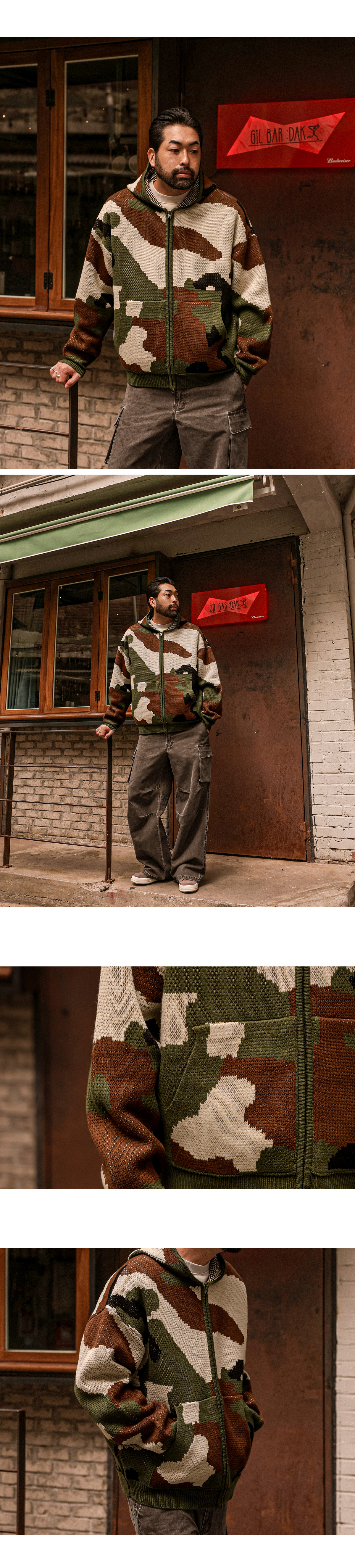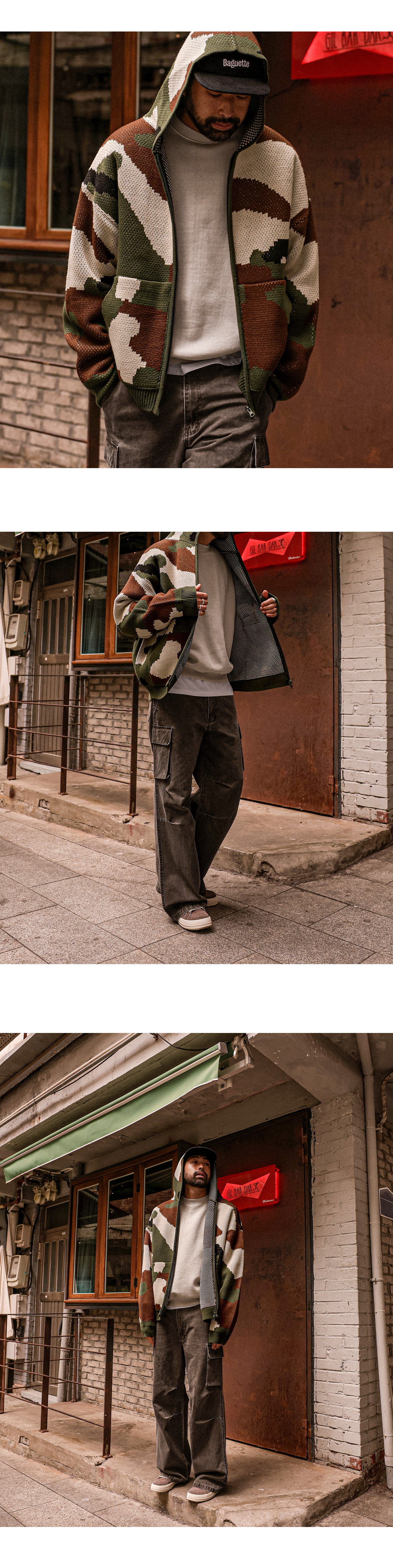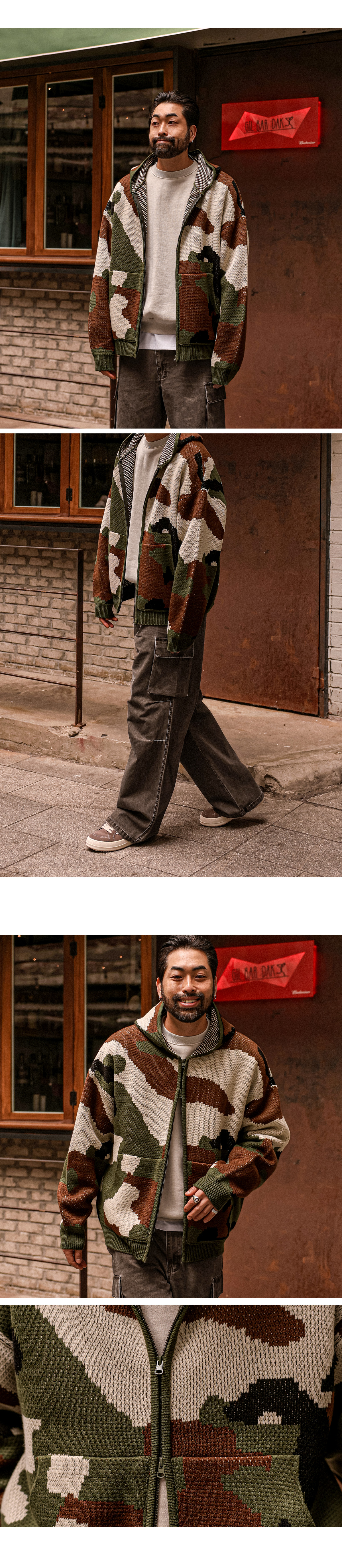 빈티지한 카모 패턴의 니트 원단으로 제작되었으며,