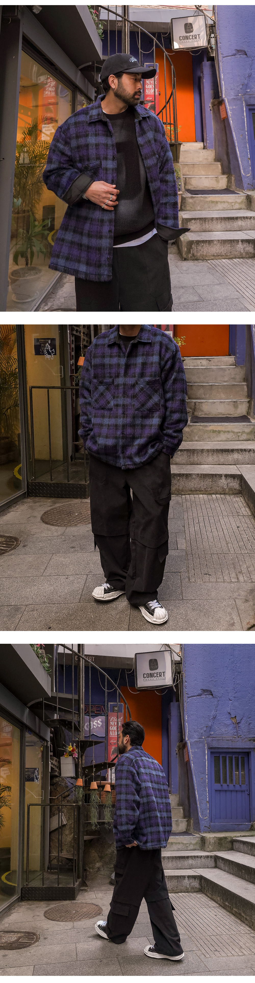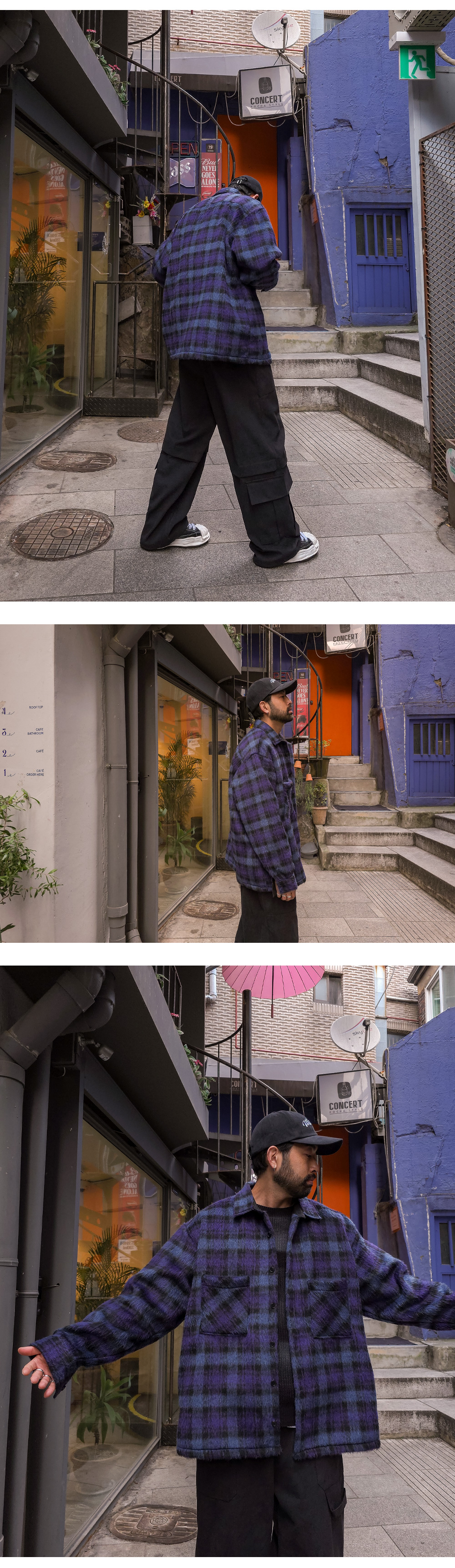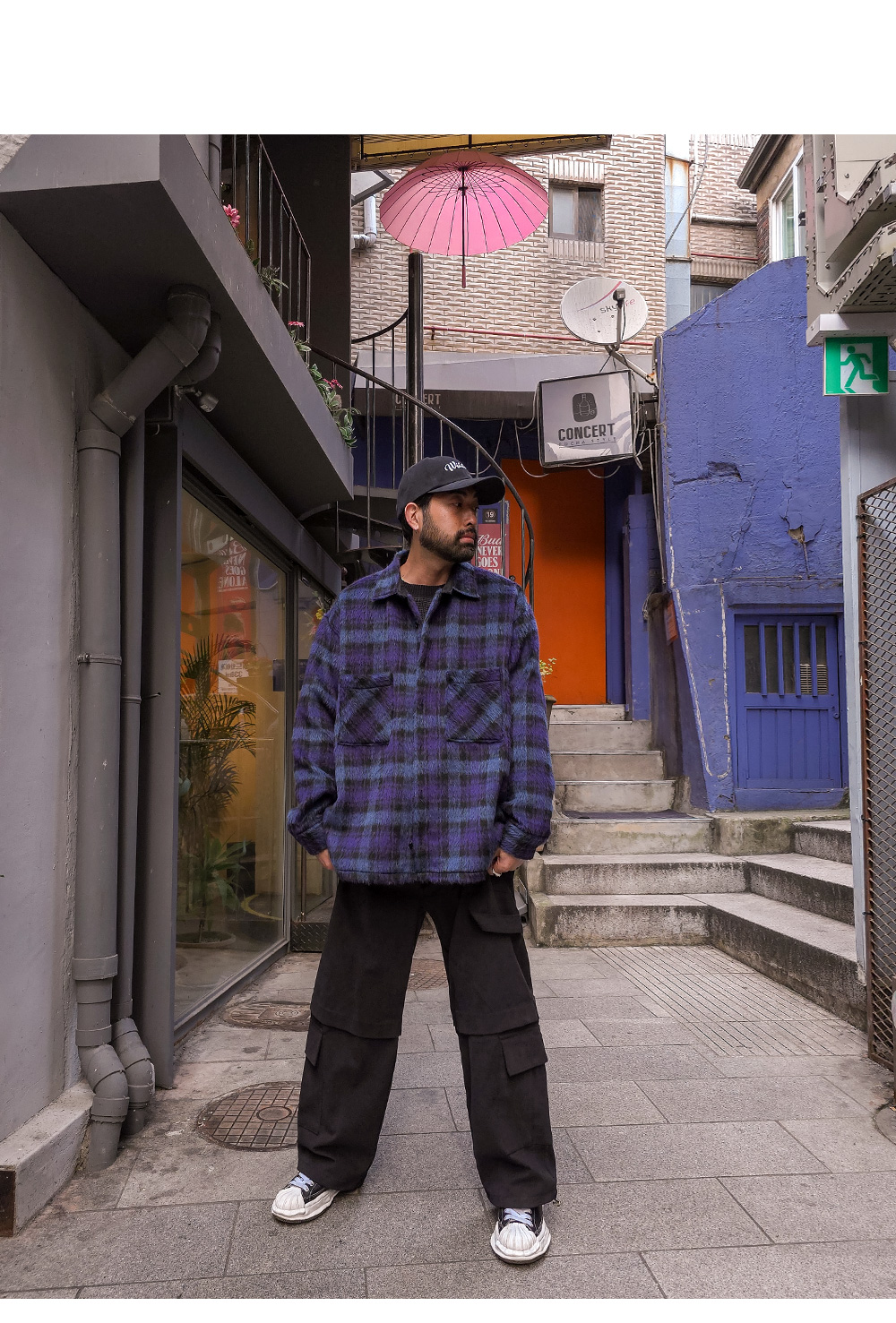 일상 속 어디서나 돋보이는 울 체크 셔츠 자켓입니다. 여유로운 오버핏으로 편안하게 몸을 감싸주어 활동성을 높였으며, 부드러운 울 혼방 소재로 피부에 자극 없이 착용할 수 있고, 보온성까지 갖춘 실용적인 아이템입니다. 체크 패턴 자체가 디자인 포인트 역할을 하며, 전면 투 포켓으로 실용적인 수납이 가능합니다. 단독으로도, 아우터로도 손색없는 데일리템으로 추천드립니다. SIZE FREE 모델착용 [KIHOON]색상 : 퍼플톤 / 사이즈 : FREE ![]() ![]() ![]() ![]() ![]() ![]() ![]() ![]() ![]()