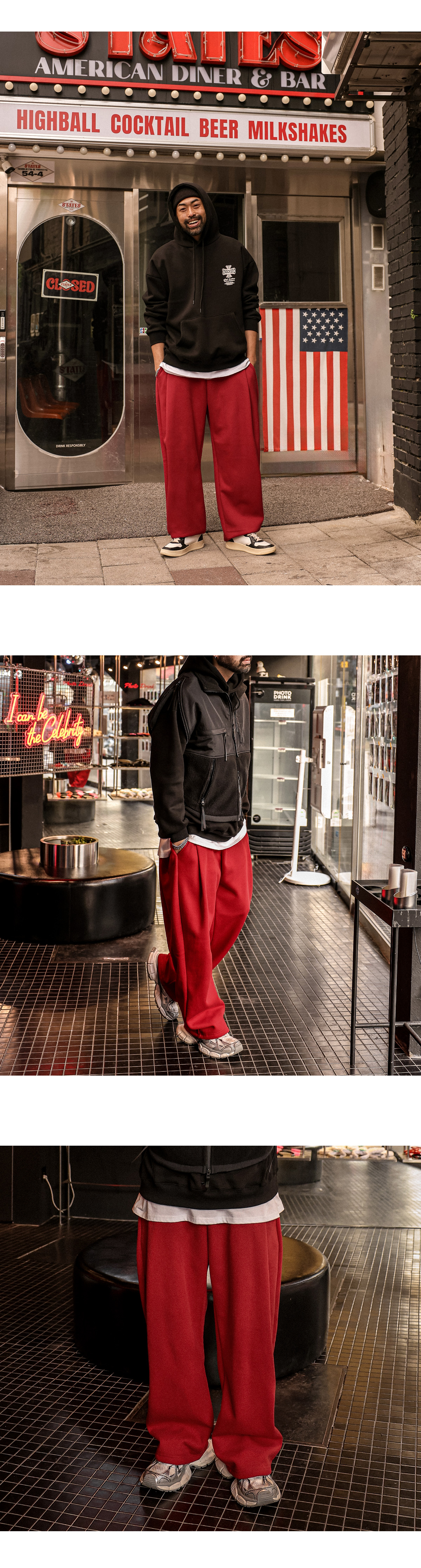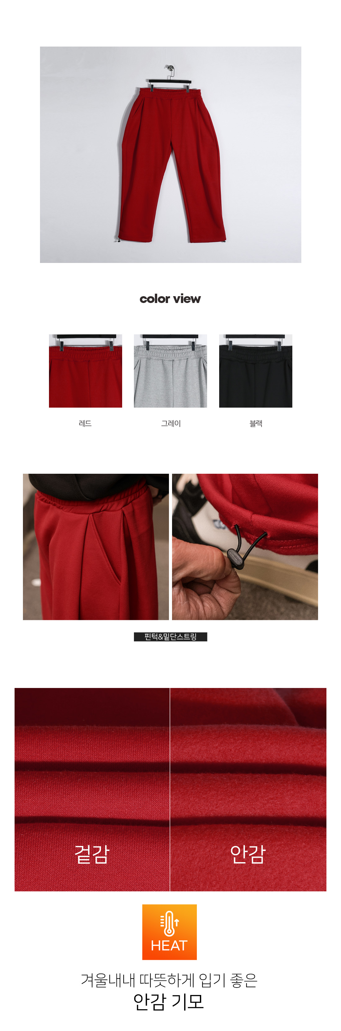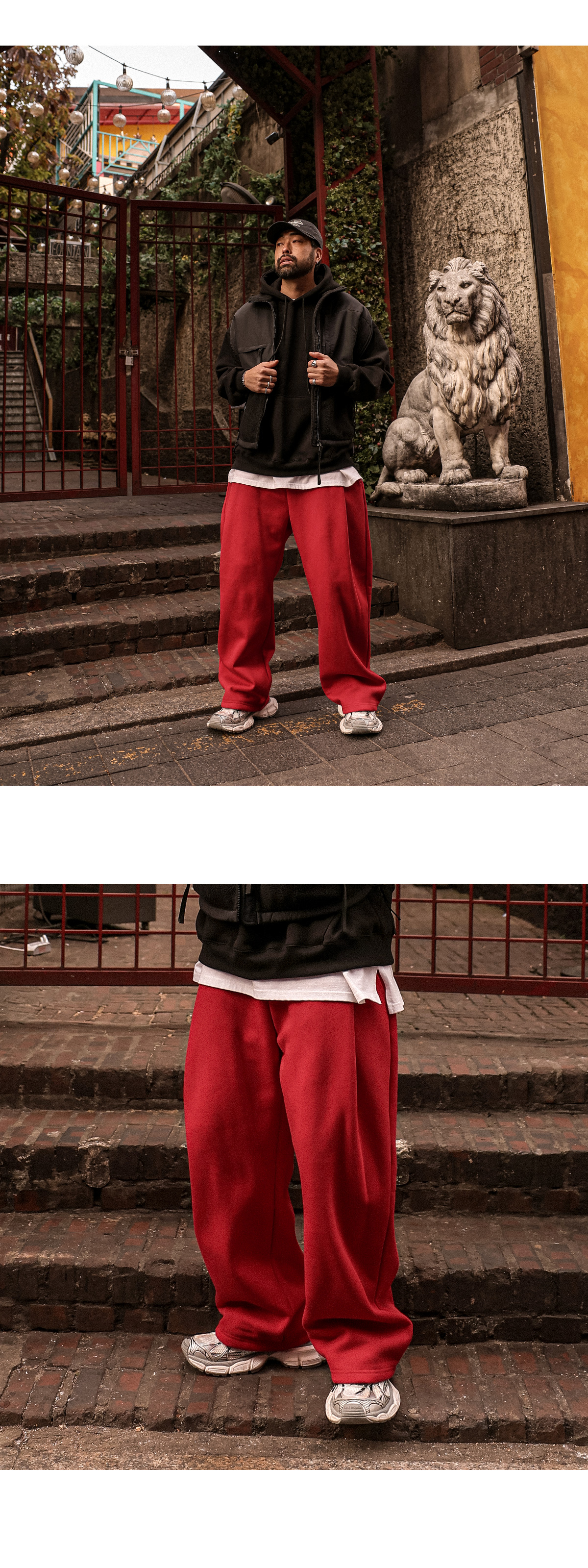 따뜻하면서도 스타일리시한 핀턱 팬츠입니다. 탄탄하고 변형이 적은 코튼 혼방 소재로 제작되어 내구성이 뛰어나며, 유연하게 늘어나는 신축성으로 장시간 착용에도 부담 없는 편안함을 유지해줍니다. 자연스럽게 떨어지는 곡선 라인의 세미와이드 핏과 원 핀턱으로 볼륨감 있는 실루엣을 연출해줍니다. 심플하면서도 유니크한 디자인에 기모 안감을 더해 겨울 내내 캐주얼룩, 스트릿룩, 데일리룩 등 다양한 스타일에 매치 해보시길 바랍니다. SIZE XL-3XL(3번),4XL-5XL(4번) 모델착용 [KIHOON]색상 : 레드 / 사이즈 : XL-3XL(3번)