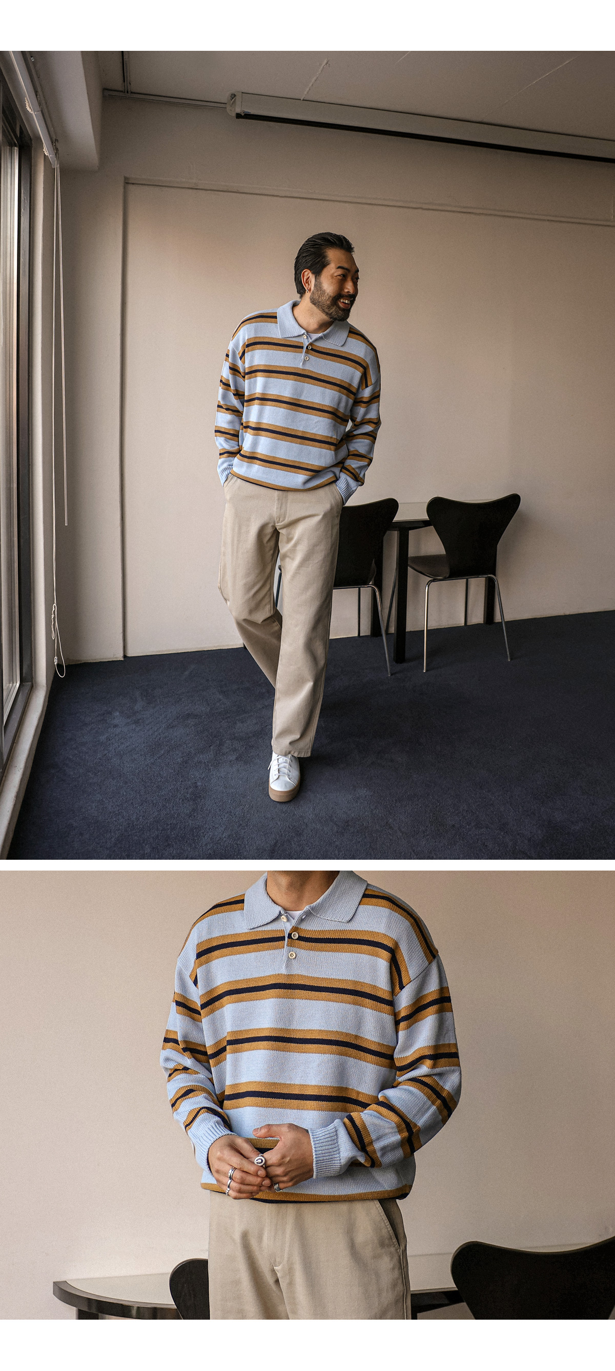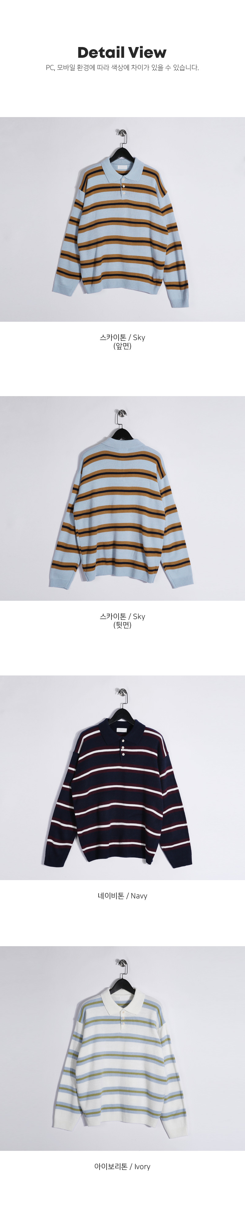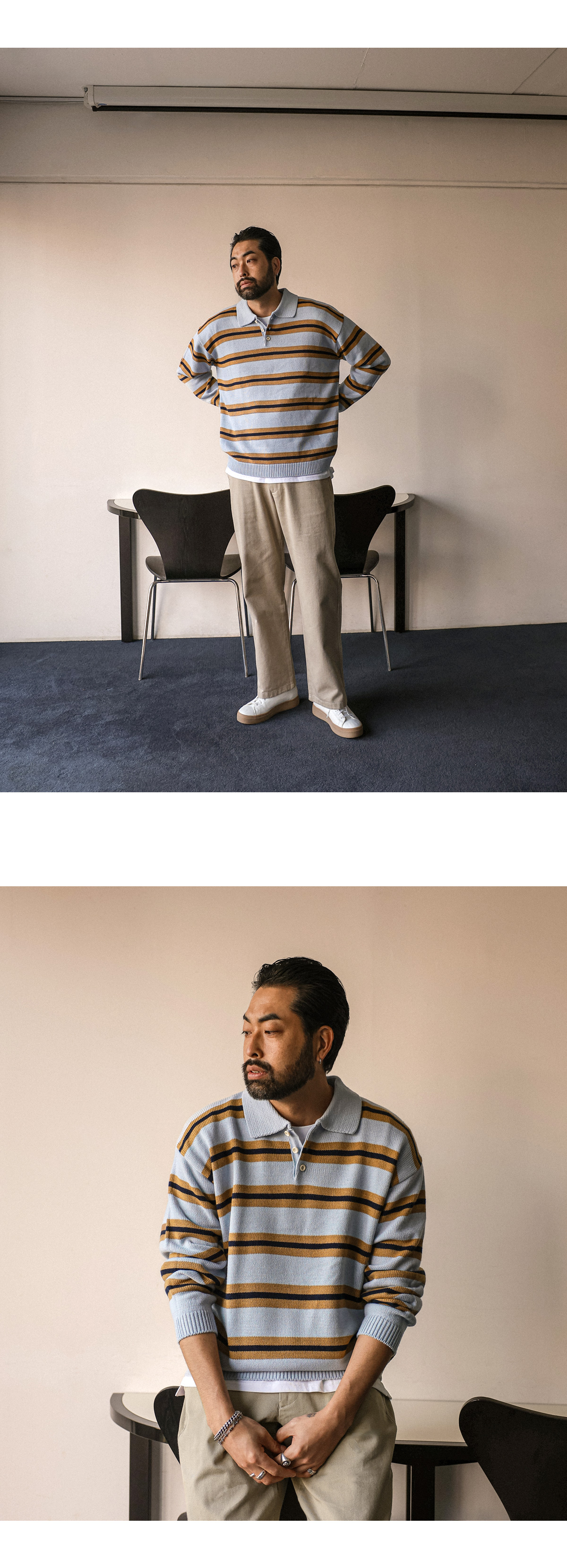 배색 컬러감이 매력적인 요소가 되어주는 카라 니트입니다. 정교하고 탄탄한 조직감에 스트라이프 패턴으로 컬러감 있는 유니크한 분위기를 연출해 줍니다. 넥 라인의 3 버튼 디테일과 몸에 흐르는 듯한 여유로운 실루엣으로 고급스러운 무드부터 캐주얼한 무드까지 폭넓게 즐기실 수 있습니다. SIZE FREE 모델착용 [KIHOON]색상 : 스카이톤 / 사이즈 : FREE ![]() ![]() ![]() ![]() ![]() ![]() ![]() ![]()
