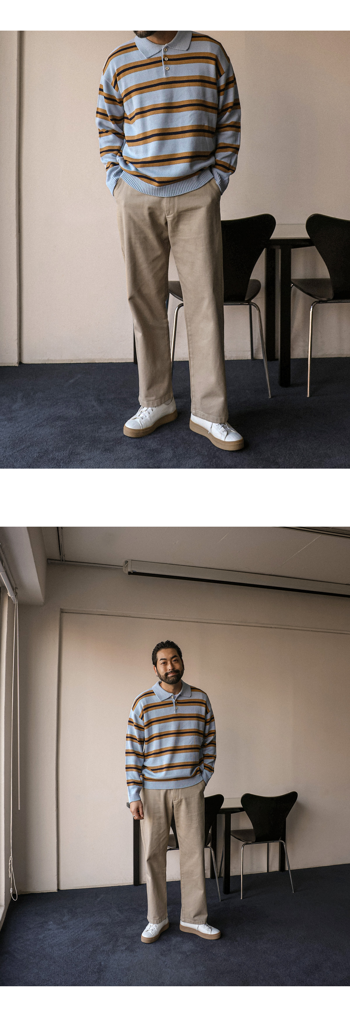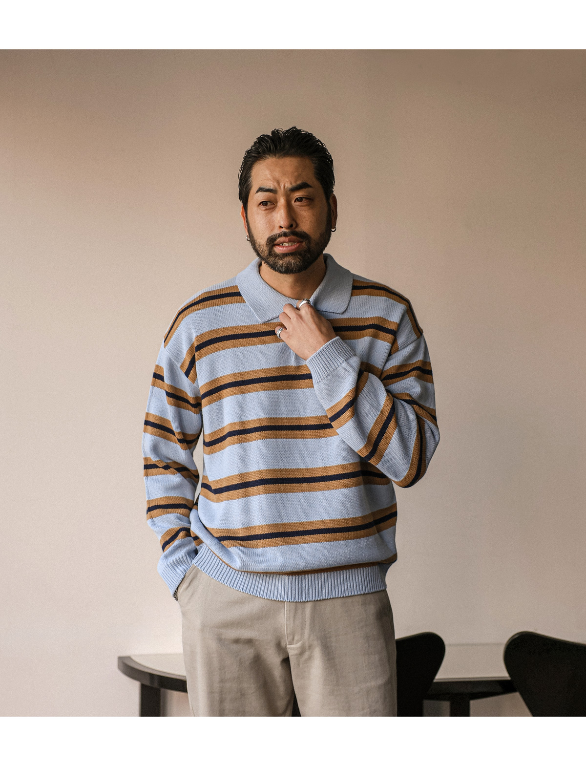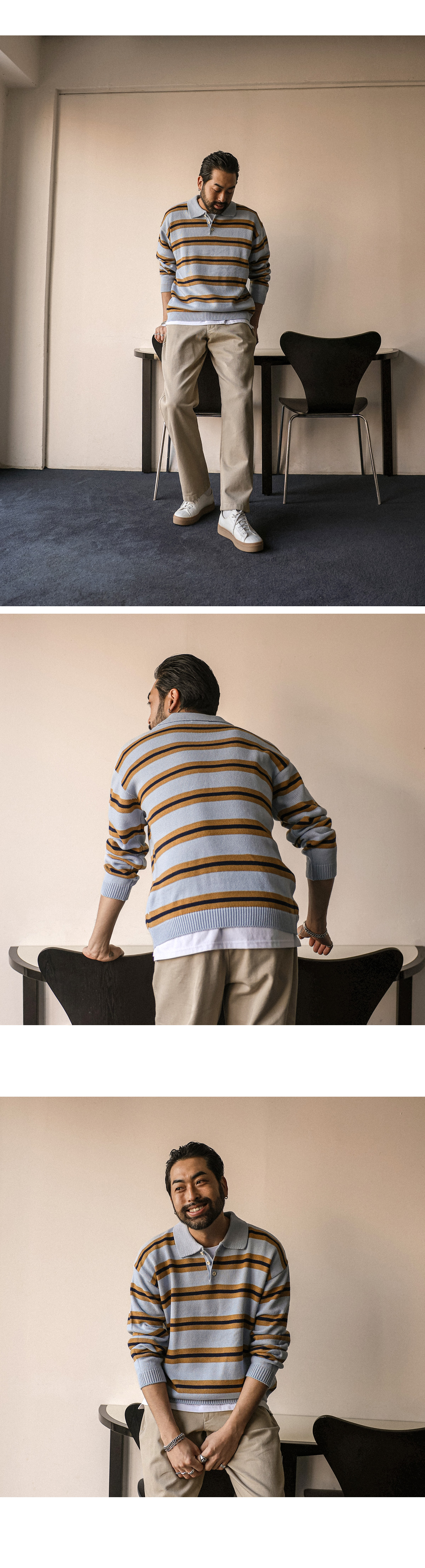 배색 컬러감이 매력적인 요소가 되어주는 카라 니트입니다. 정교하고 탄탄한 조직감에 스트라이프 패턴으로 컬러감 있는 유니크한 분위기를 연출해 줍니다. 넥 라인의 3 버튼 디테일과 몸에 흐르는 듯한 여유로운 실루엣으로 고급스러운 무드부터 캐주얼한 무드까지 폭넓게 즐기실 수 있습니다. SIZE FREE 모델착용 [KIHOON]색상 : 스카이톤 / 사이즈 : FREE ![]() ![]() ![]() ![]() ![]() ![]() ![]() ![]()