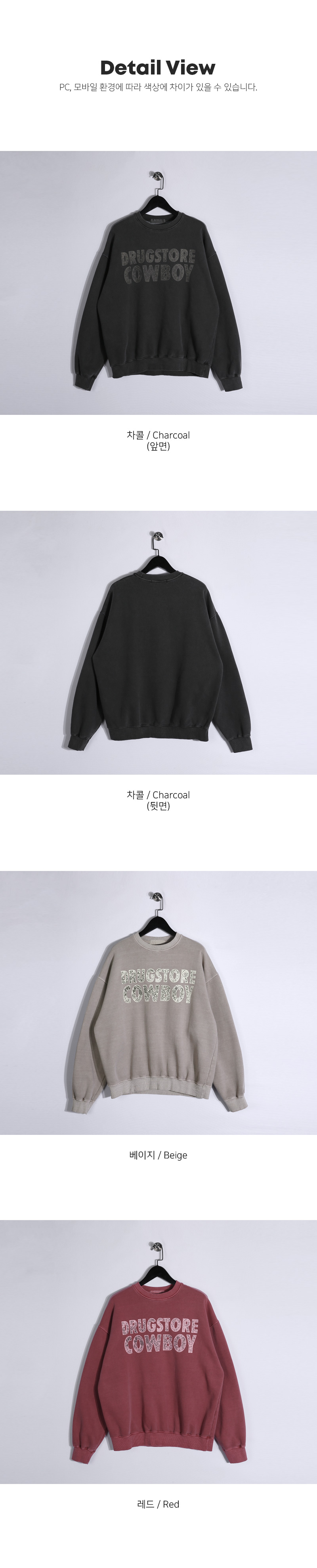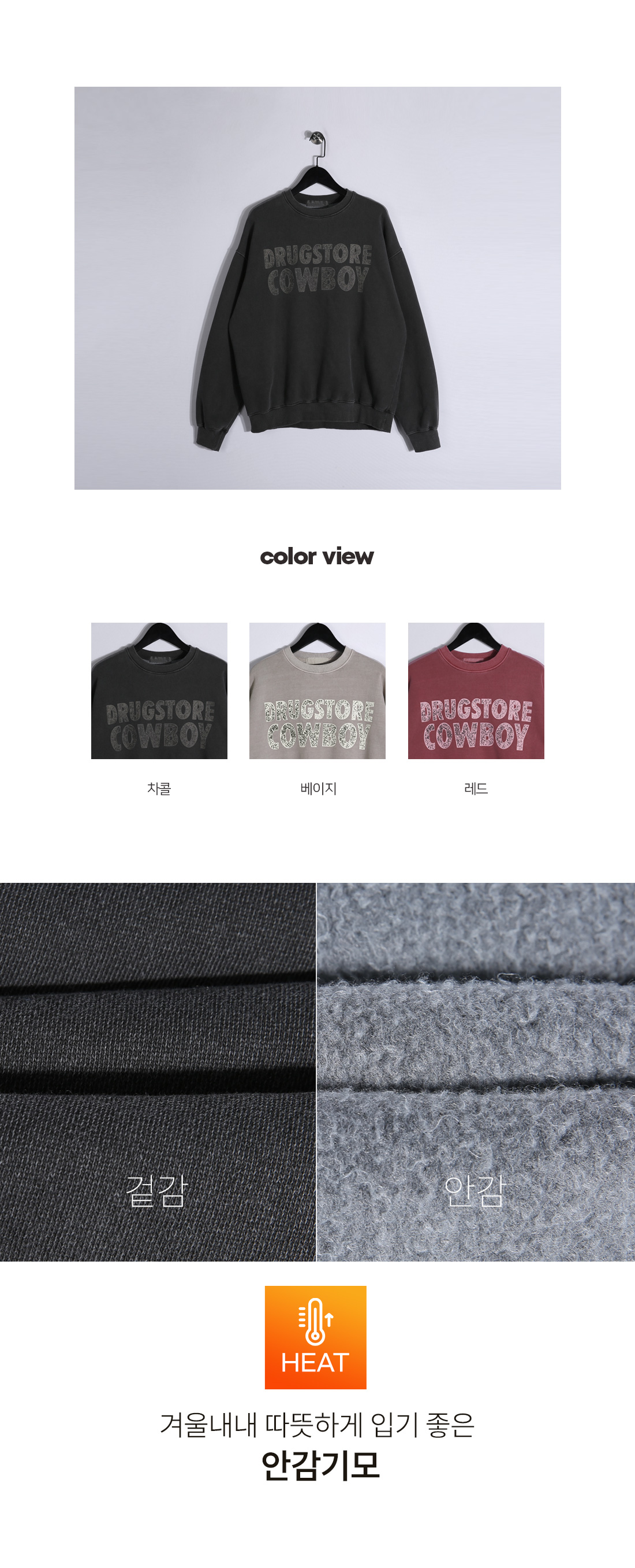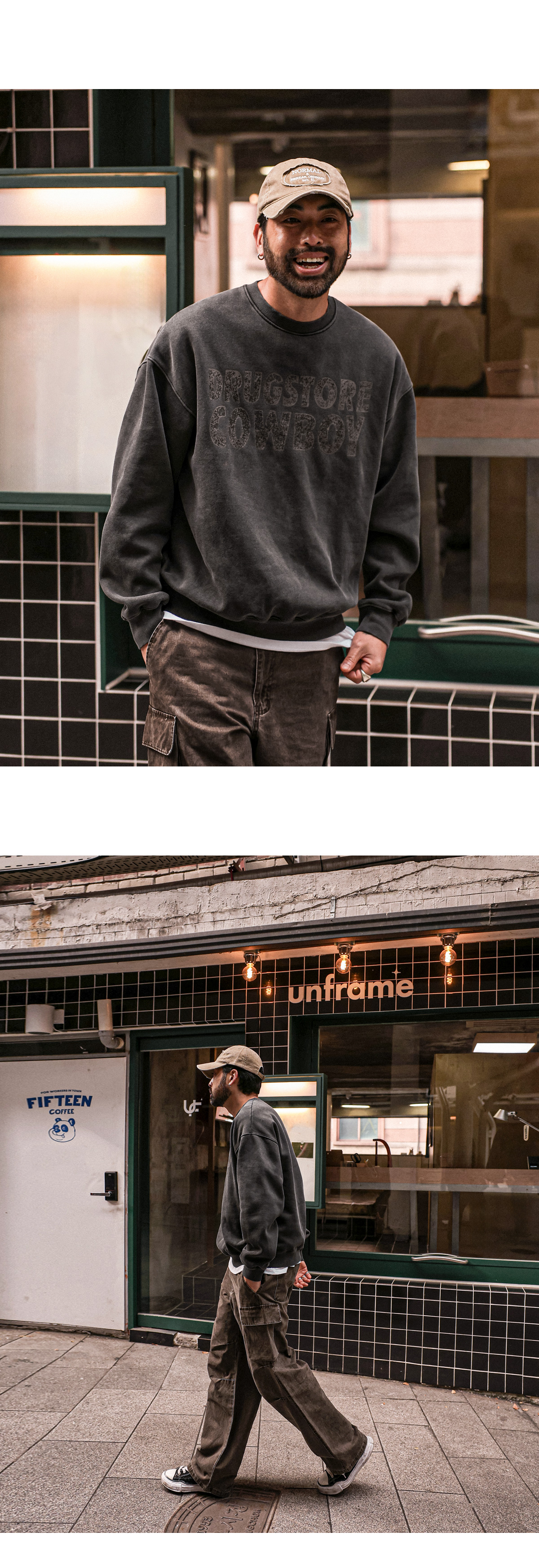 스트릿하면서 멋스러운 룩을 완성해줄 기모 맨투맨입니다. 코튼 100% 원단에 가먼츠 워싱 공정을 더해 늘어남을 최소화하면서 자연스러운 페이딩 컬러감을 구현했습니다. 전면부 레터링 디테일로 빈티지한 무드를 완성해주며, 소매와 밑단 부분 시보리를 탄탄하게 적용하여 안정적으로 실루엣을 유지해줍니다. 세미 오버핏으로 제작되어 다양한 캐주얼, 스트릿 아이템과 매칭이 용이한 기모 맨투맨입니다. SIZE FREE 모델착용 [KIHOON]색상 : 차콜 / 사이즈 : FREE ![]() ![]() ![]() ![]() ![]() ![]() ![]() ![]() ![]()