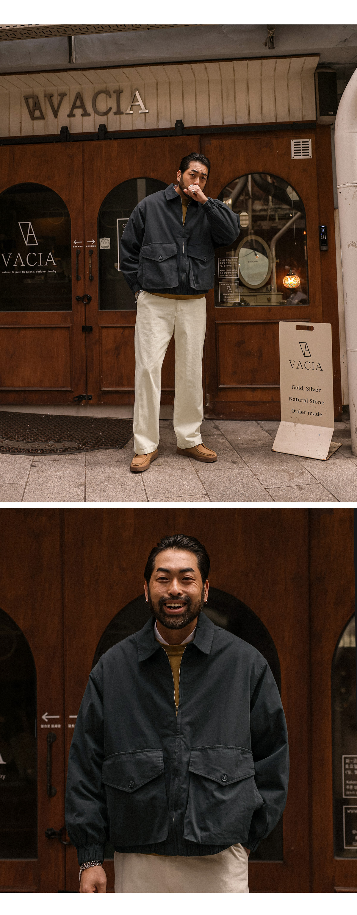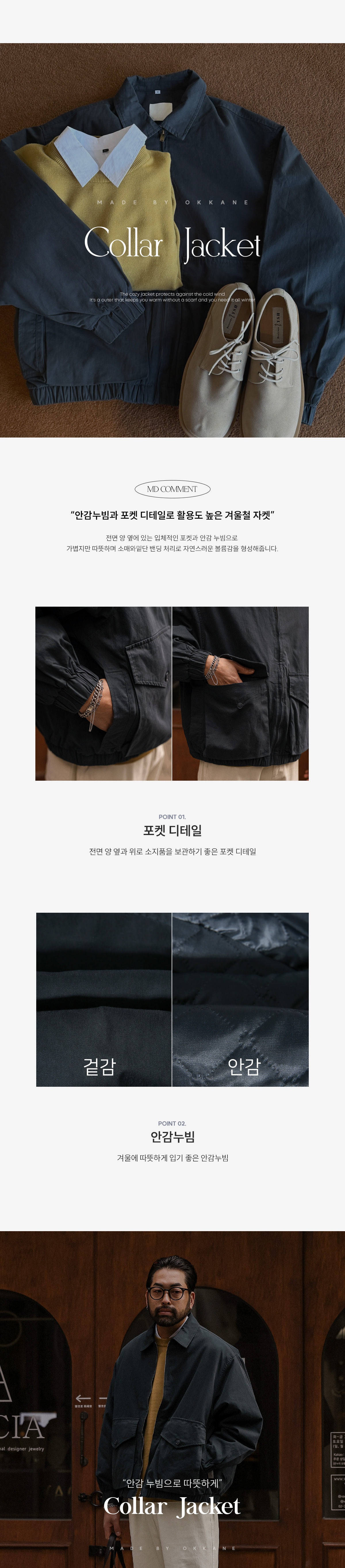 데일리한 디자인에 흔하지 않은 디테일로 차별화를 준 카라 자켓입니다. 전면에 양 옆과 위로 소지품 보관이 용이한 입체적인 포켓을 배치하여 클래식한 디자인 속 유니크한 아이텐티티를 완성해줍니다. 소매와 밑단 밴딩 처리로 바람을 막아주고, 자연스러운 볼륨감을 형성해줍니다. 전체적으로 여유로운 실루엣에 드롭 숄더 라인으로 체형 보완에 효과적이며, 여유롭고 편안한 착용감을 선사합니다. 베이직룩, 출근룩, 데이트룩까지 손쉽게 매치되는 폭넓은 데일리 자켓으로 하나쯤 소장해보시길 추천드립니다. SIZE XL-2XL,3XL-4XL,5XL-6XL 모델착용 [KIHOON]색상 : 네이비 / 사이즈 : XL-2XL ![]() ![]() ![]() ![]() ![]() ![]() ![]() ![]()