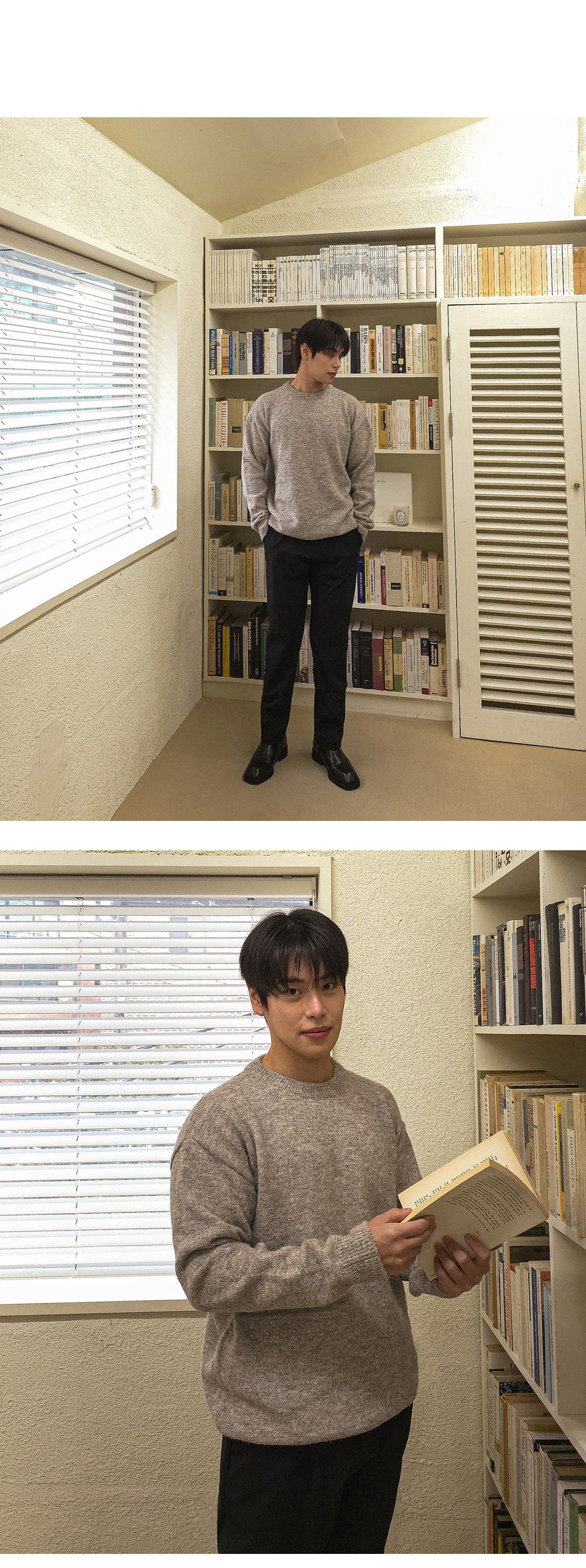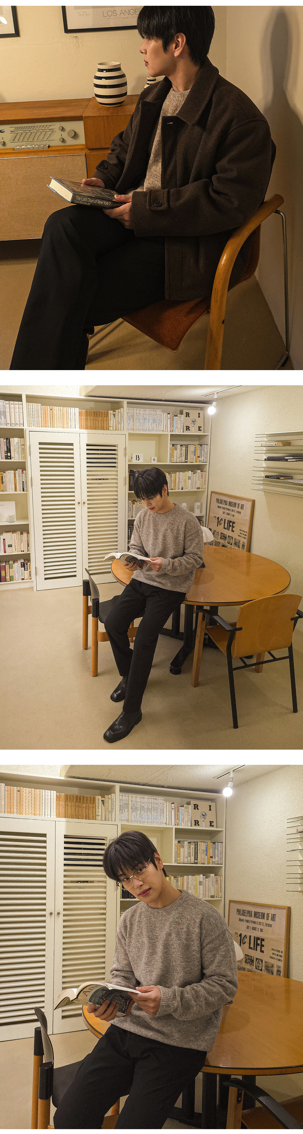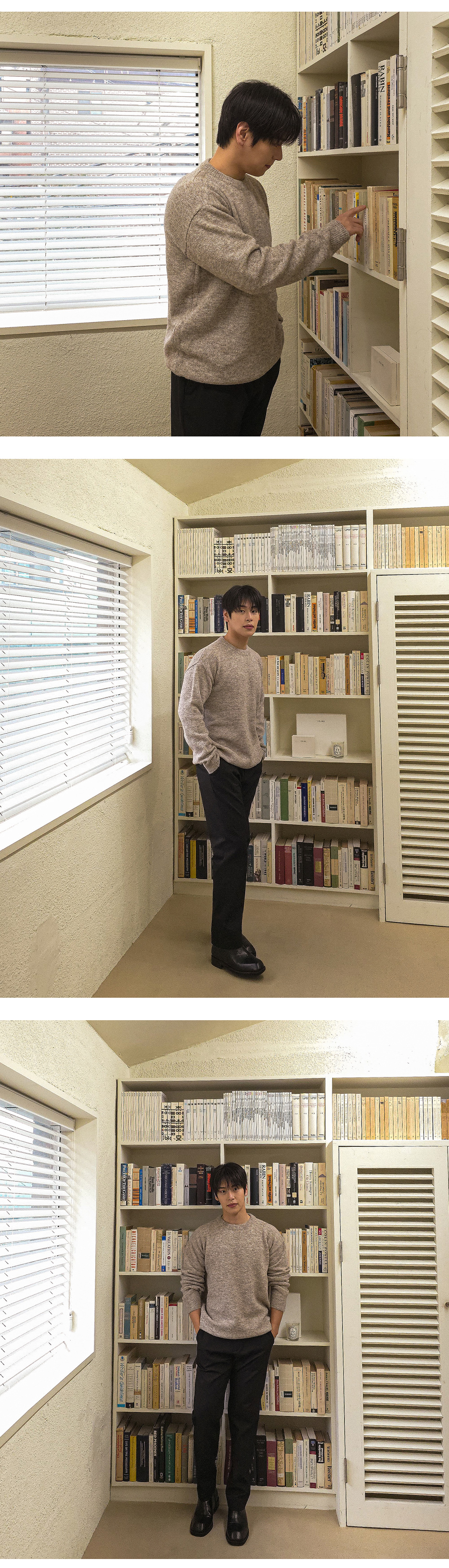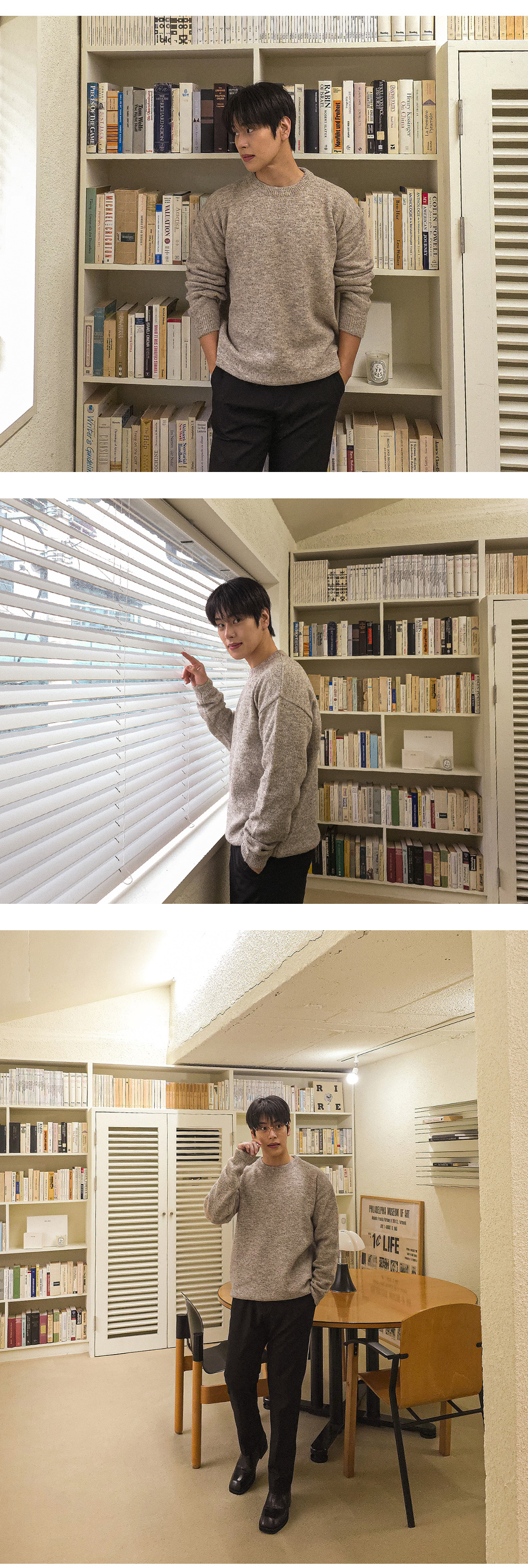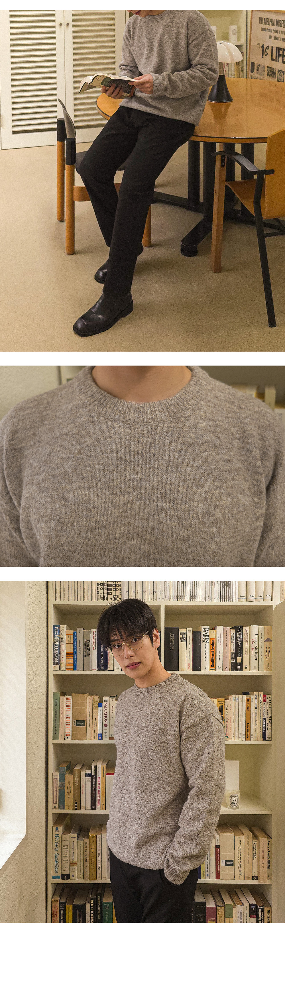 어느 코디에나 활용 가능한 울 라운드 니트입니다.