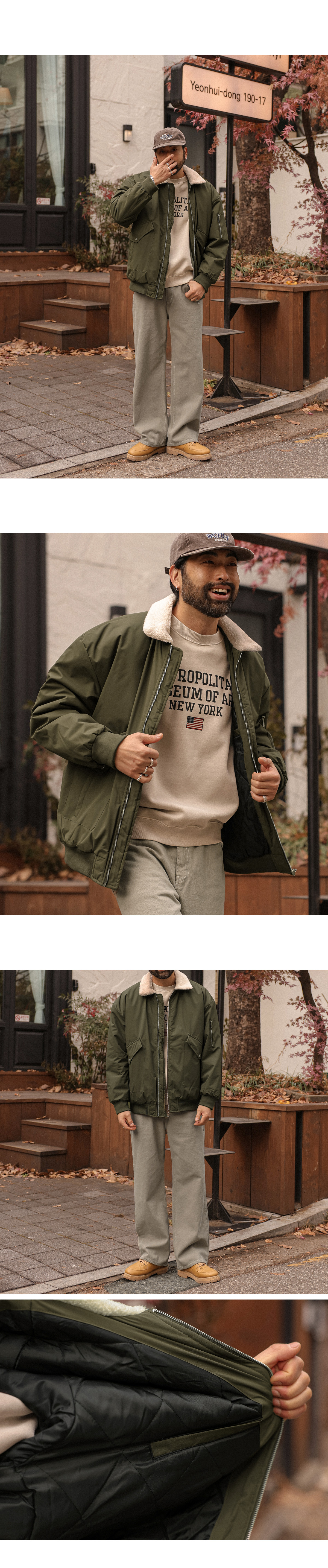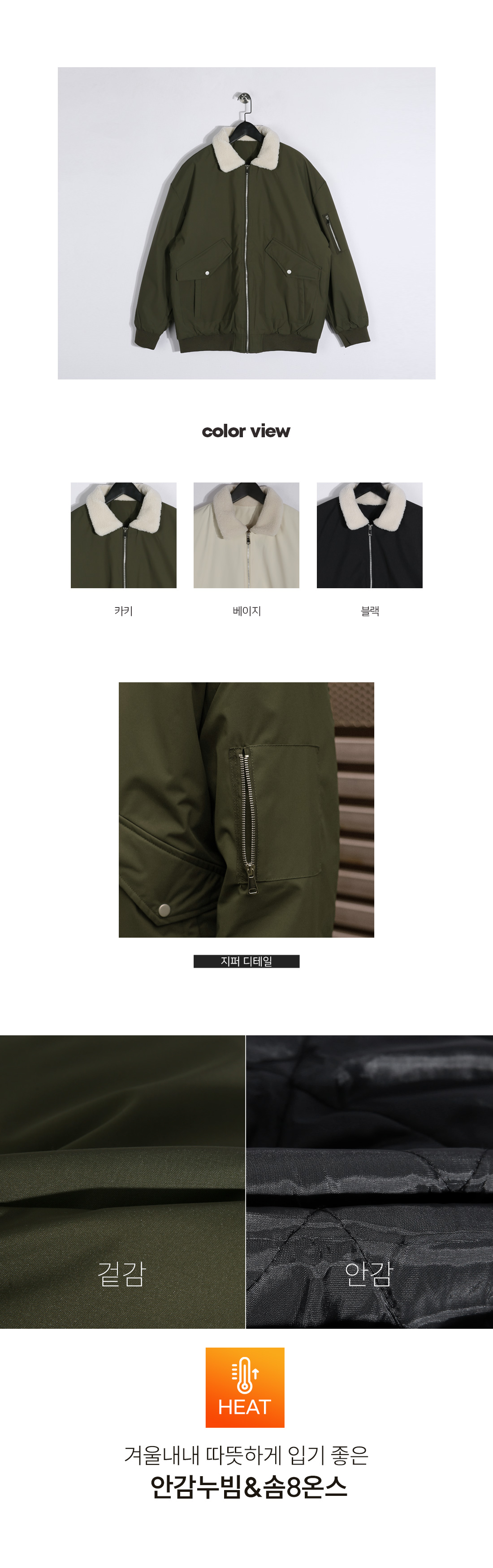 어떤 이너에나 가볍게 걸치기 좋은 항공 패딩입니다. 담백한 텍스처에 안감 누빔 디테일을 더해 겨울철 든든하게 체온을 지켜주며, 가벼운 무게감으로 부담 없이 활용가능합니다. 양털 소재의 카라넥으로 설계되어 한 층 더 폭신하고, 아늑한 감성을 느끼실 수 있고, 입체감 있는 넉넉한 핏으로 제작해 어느 이너를 착용하셔도 편안한 아웃핏을 유지해줍니다. 활용 가치가 높은 디자인으로 하나쯤 소장하셔서 겨울철 코디에 포인트를 더해보시길 바랍니다. SIZE M,L,XL,2XL,3XL,4XL-5XL 모델착용 [KIHOON]색상 : 카키 / 사이즈 : 2XL ![]() ![]() ![]() ![]() ![]() ![]() ![]() ![]()