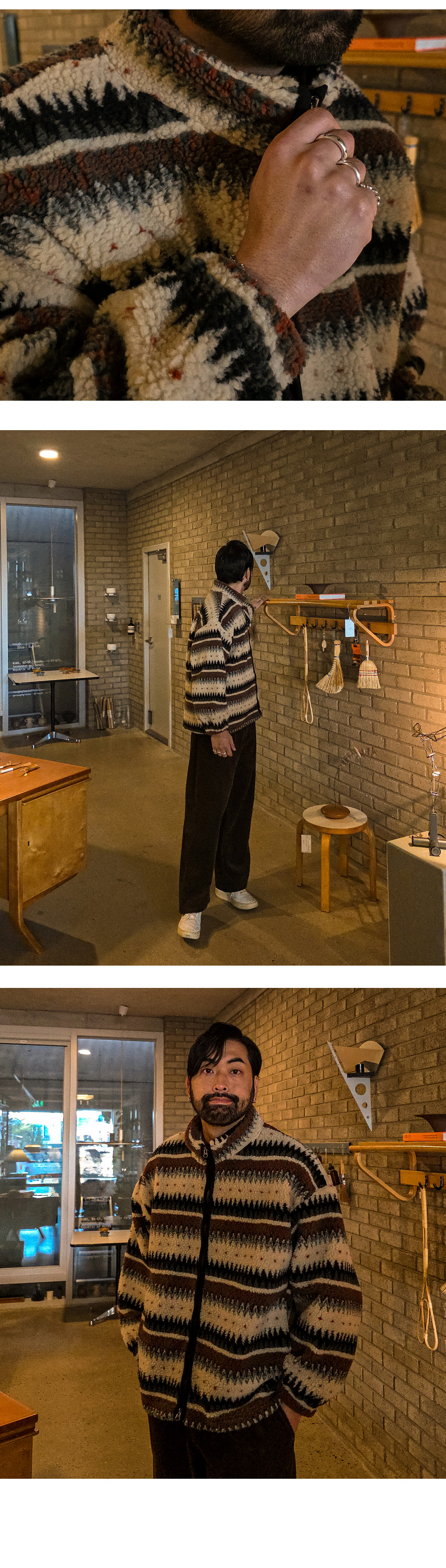 보기만 해도 폭신하고 따뜻한 무드의 노르딕 쉐르파 집업입니다. 양털처럼 복슬복슬하고 보온성이 뛰어난 쉐르파 플리스 원단에 겨울하면 떠오르는 노르딕 패턴을 더해 캐주얼하면서도 유니크한 아이템입니다. 넉넉한 사이즈와 드롭된 어깨 라인으로 동작에 제약이 없어 실용적인 착용감을 선사합니다. 과하지 않은 디자인으로 겨울 룩에 자연스럽게 녹아드는 담백하면서도 따스한 분위기에 노르딕 집업을 지금 바로 만나보세요. SIZE FREE 모델착용 [KIHOON]색상 : 블랙톤 / 사이즈 : FREE ![]() ![]() ![]() ![]() ![]() ![]() ![]() ![]() ![]()