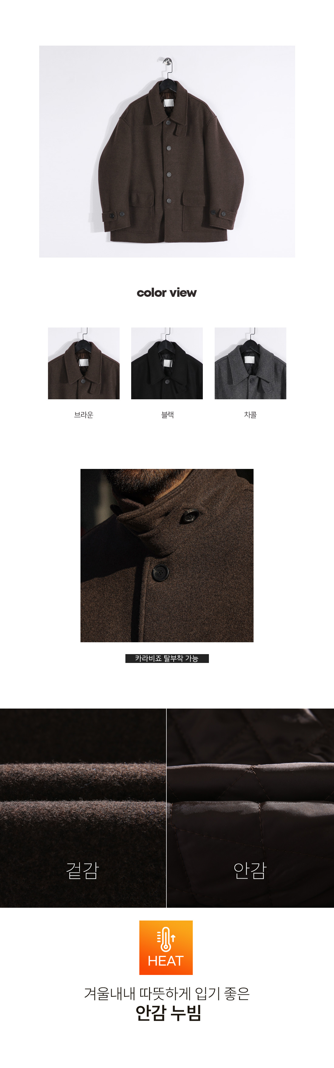 깔끔한 싱글 버튼과 일자로 떨어지는 핏으로 출근룩,데이트룩으로도 활용하기 좋은 심플한 맥코트입니다. 촉감부터 다르게 느껴지는 울 혼방 원단으로 핏은 깔끔하게 잡아주면서도 누빔 안감으로 외부의 찬 바람을 효과적으로 막아주어 온기를 가득 잡아주는 제품입니다. 카라를 올려 비조를 채워주면 하이넥으로도 연출하실 수 있으며 덮개가 있는 실용적인 포켓으로 소지품을 여유있게 수납하기 좋습니다. 미니멀하고 데일리한 디자인으로 오래도록 질리지 않는 클래식한 무드와 디테일을 담았습니다. SIZE FREE 모델착용 [KIHOON]색상 : 브라운 / 사이즈 : FREE ![]() ![]() ![]() ![]() ![]() ![]() ![]() ![]()