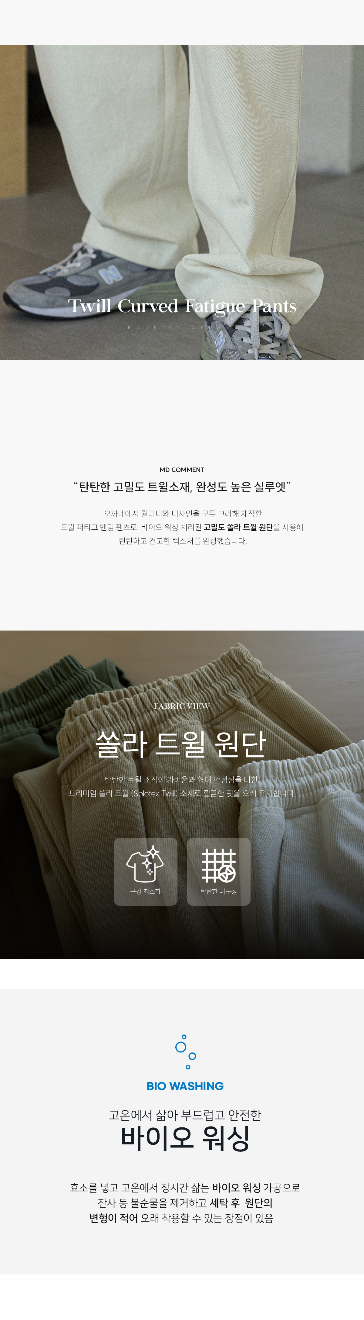 오까네에서 퀄리티부터 디자인까지 모두 신경써서 제작한 트윌 퍼티그 밴딩 팬츠입니다. 트윌 바이오 워싱 원단으로 제작되어 더욱 탄탄하고, 견고한 마감을 자랑하며, 트윌 원단 중 쏠라 트윌 원단인 고밀도 능직으로 제작한 소재로 사선 무늬가 특징이고, 튼튼하고 고급스러운 텍스처를 자랑합니다. 커브드 라인으로 체형을 자연스럽게 커버해주면서 힙한 실루엣으로 연출해주고, 또한 빈티지함이 느껴지는 컬러로 제품 자체만으로도 남다른 실루엣을 완성해주는 아이템이니 한 컬러쯤 꼭 소장해보시길 추천 드리겠습니다. SIZE L-XL,2XL-3XL,4XL-5XL,6XL-7XL 모델착용 [KIHOON]색상 : 아이보리 / 사이즈 : 2XL-3XL