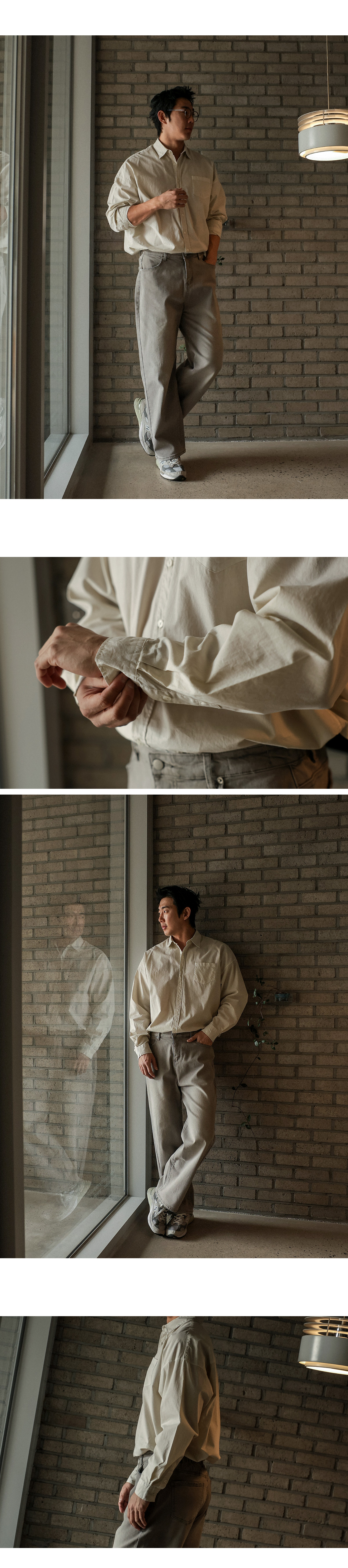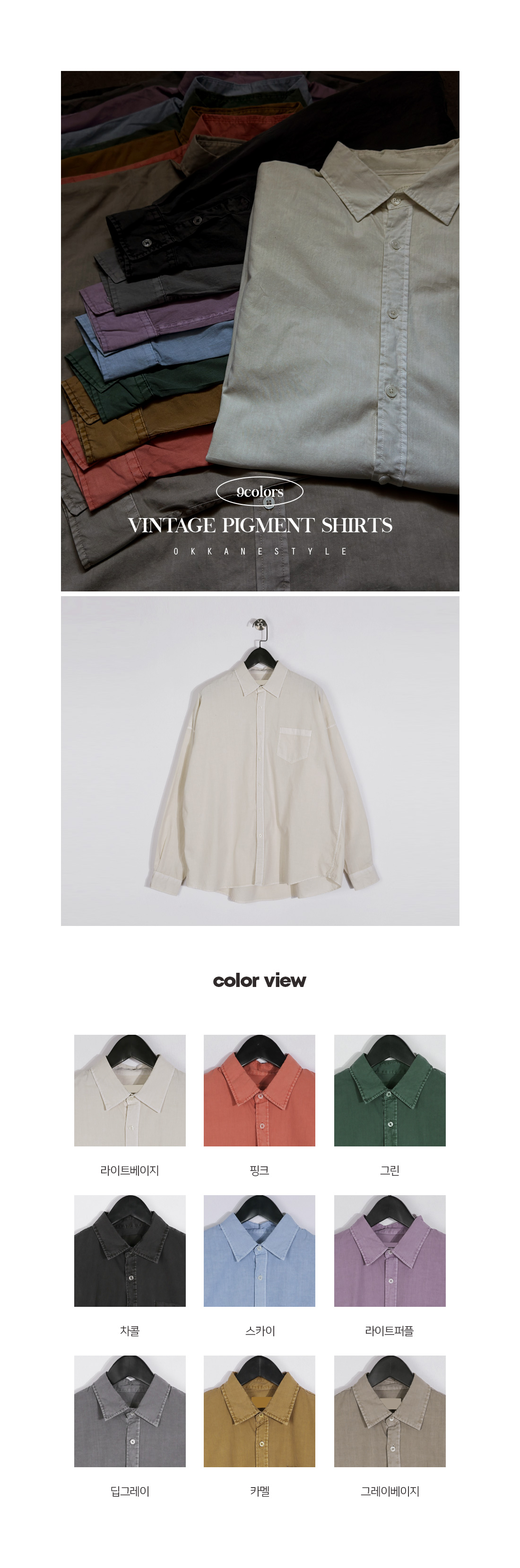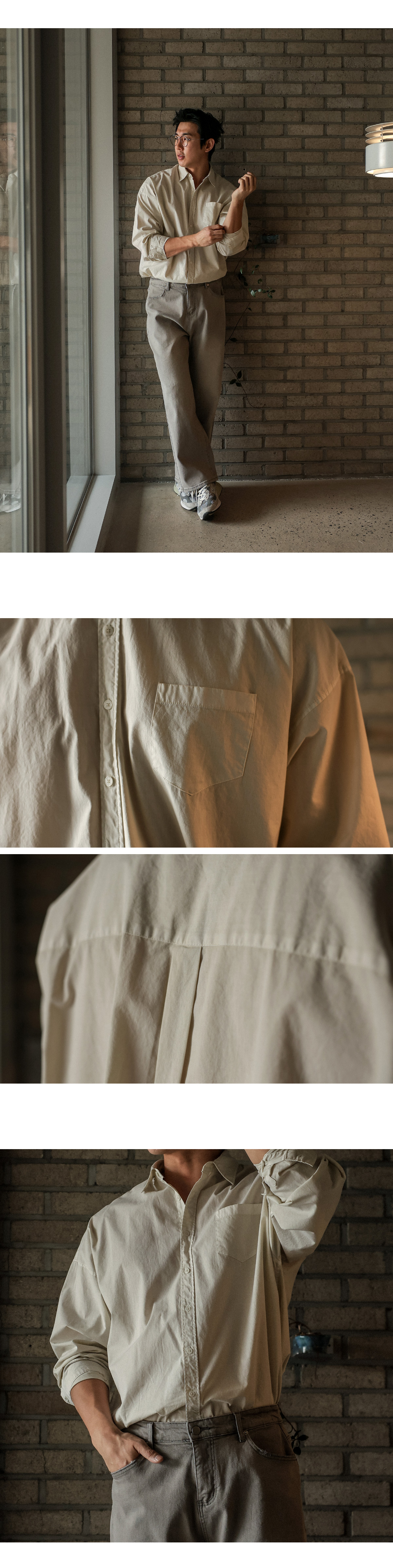 다양한 착장에 나만의 무드를 더해줄 피그먼트 셔츠입니다. 적당한 두께감과 루즈한 핏으로 캐주얼룩, 모던룩 등 모두 가능하여 그날 어떻게 입고 싶은지에 따라 색다르게 코디할 수 있습니다. 변형이 적은 코튼 소재에 피그먼트 워싱 처리를 하여 빈티지한 멋을 더했으며, 소매 부분과 후면 부분 핀턱 디테일이 자칫 밋밋할 수 있는 셔츠에 과하지 않은 포인트가 되어줍니다. 옷장에 하나쯤 꼭 소장해야 하는 기본 중의 기본 아이템인 셔츠로 남녀노소 상관없이 스타일링 가능하여 커플템으로도 추천드립니다. SIZE M,L-XL 모델착용 [JUNBEOM]색상 : 라이트베이지 / 사이즈 : L-XL ![]() ![]() ![]() ![]() ![]() ![]() ![]() ![]()