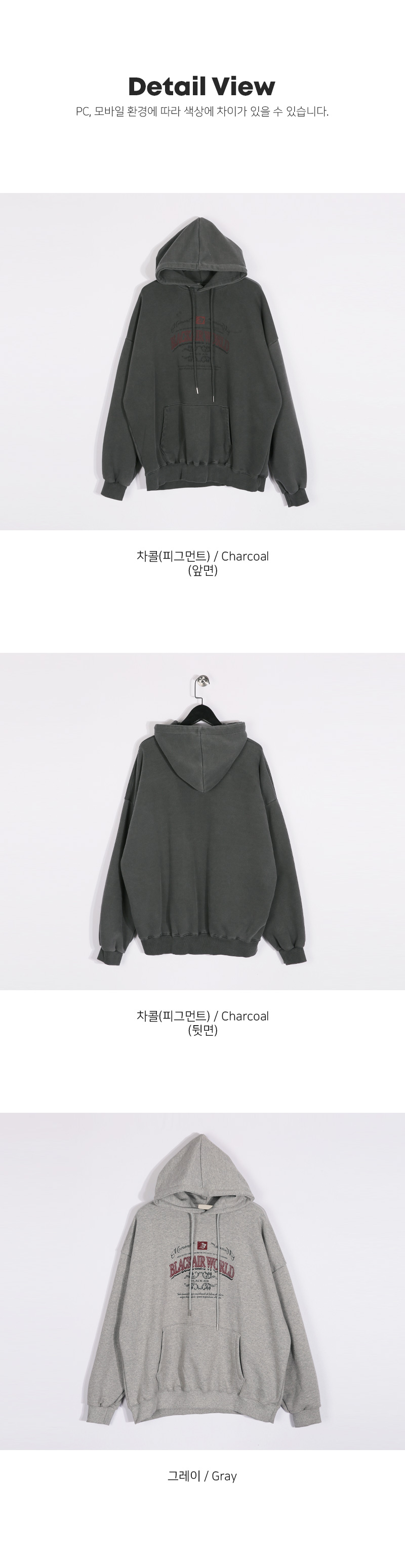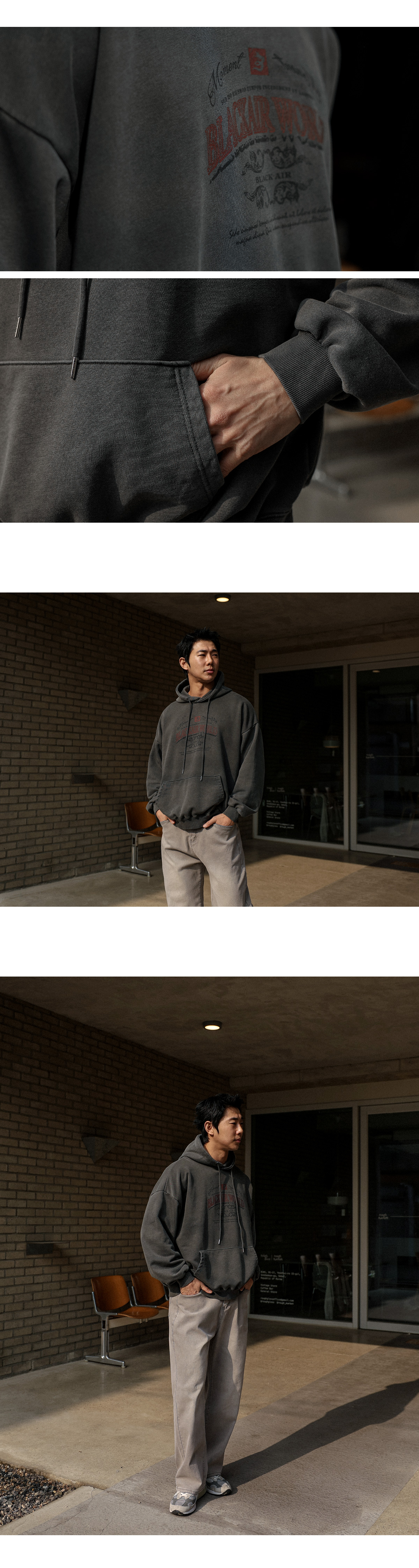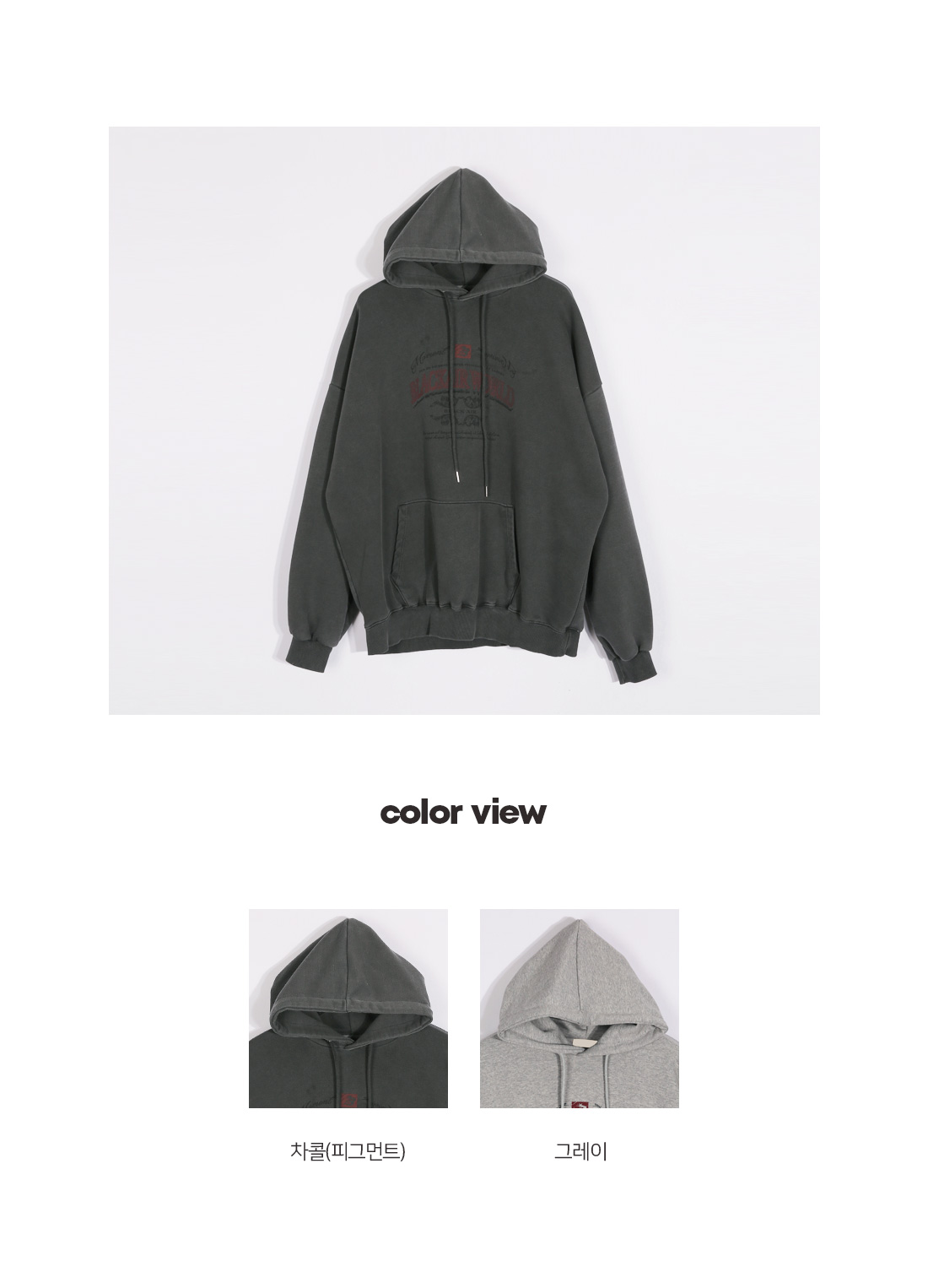 감각적인 디테일로 데일리룩에 포인트를 더해줄 후드티입니다. 위트 있는 프린팅과 레터링 요소를 추가하여 이지하고 캐주얼한 스타일을 극대화 해줍니다. 코튼 100% 소재로 부드럽고 탄탄한 내구성을 경험하실 수 있고, 전면부 포켓과 넉넉한 후드 사이즈로 자연스럽고 안정적인 실루엣을 연출해줍니다. 베이직한 그레이와 피그먼트 가공 처리가 된 차콜, 두 가지 컬러로 구성되었으며, 두 컬러 각각 다른 매력을 느끼실 수 있는 아이템으로 깔 별 소장 적극 추천드립니다. SIZE FREE 모델착용 [JUNBEOM]색상 : 차콜(피그먼트) / 사이즈 : FREE ![]() ![]() ![]() ![]() ![]() ![]() ![]() ![]()