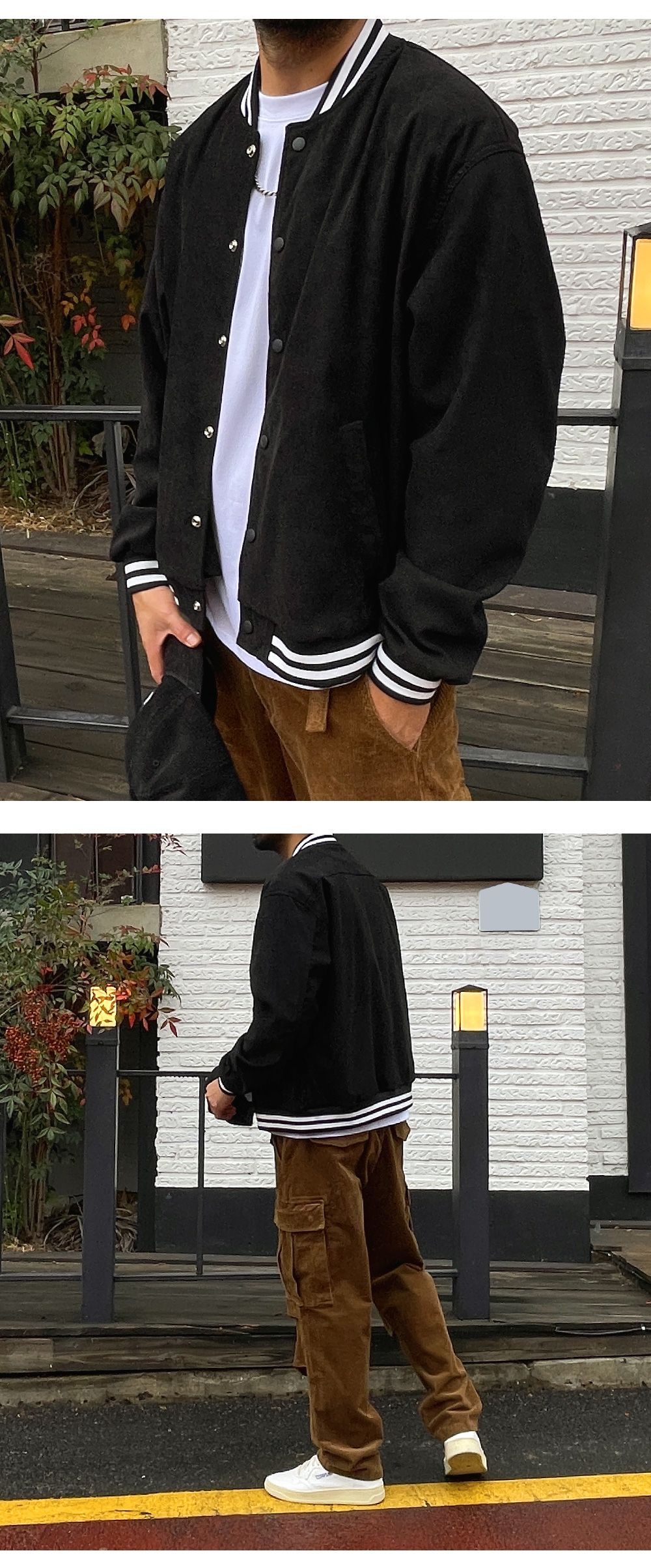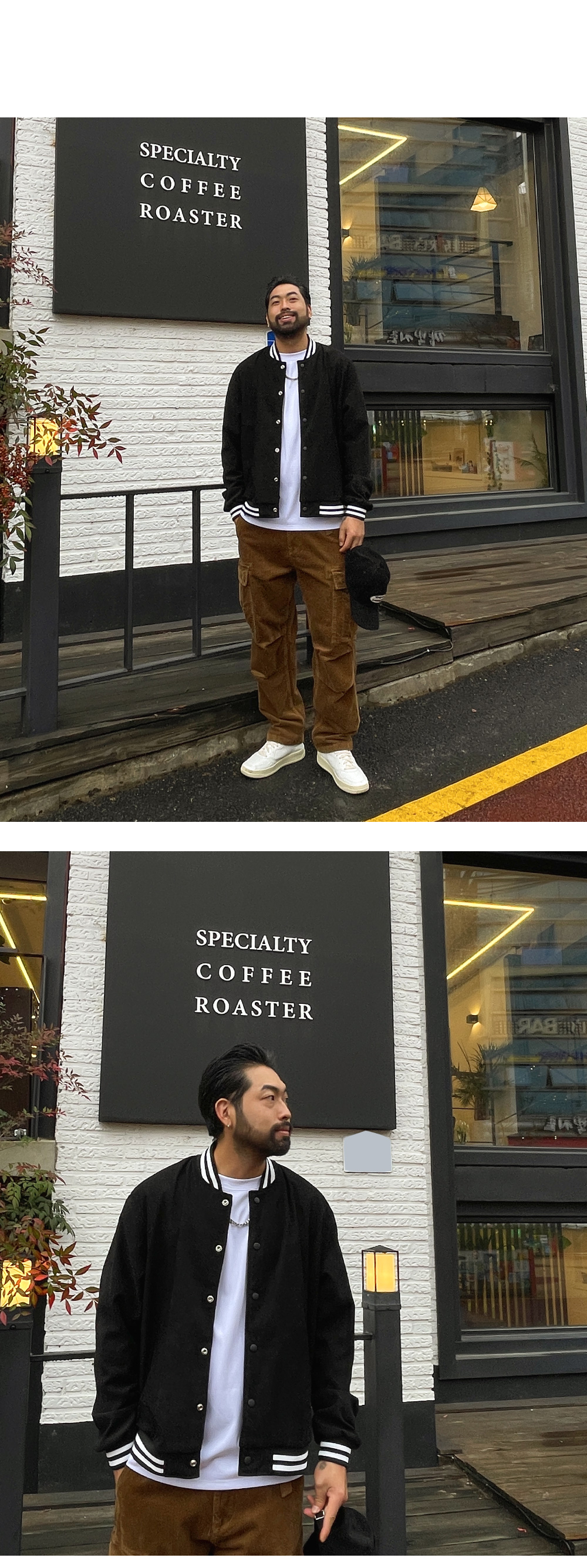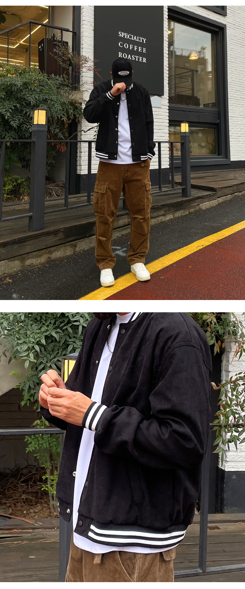 캐주얼한 느낌의 바시티점퍼입니다. 여름을 제외한 나머지 계절에 착용하기 좋은 두께감은 물론 고급스러운 느낌의 스웨이드와 배색 라인으로 포인트를 주어 포인트로 착용하기 좋고 이너 위에 가볍게 착용하거나 데님팬츠, 면팬츠 등 매치해 캐주얼룩, 미니멀룩 등 코디 연출하기 좋고 핏 또한 베이직핏으로 슬림핏보다 여유로운 피팅감을 느끼실 수 있습니다. SIZE XL-2XL(1번),3XL-4XL(2번) 모델착용 색상 : 블랙 / 사이즈 : XL-2XL(1번) ![]() ![]() ![]() ![]() ![]() ![]() ![]() ![]()