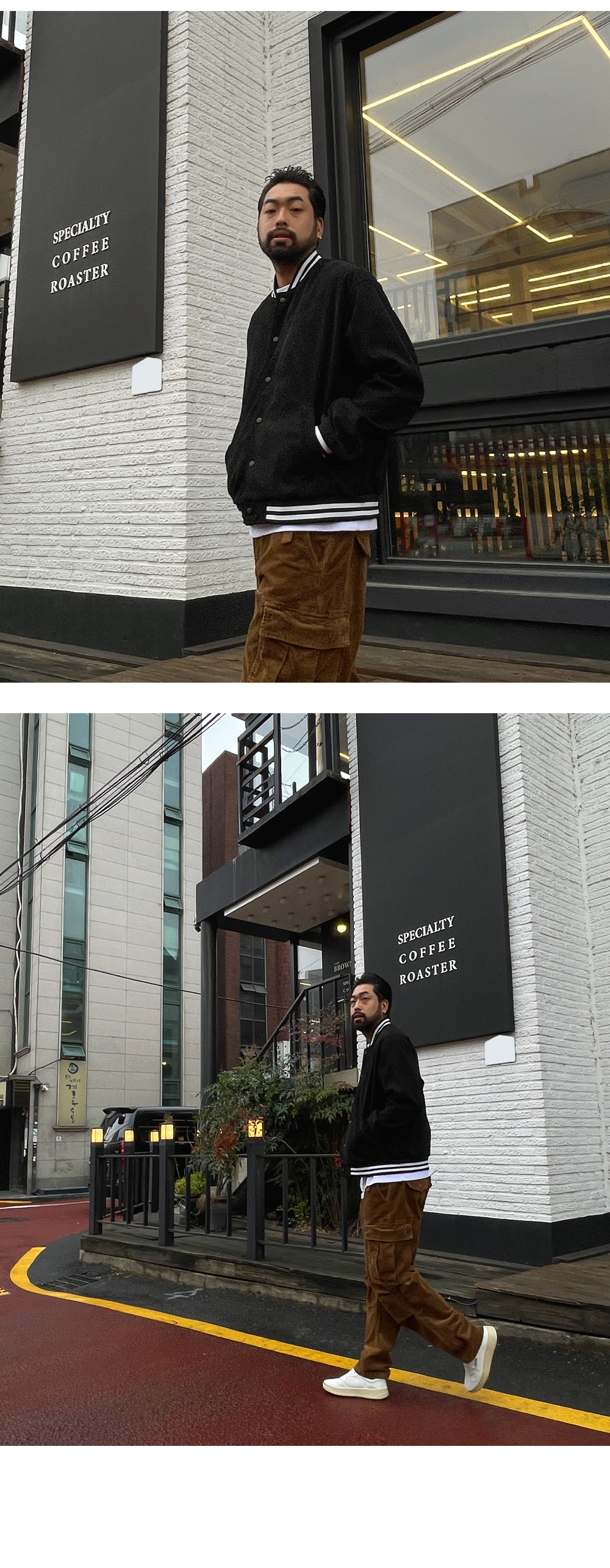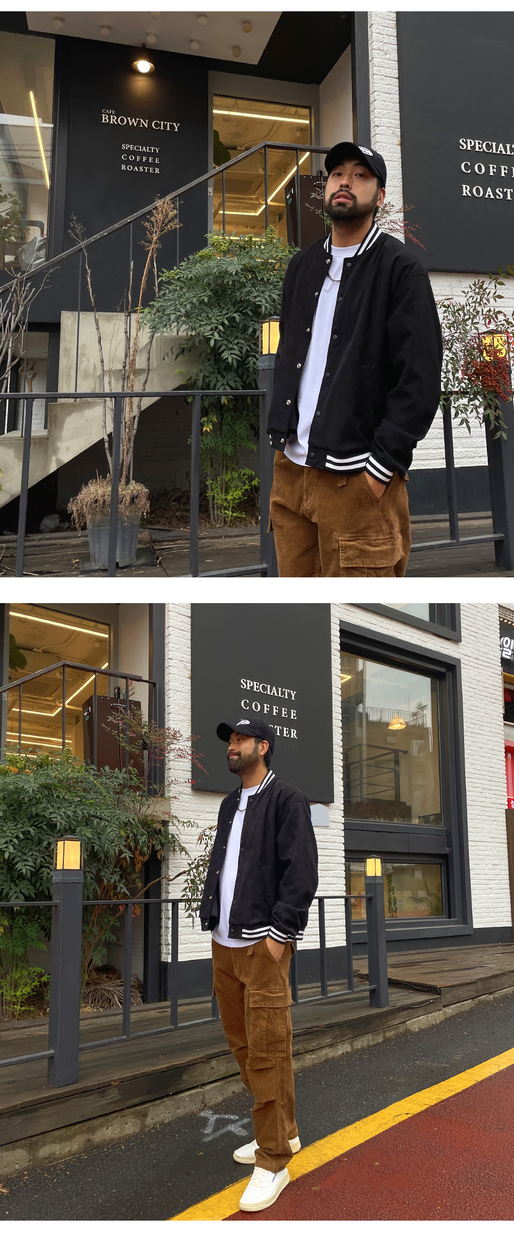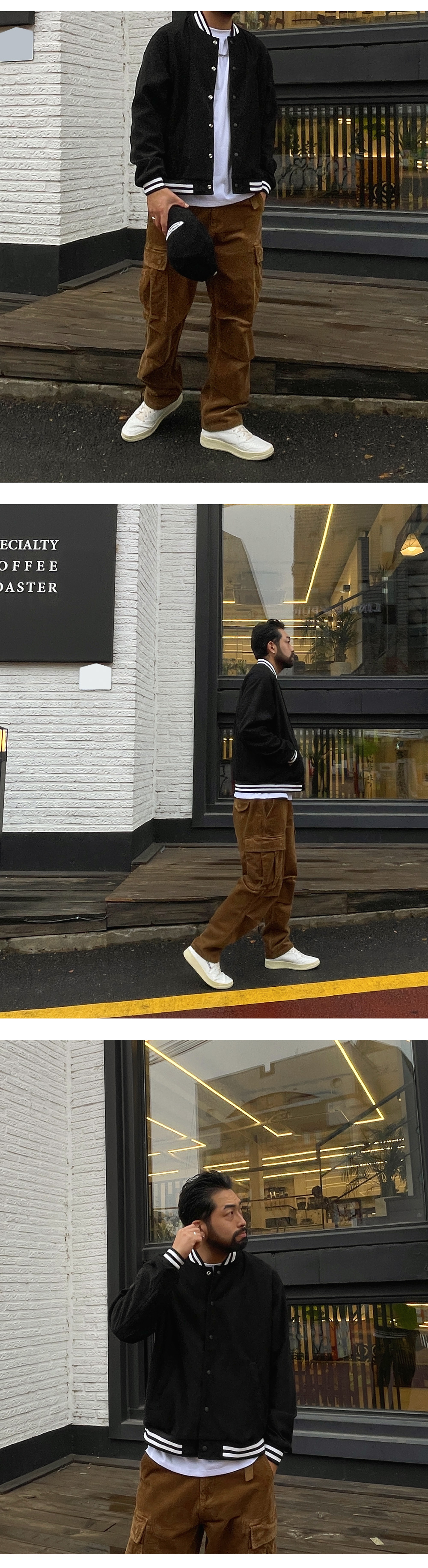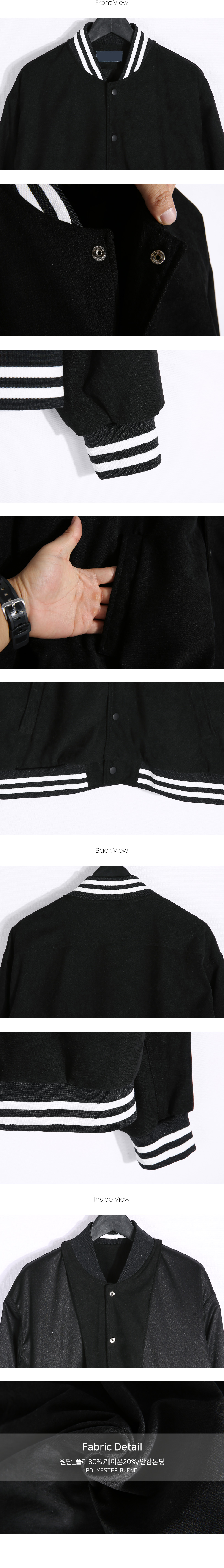 캐주얼한 느낌의 바시티점퍼입니다. 여름을 제외한 나머지 계절에 착용하기 좋은 두께감은 물론 고급스러운 느낌의 스웨이드와 배색 라인으로 포인트를 주어 포인트로 착용하기 좋고 이너 위에 가볍게 착용하거나 데님팬츠, 면팬츠 등 매치해 캐주얼룩, 미니멀룩 등 코디 연출하기 좋고 핏 또한 베이직핏으로 슬림핏보다 여유로운 피팅감을 느끼실 수 있습니다. SIZE XL-2XL(1번),3XL-4XL(2번) 모델착용 색상 : 블랙 / 사이즈 : XL-2XL(1번) ![]() ![]() ![]() ![]() ![]() ![]() ![]() ![]()