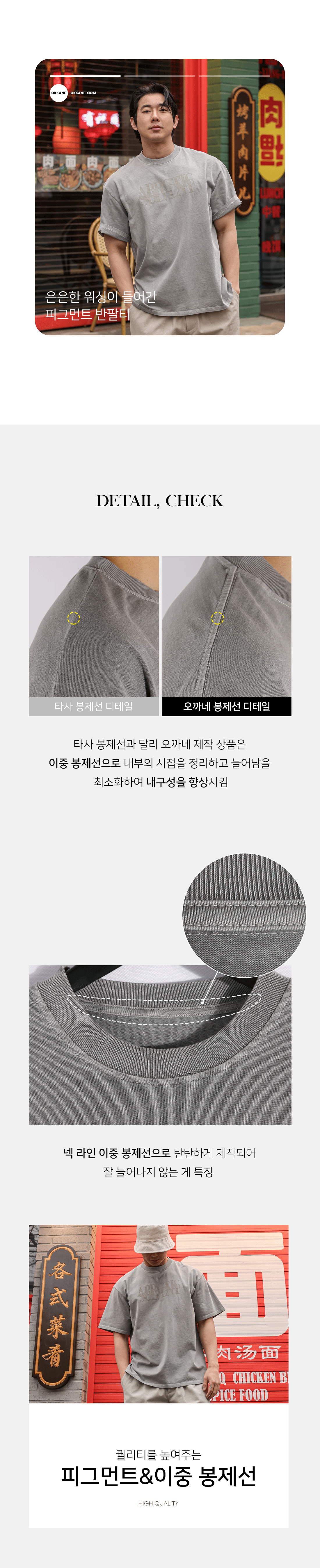 은은한 워싱이 들어간 반팔티 입니다. 봄부터 가을초까지 활용하기 좋은 두께감은 물론 은은한 피그먼트 워싱과 나염이 빈티지한 느낌을 주어 손 쉽게 멋낼 수 있는 아이템이며 데님 팬츠, 카고 팬츠, 반바지등 다양한 하의와 매치하여 스트릿룩, 캐주얼룩, 데일리룩등 여러 연출이 가능하고 핏 또한 루즈핏으로 좀 더 여유 있는 착용감을 느끼실 수 있습니다. SIZE L-XL,2XL-3XL,4XL-5XL 모델착용 [JUNBEOM]색상 : 라이트그레이 / 사이즈 : L-XL ![]() ![]() ![]() ![]() ![]() ![]() ![]() ![]() ![]()